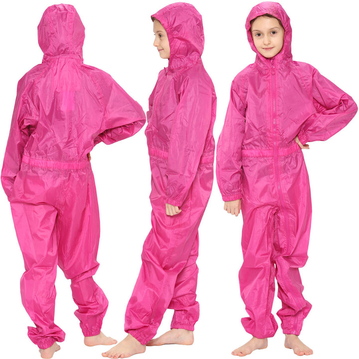 Girls Boys Raincoat Kids Puddle Suit All in One Waterproof Hooded Rainsuit