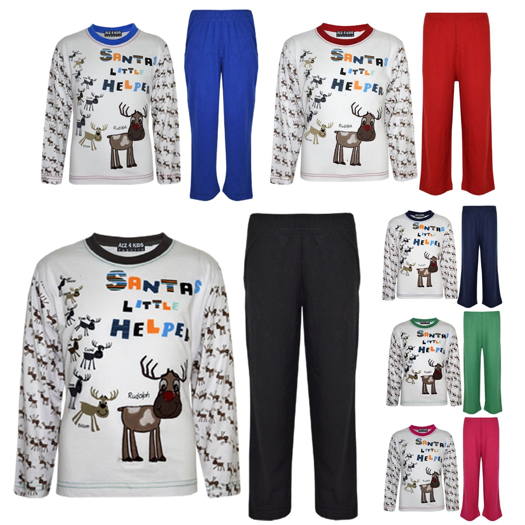Girls Boys SANTAS LITTLE HELPER Christmas Pyjamas Reindeer Rudolph PJ's Age 1-7 Years
