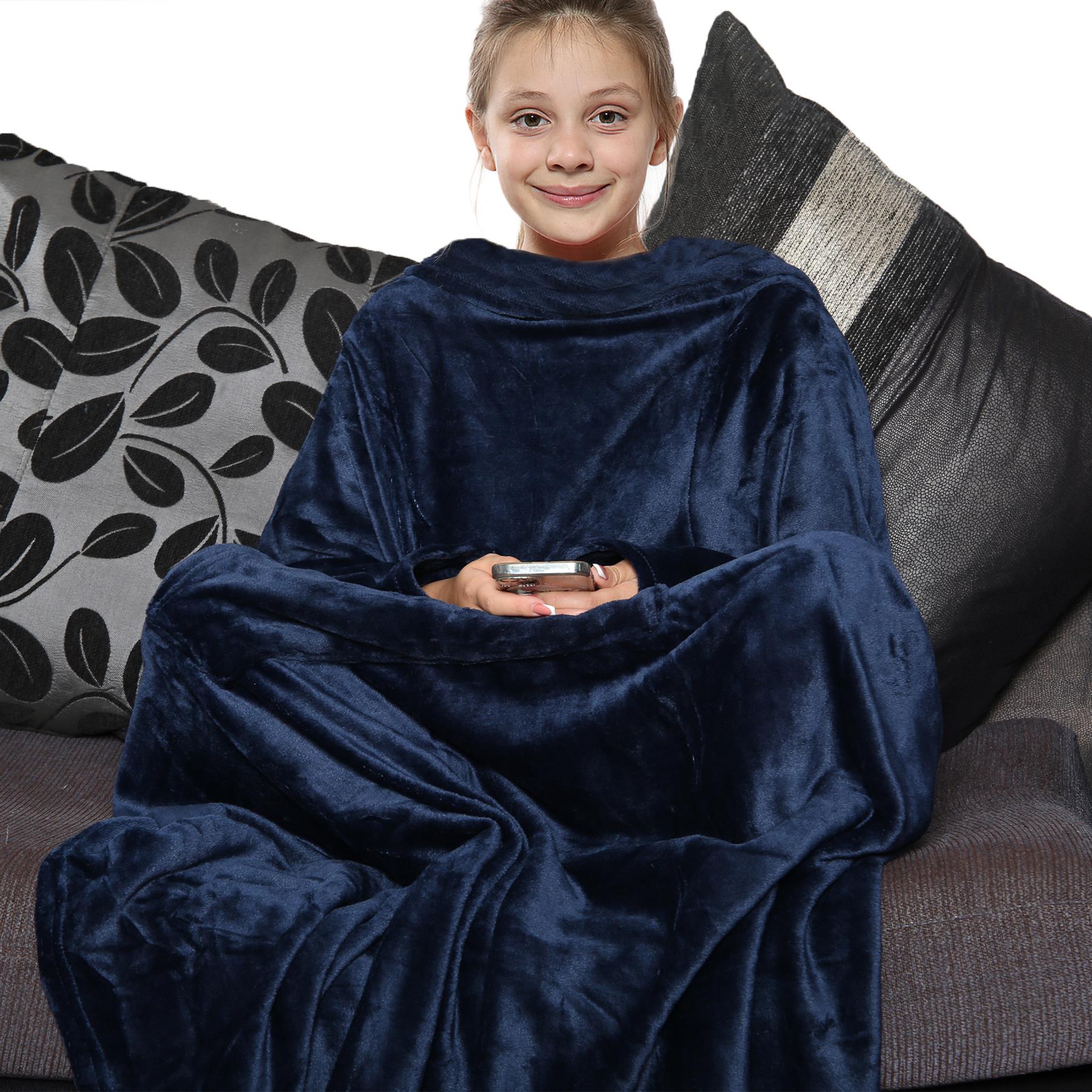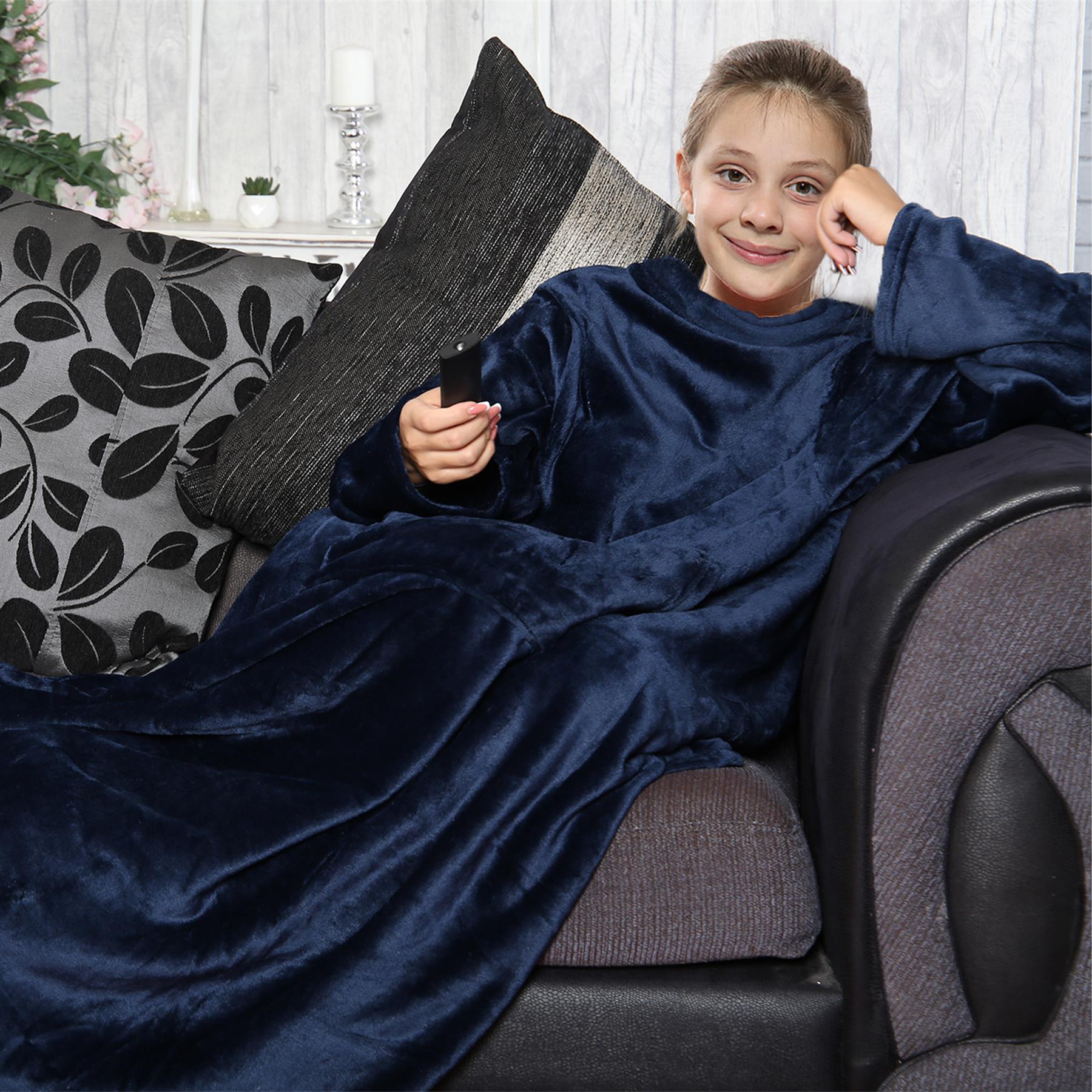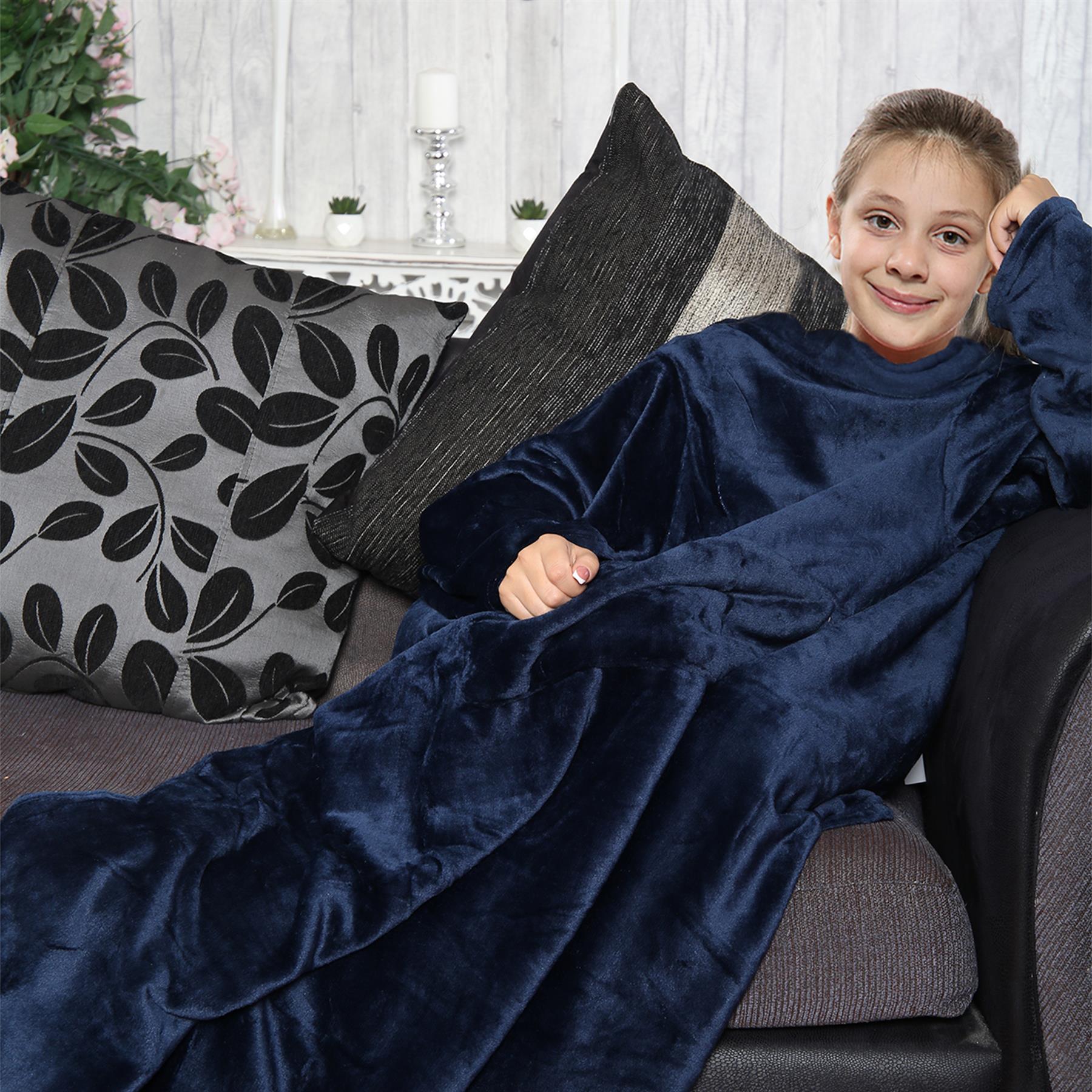 Girls Boys Unisex Navy Wearable Snuggle Sleeves Blanket Super Soft Warm Fleece