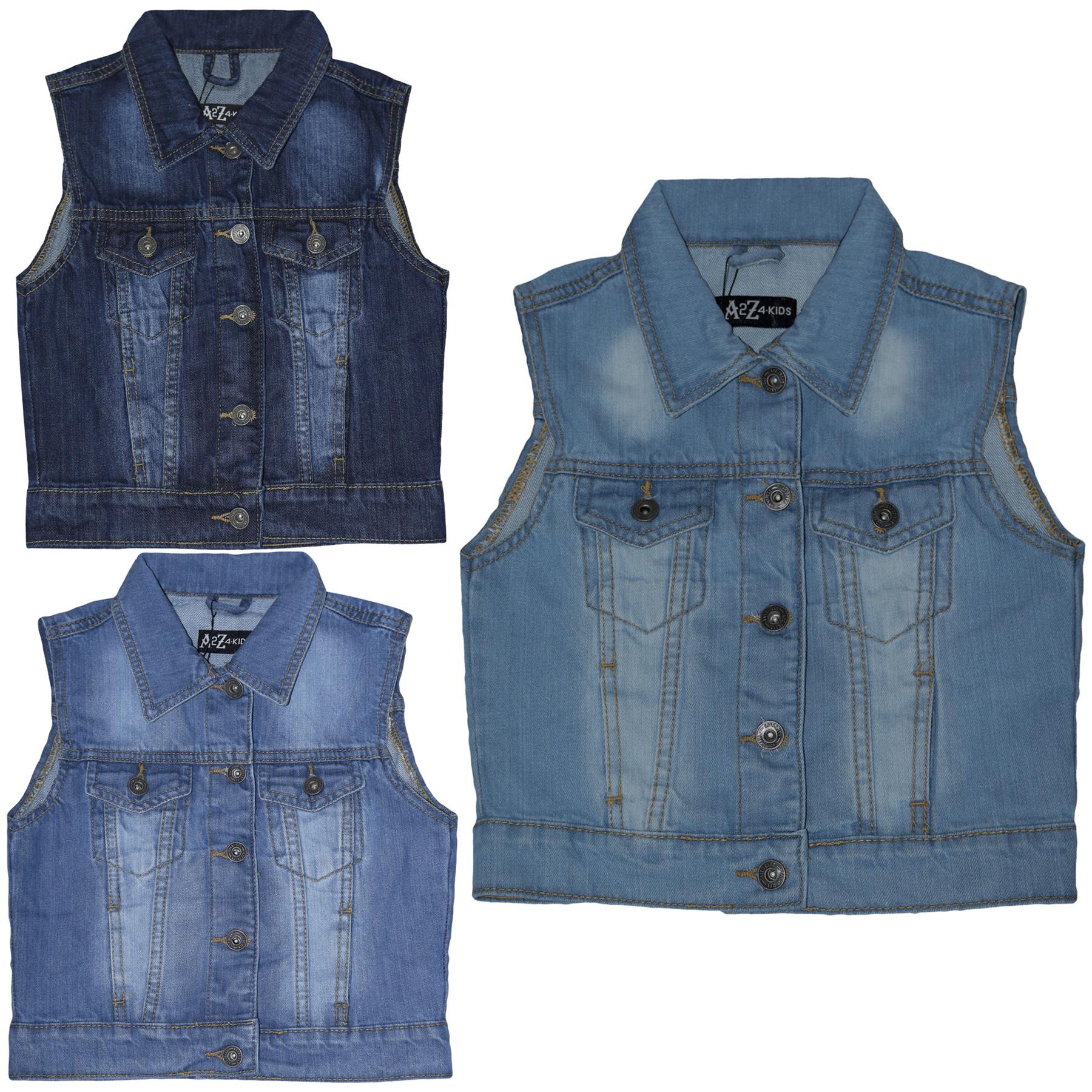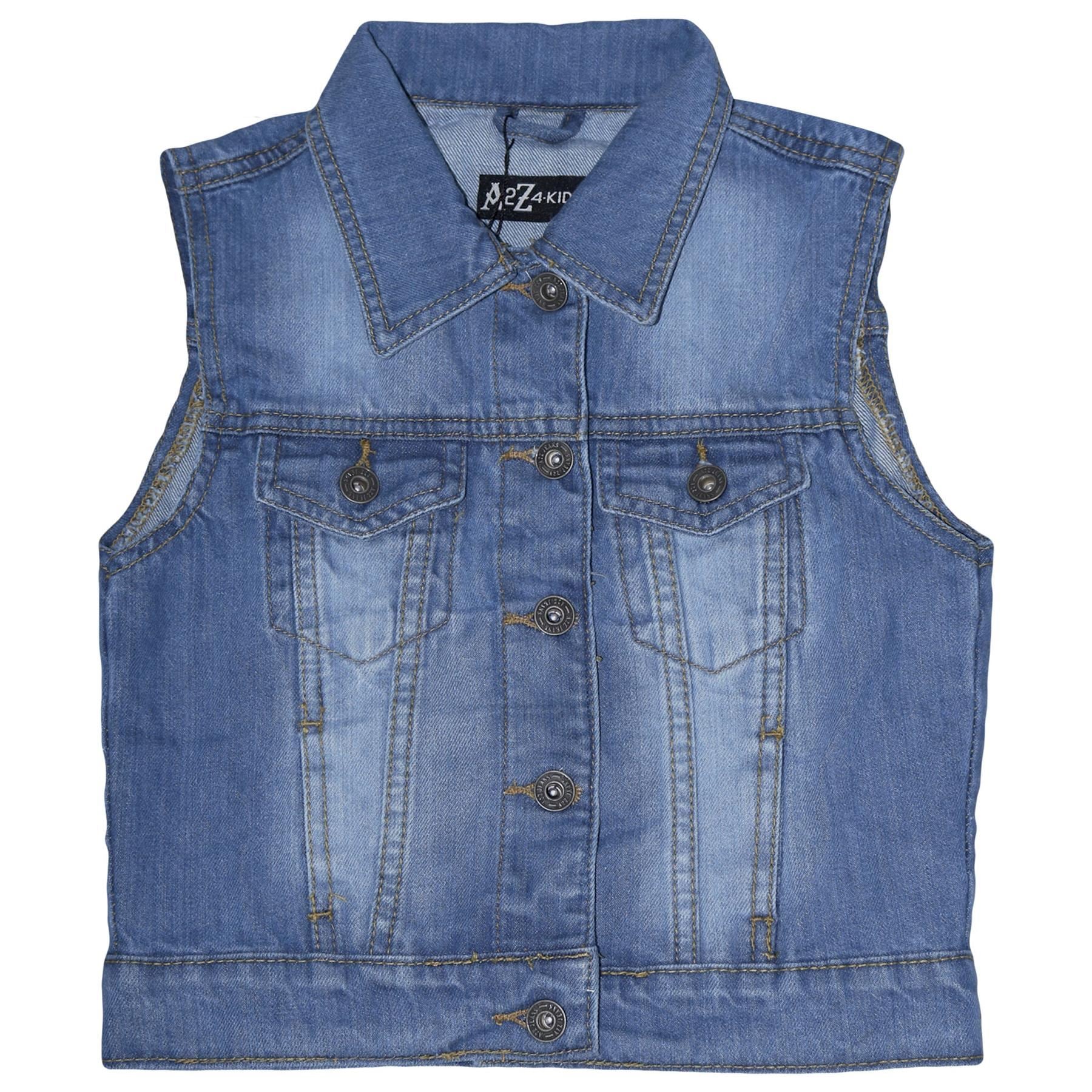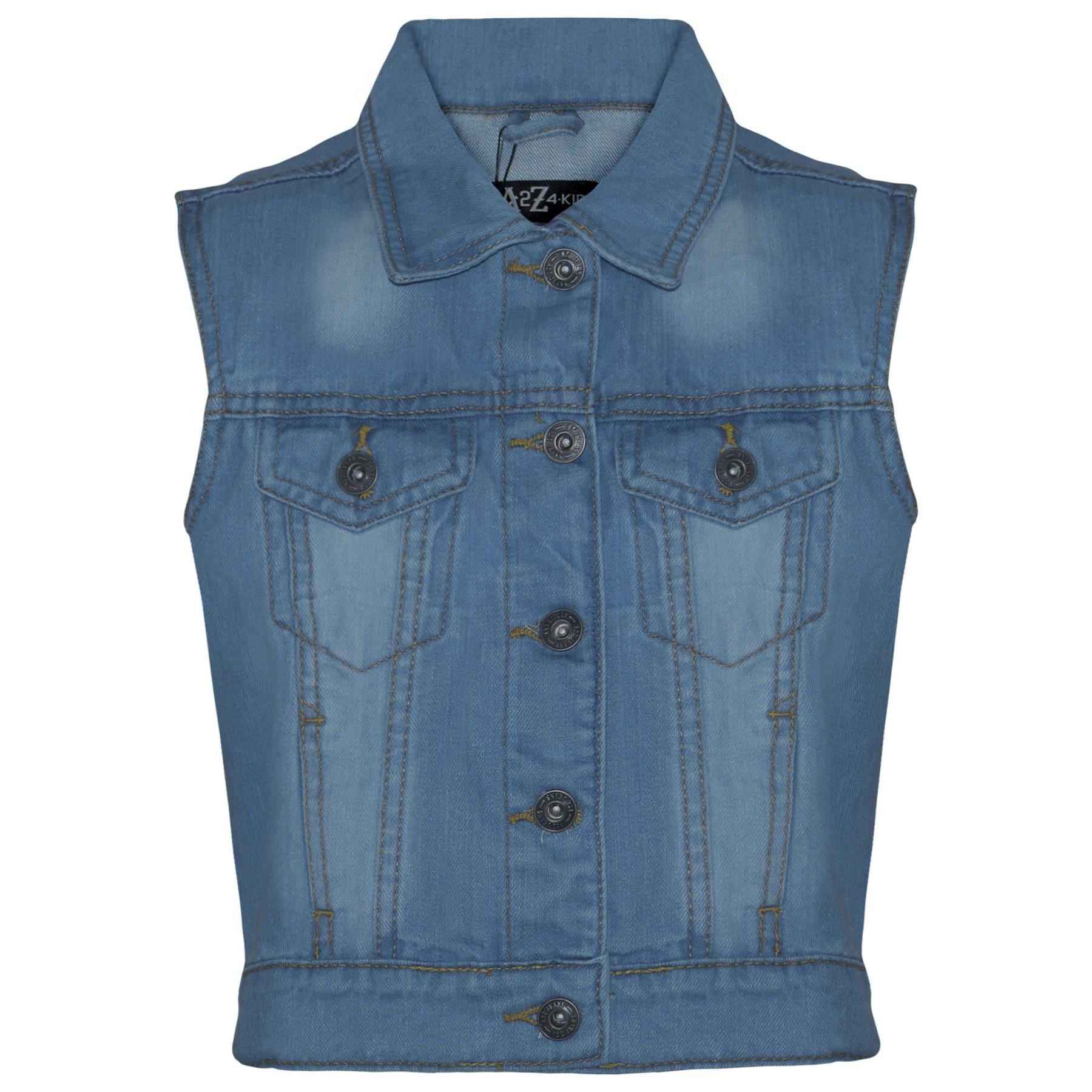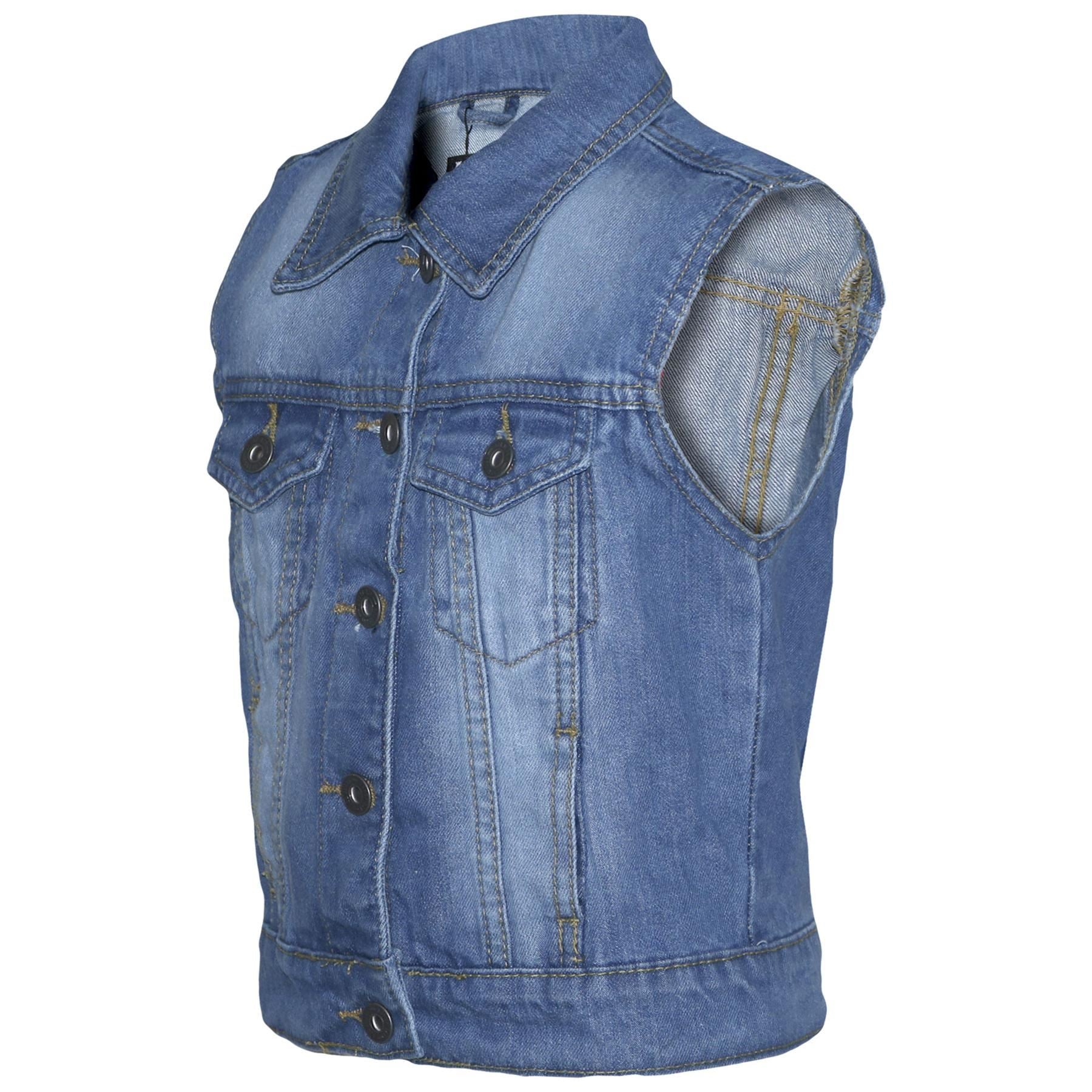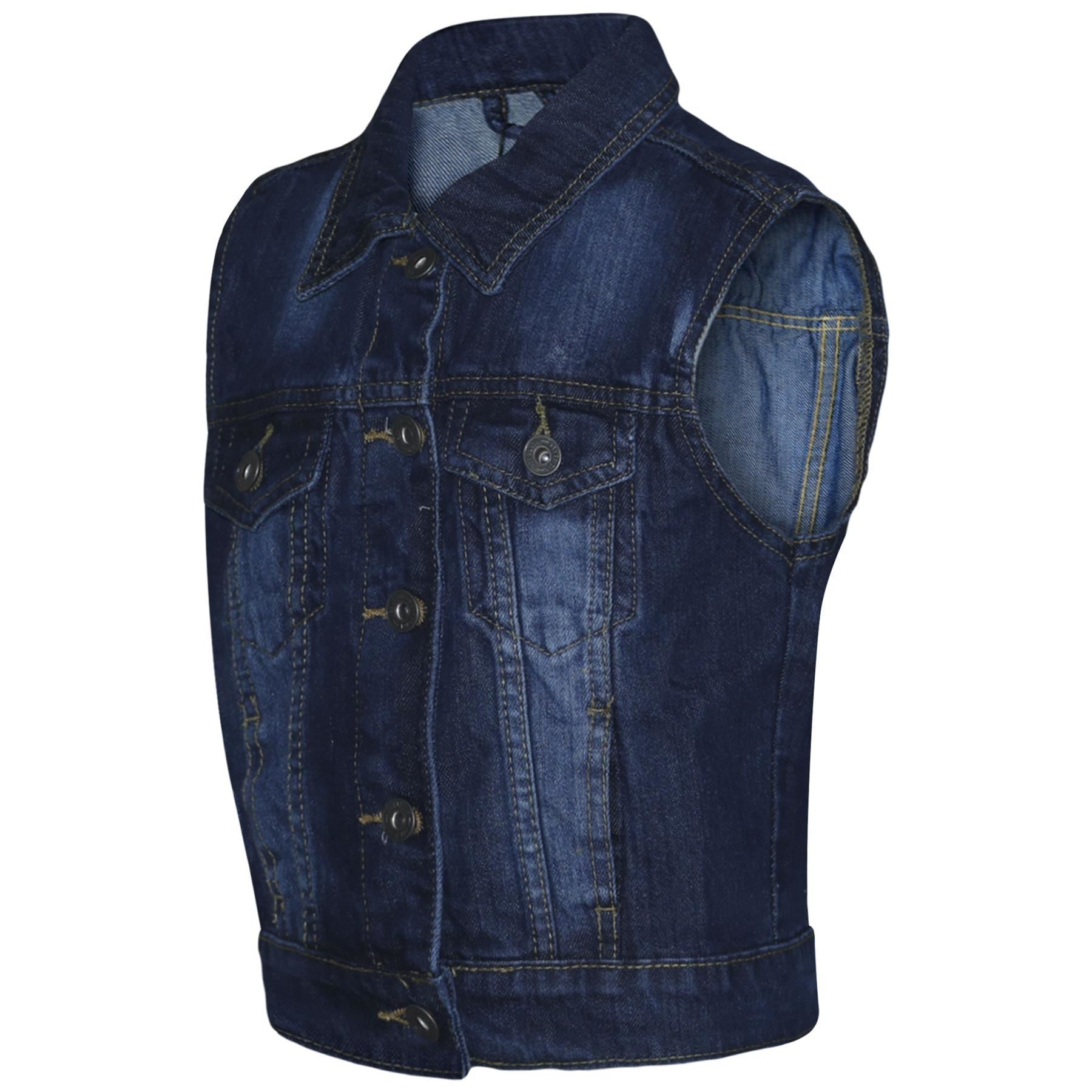 Choose from a selection of timeless shades Mid Blue, Dark Blue, and Light Blue that offer classic appeal and adaptability for various outfits. AVAILABLE SIZES: 3-4 Years, 5-6 Years, 7-8 Years, 9-10 Years, 11-12 Years, and 13 Years.A perfect blend of comfort, style, and practicality—this sleeveless denim jacket is an essential piece for any active, fashion-forward child.