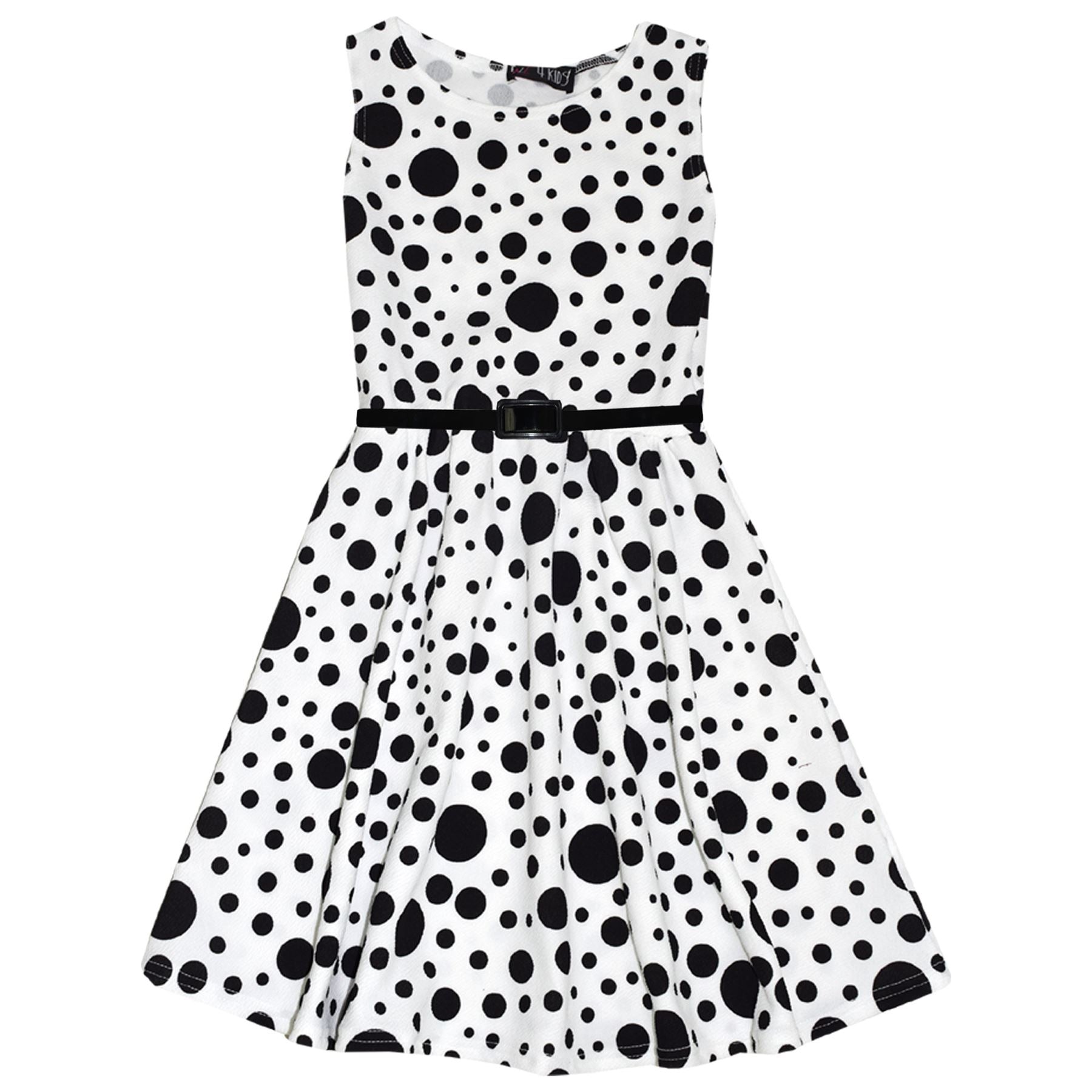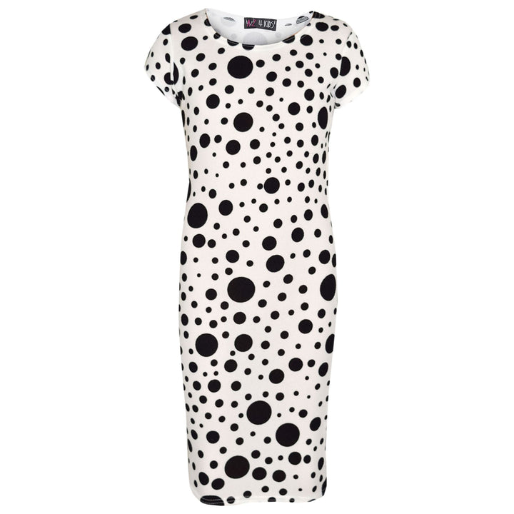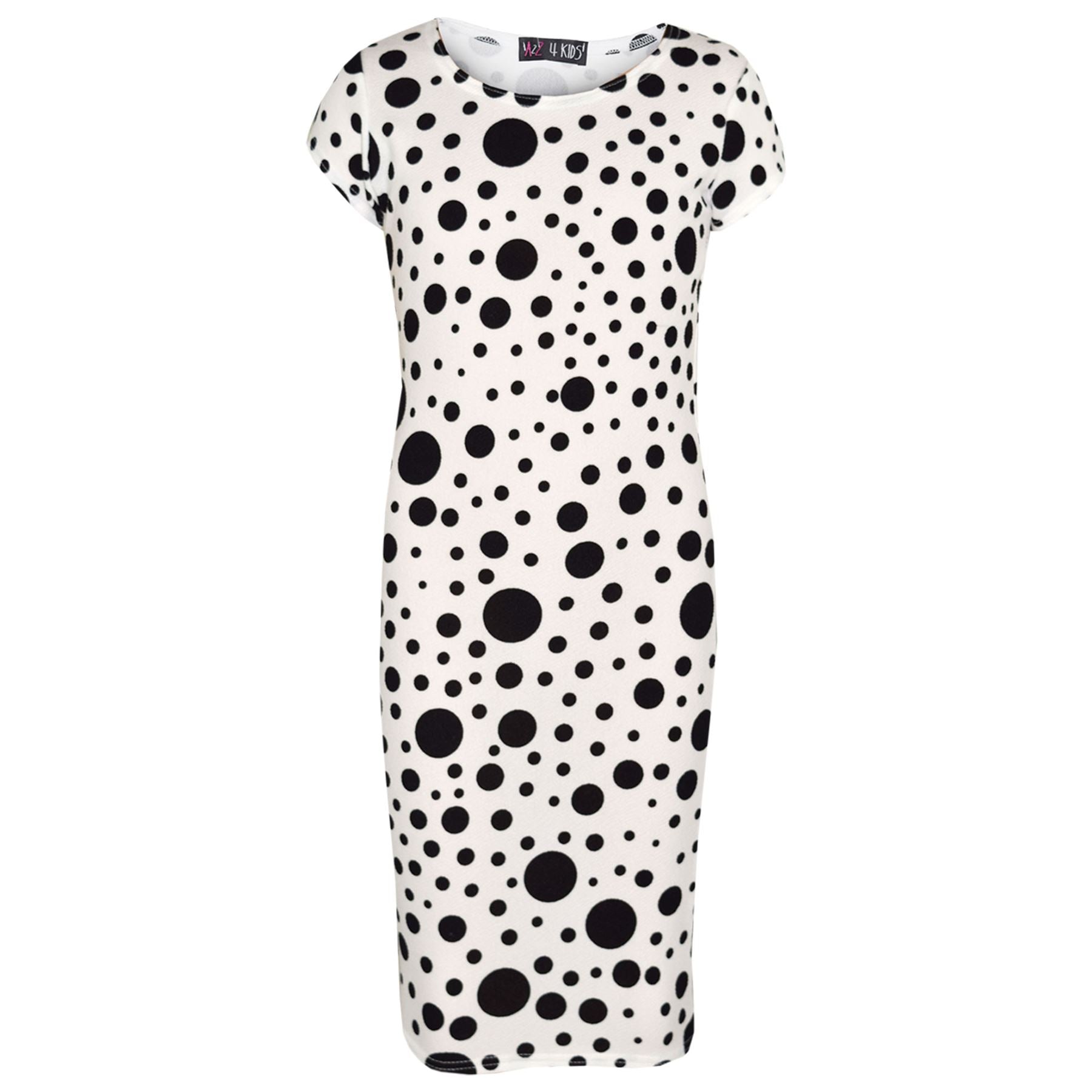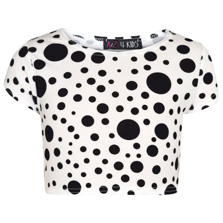 Girls Dresses Kids Black Polka Dot Print Crop Top Legging Midi Skater Dress 7-13