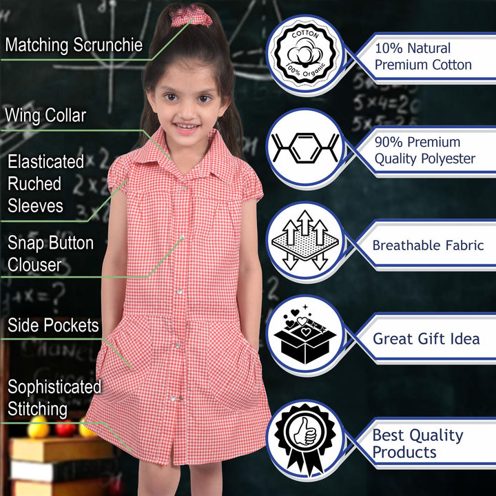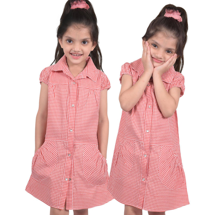 Kids Pack of 2 Girls Dress Breathable with Matching Scrunchies Age 3-14 Years
