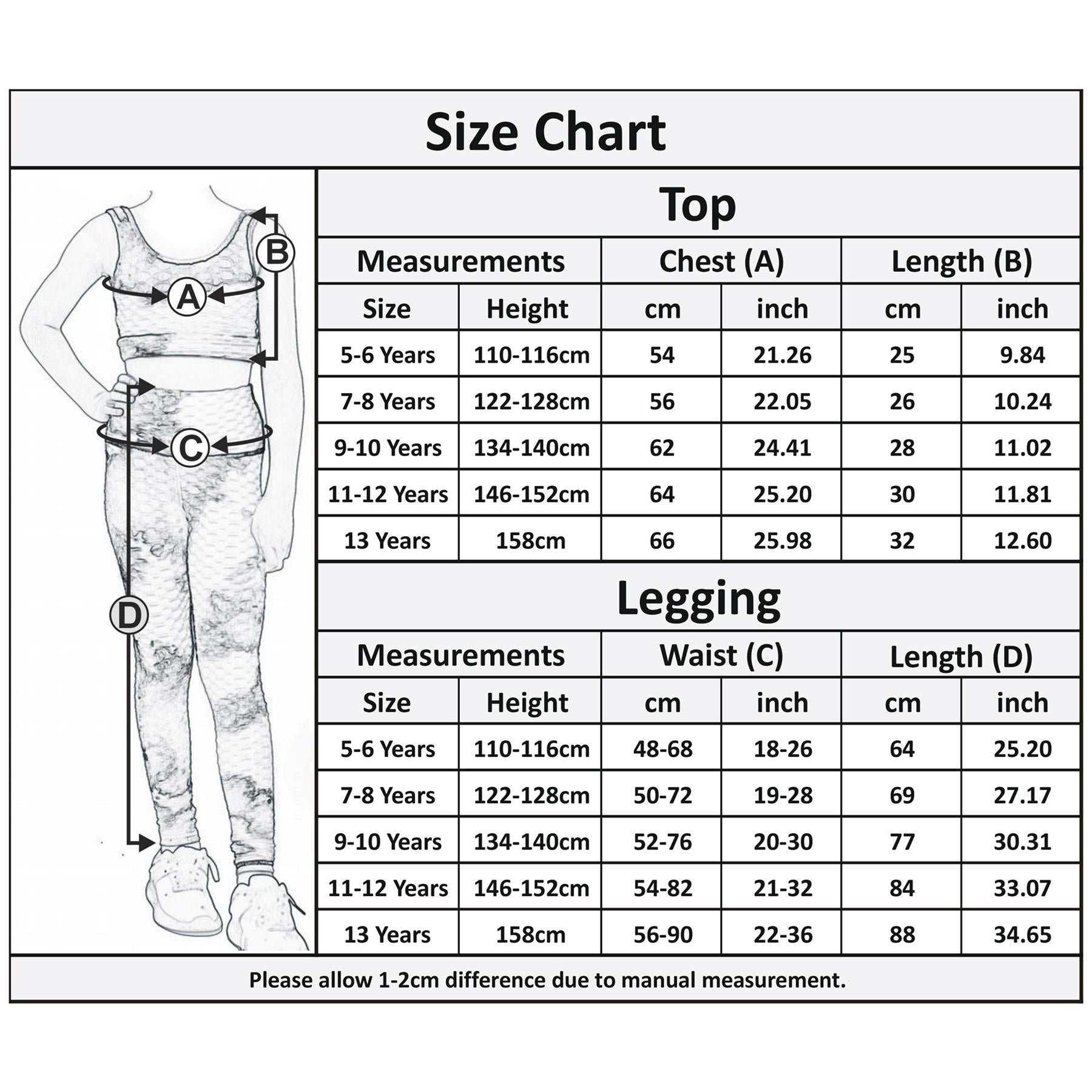 Girls Honeycomb Navy Leggings Crop Top Vest Dance Yoga Exercise High Waist Set