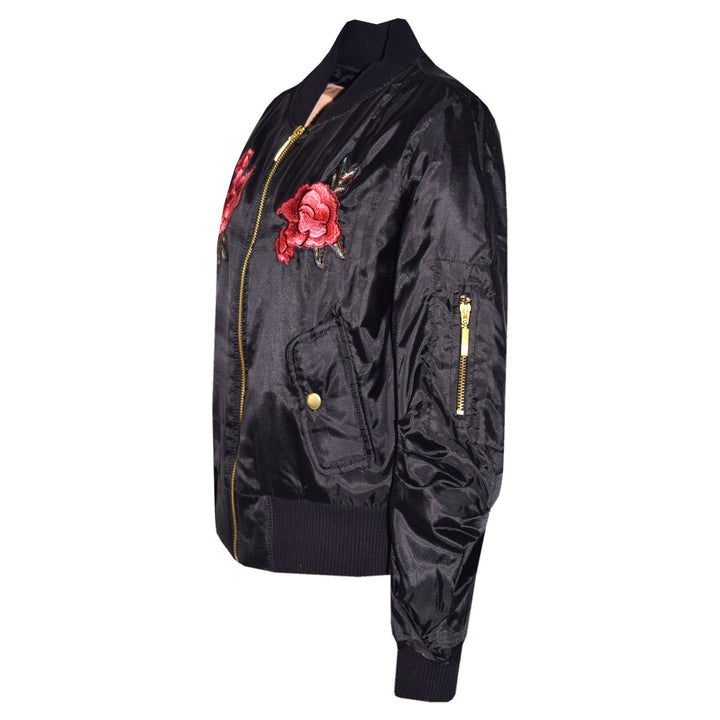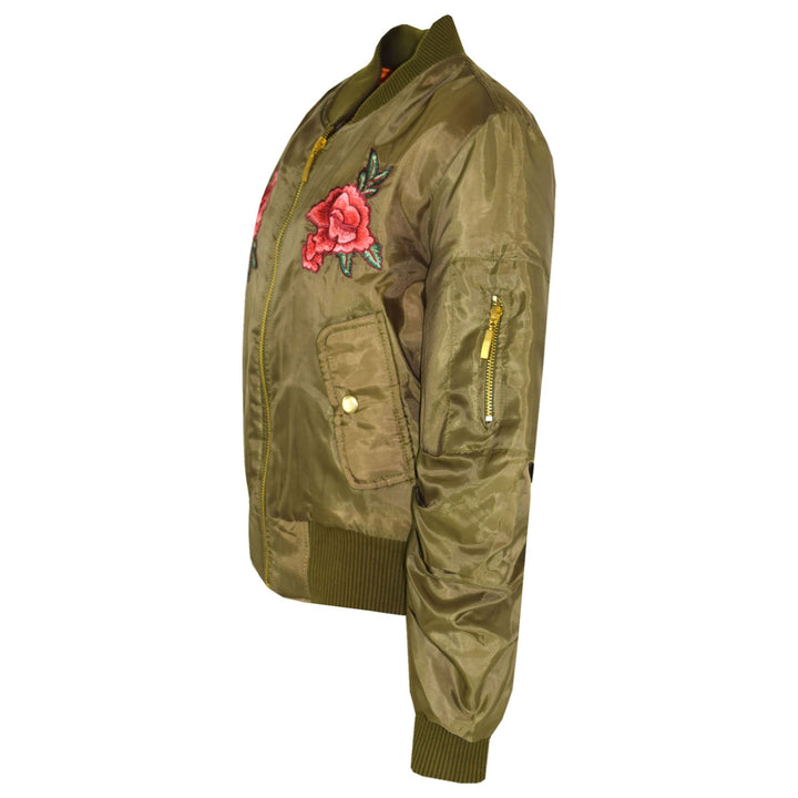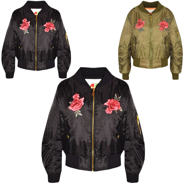 Girls Jacket Kids Roses Print Bomber Padded Zip Up Biker Jackets MA1 Coat 5-13 Y