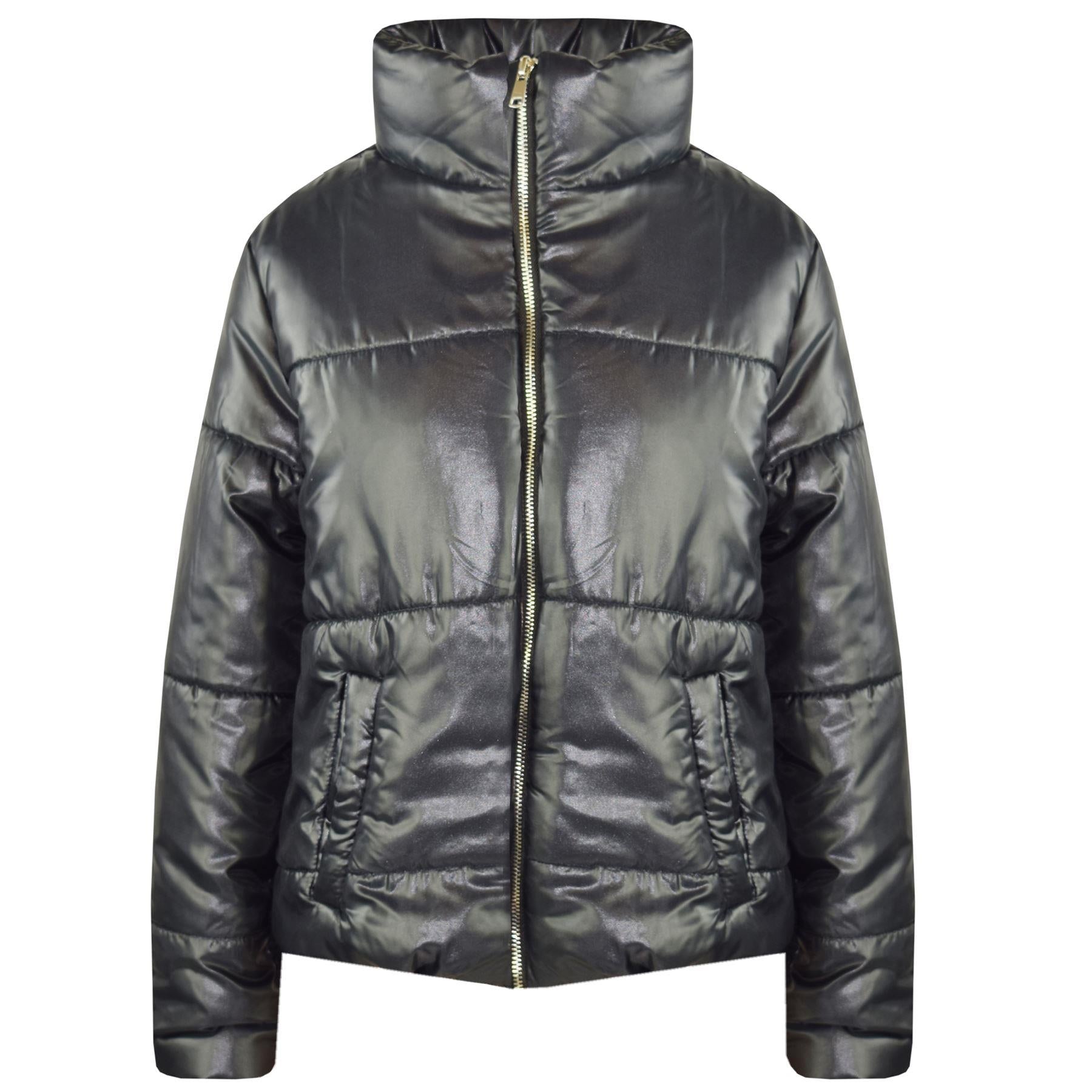 Girls Jacket Kids Wetlook Cropped Padded Quilted Puffer Bubble Jackets Coat 5-13