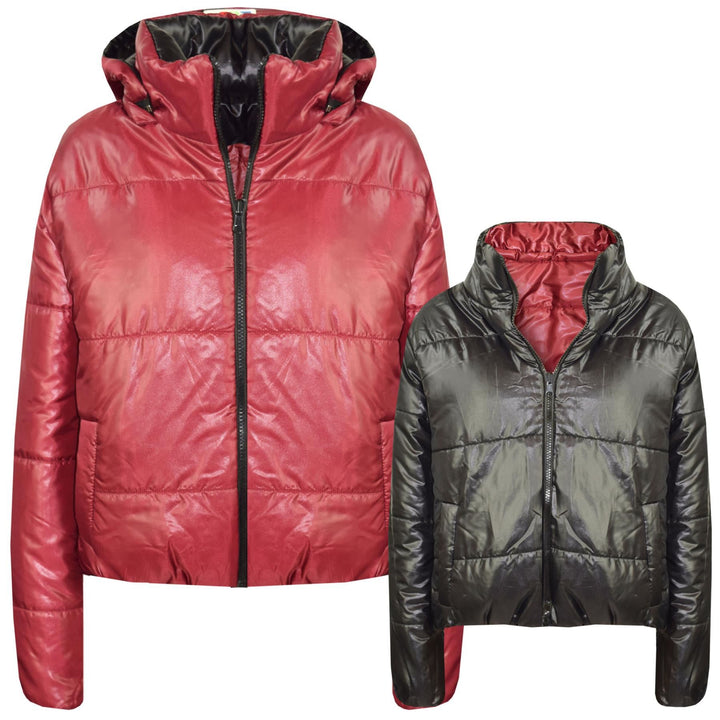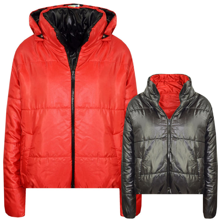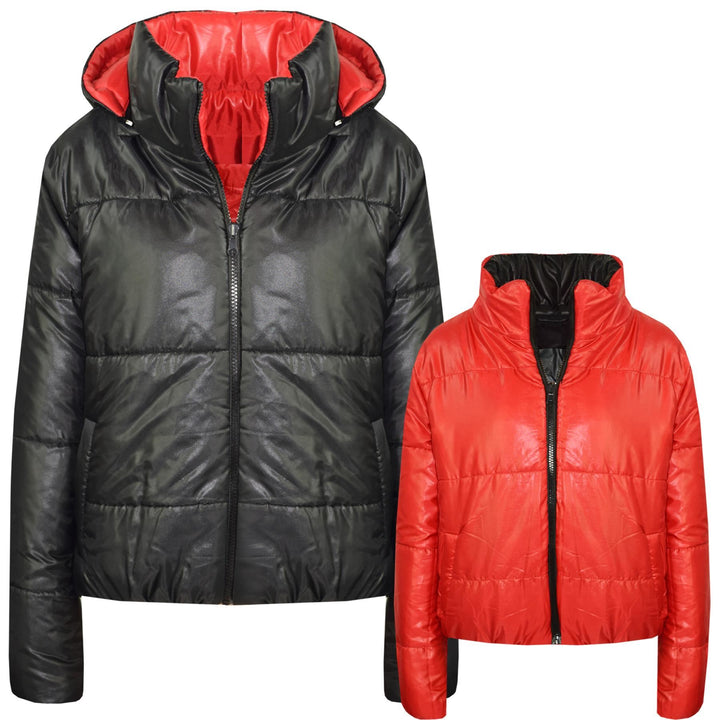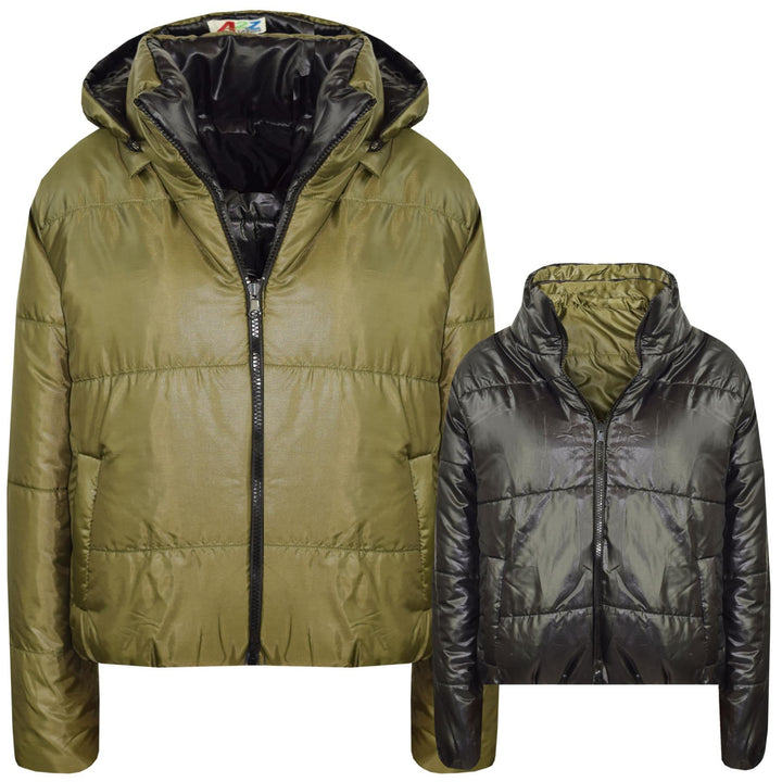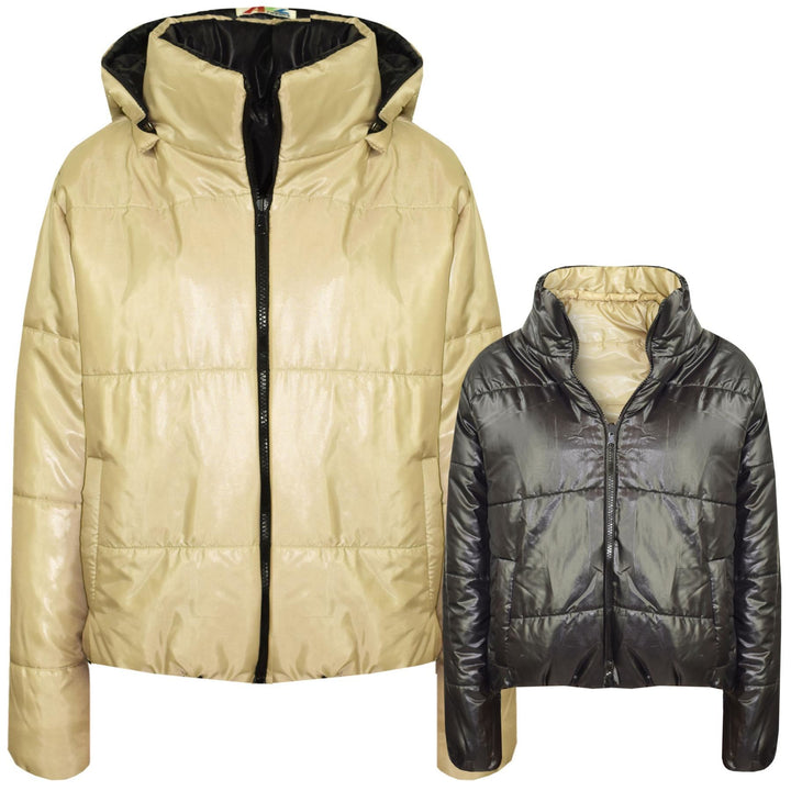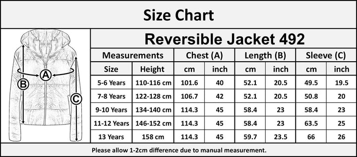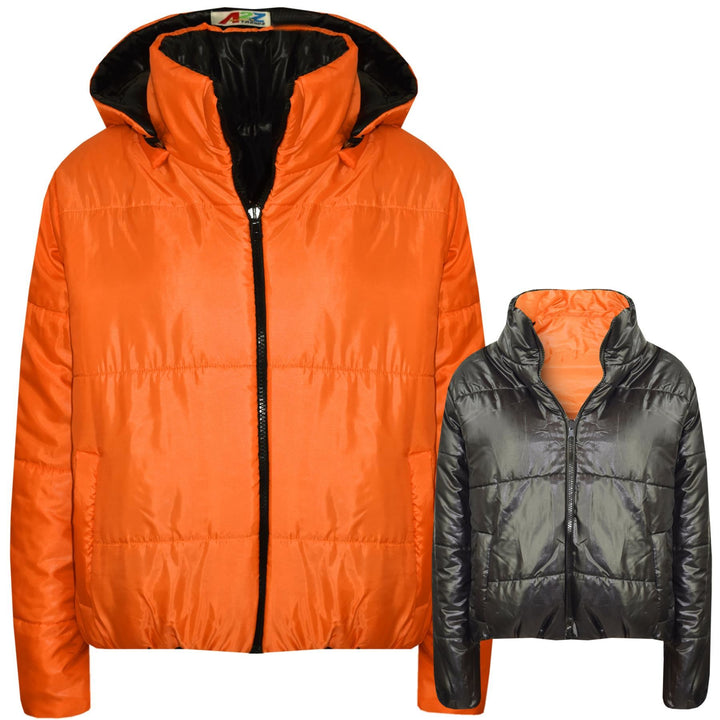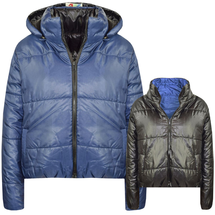 Girls Jackets Kids Reversible Cropped Hooded Padded Puffer Jacket Coat 5-13 Year