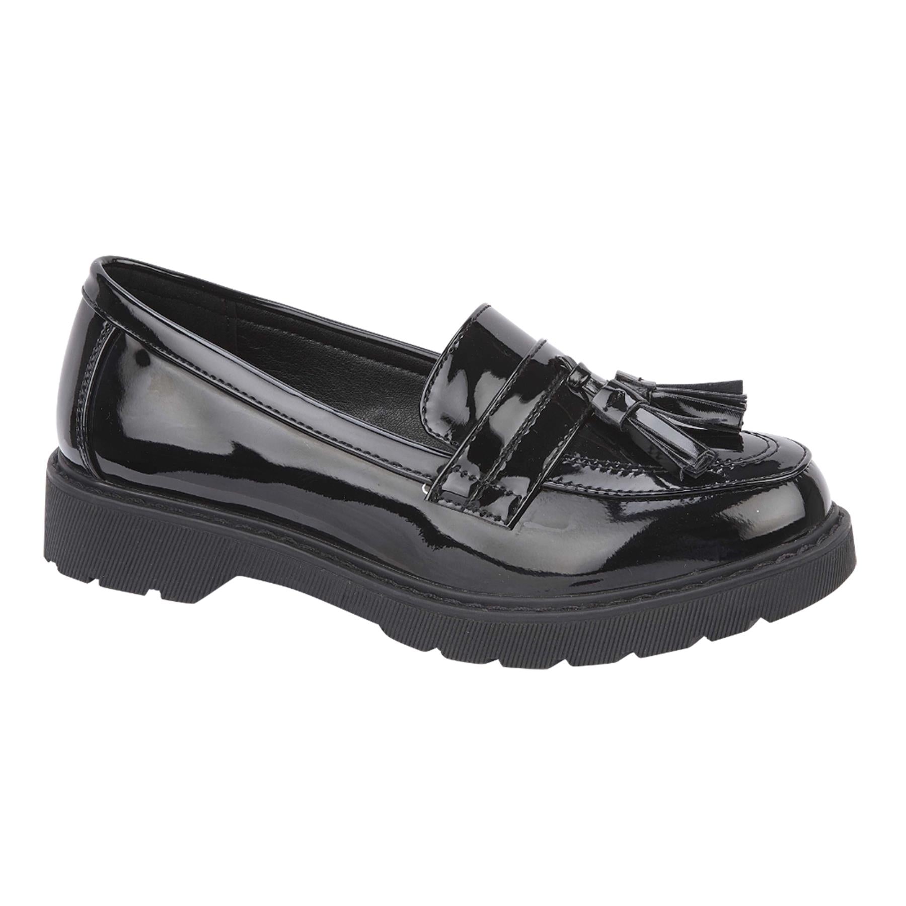 These stylish black patent penny loafers are available in a wide range of UK shoe sizes, including 13 UK Child, 1 UK, 2 UK, 3 UK, 4 UK, 5 UK, 6 UK, 7 UK, and 8 UK. Whether you prefer a snug, comfortable fit or a bit more room for added comfort, you'll find the perfect size to suit your needs.