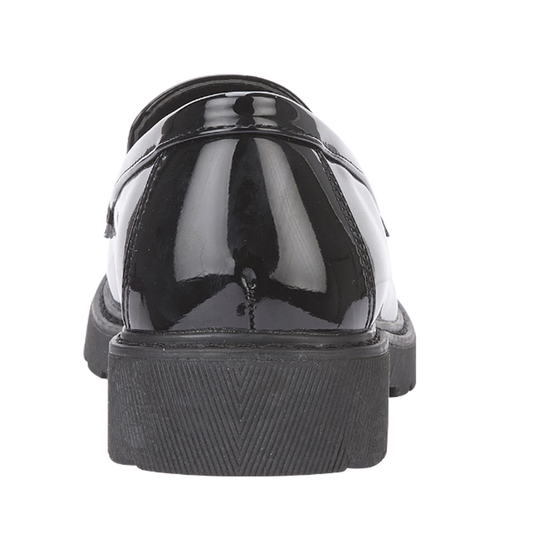 An enduring design that seamlessly blends with both relaxed and dressy settings, our women's classic loafer shoe for teens and big girls is sure to win hearts with its glossy patent upper. These girls loafers are crafted from high-quality black patent faux leather, making them stylish and durable. The sleek finish adds a touch of sophistication to any outfit. Whether for work, a smart occasion, or casual wear.