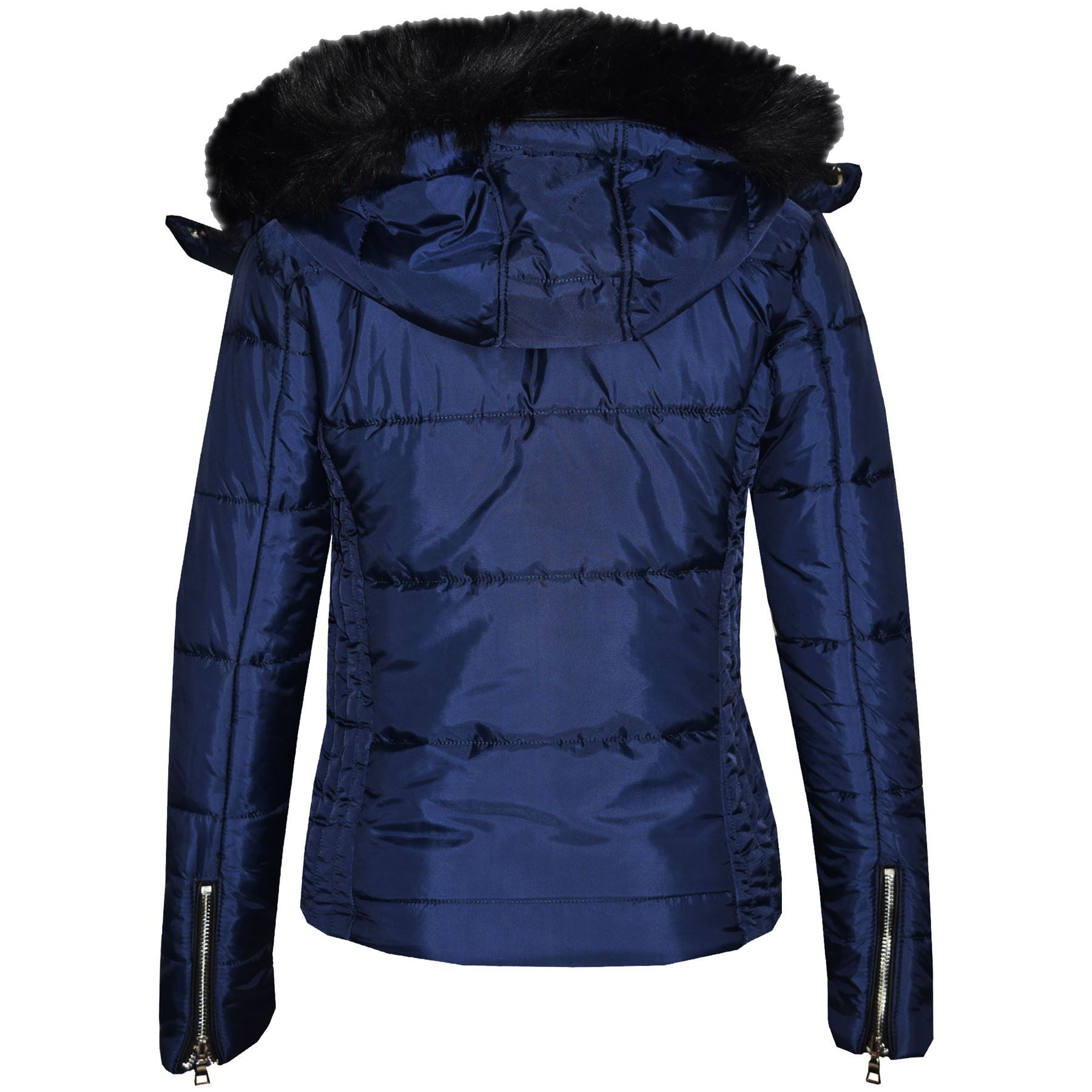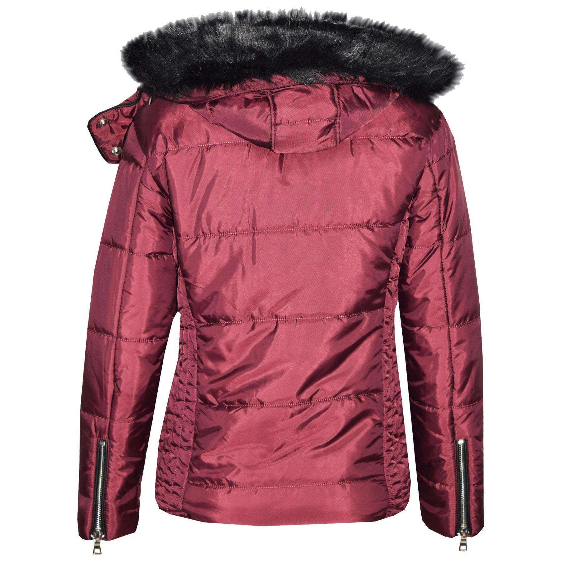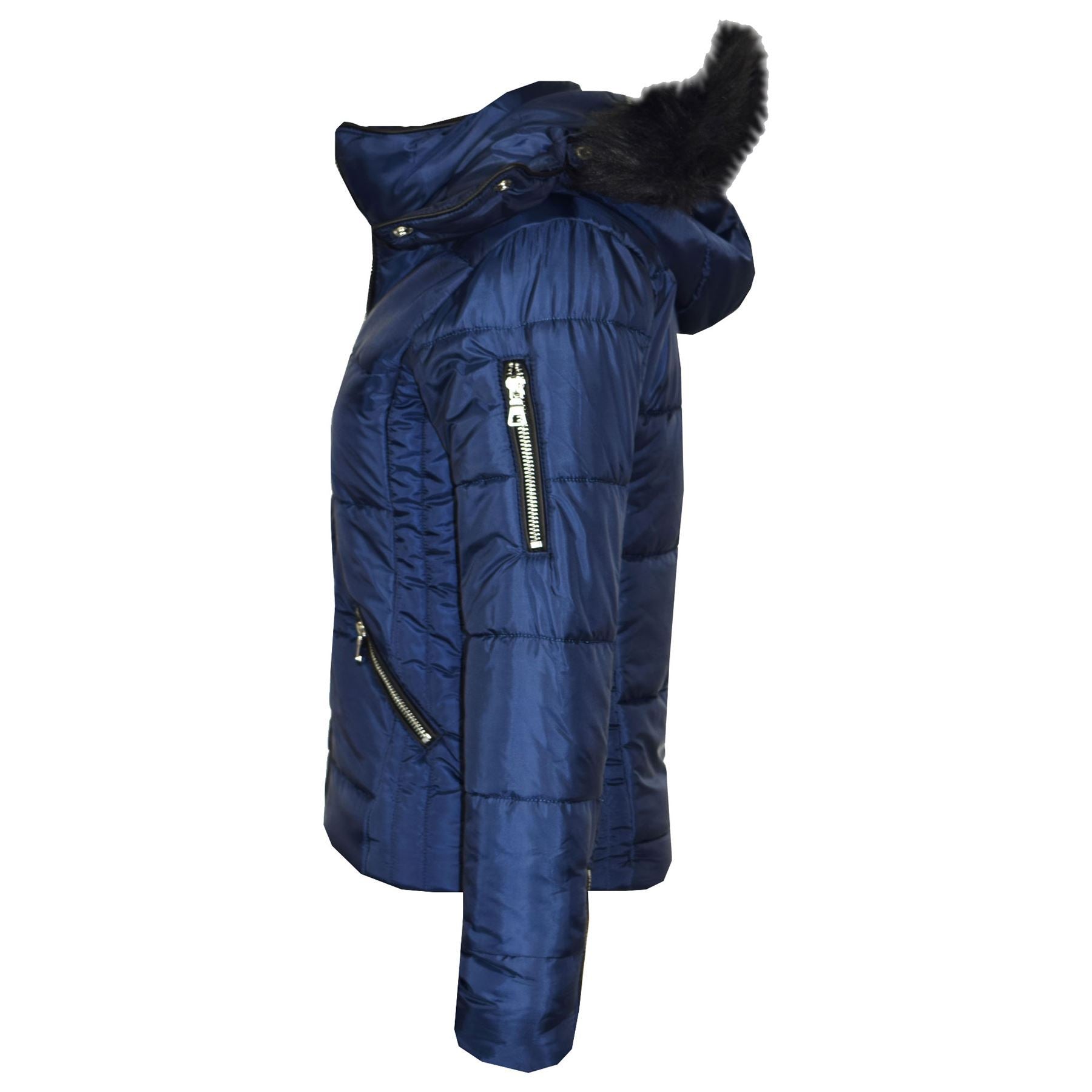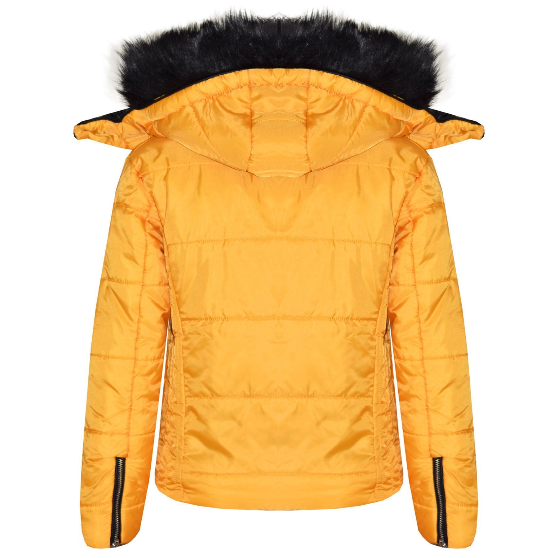 Girls Puffer Jacket Quilted Winter Coat Faux Fur Hood Warm Padded Zipped Coat