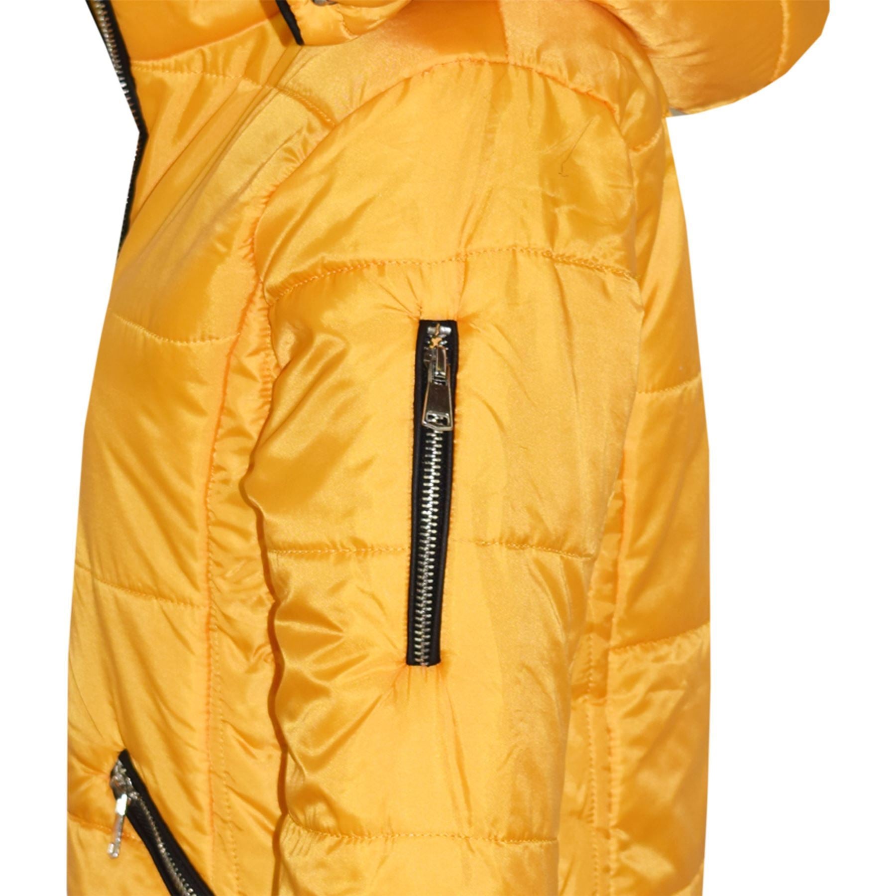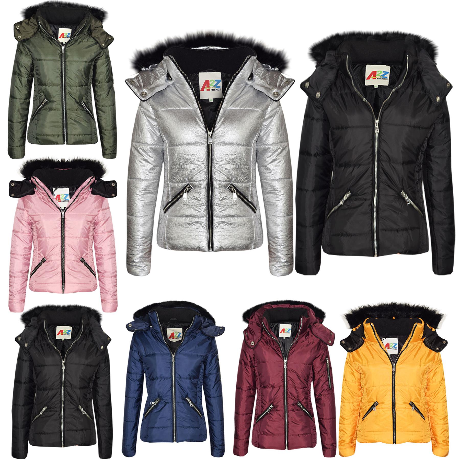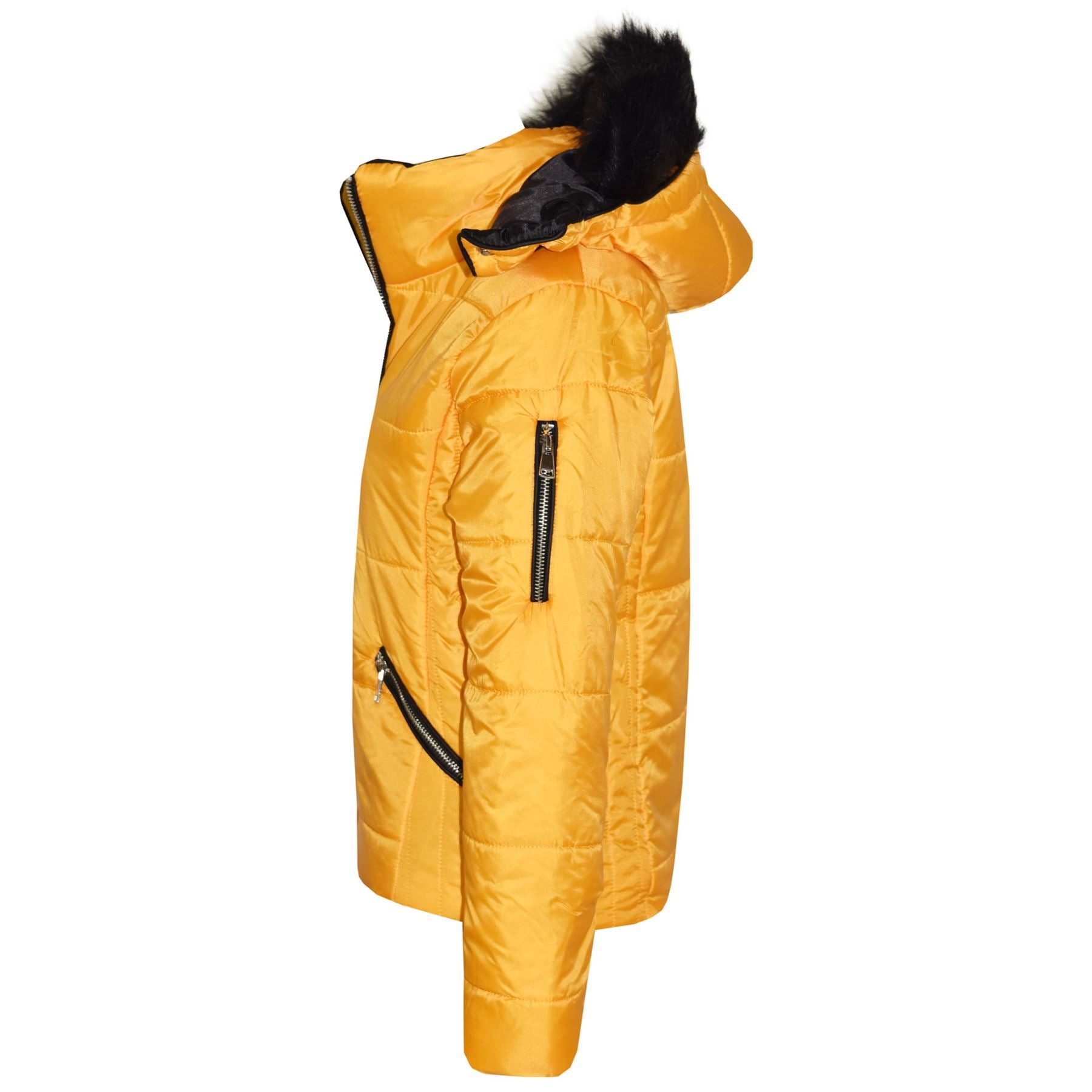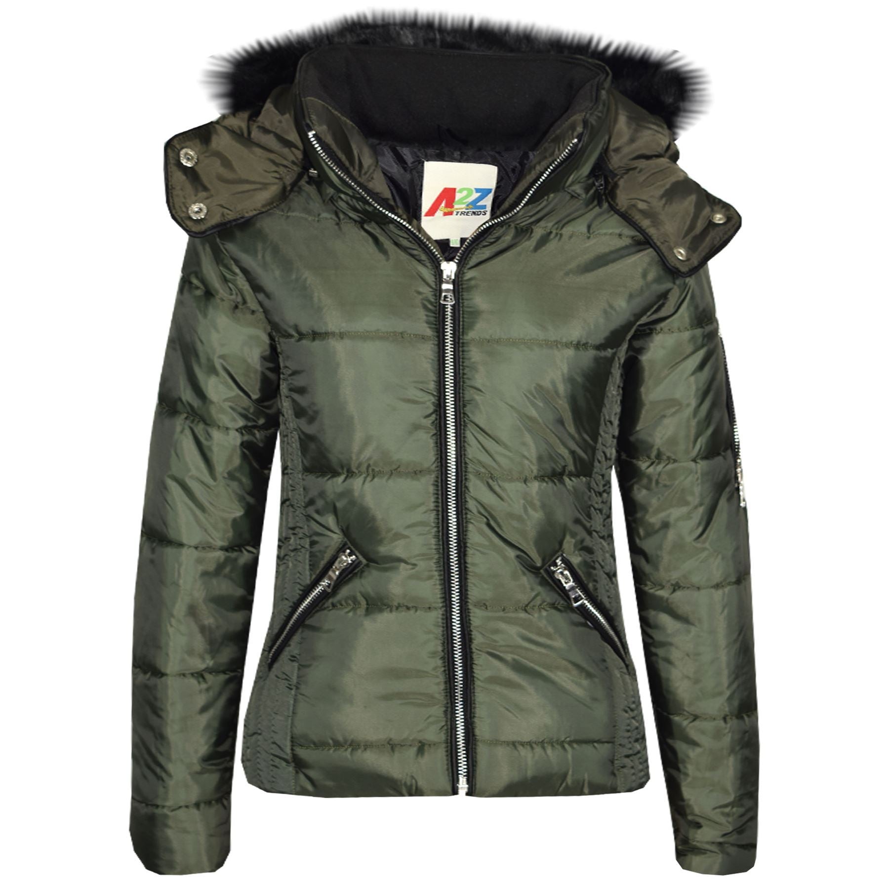 Girls Puffer Jacket Quilted Winter Coat Faux Fur Hood Warm Padded Zipped Coat