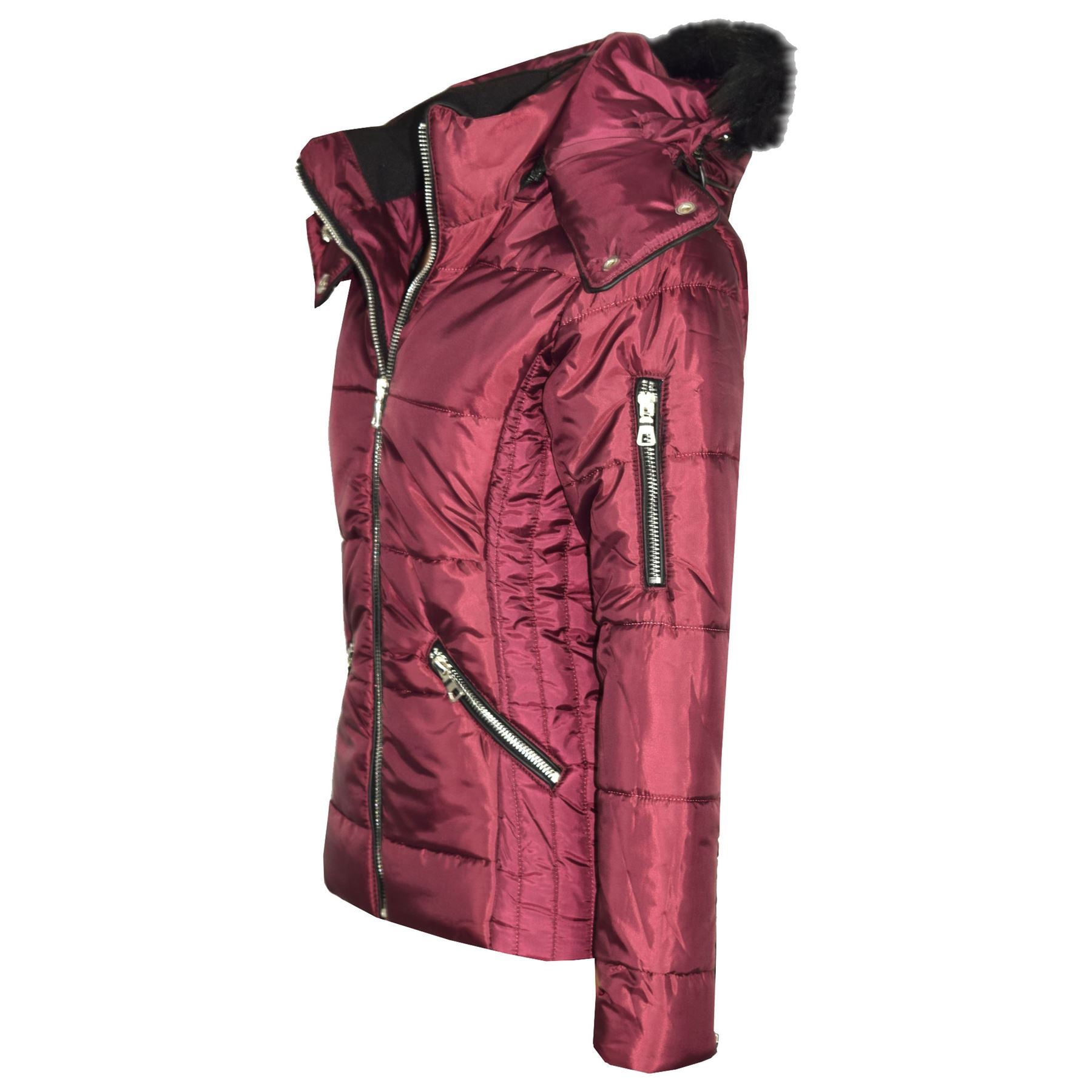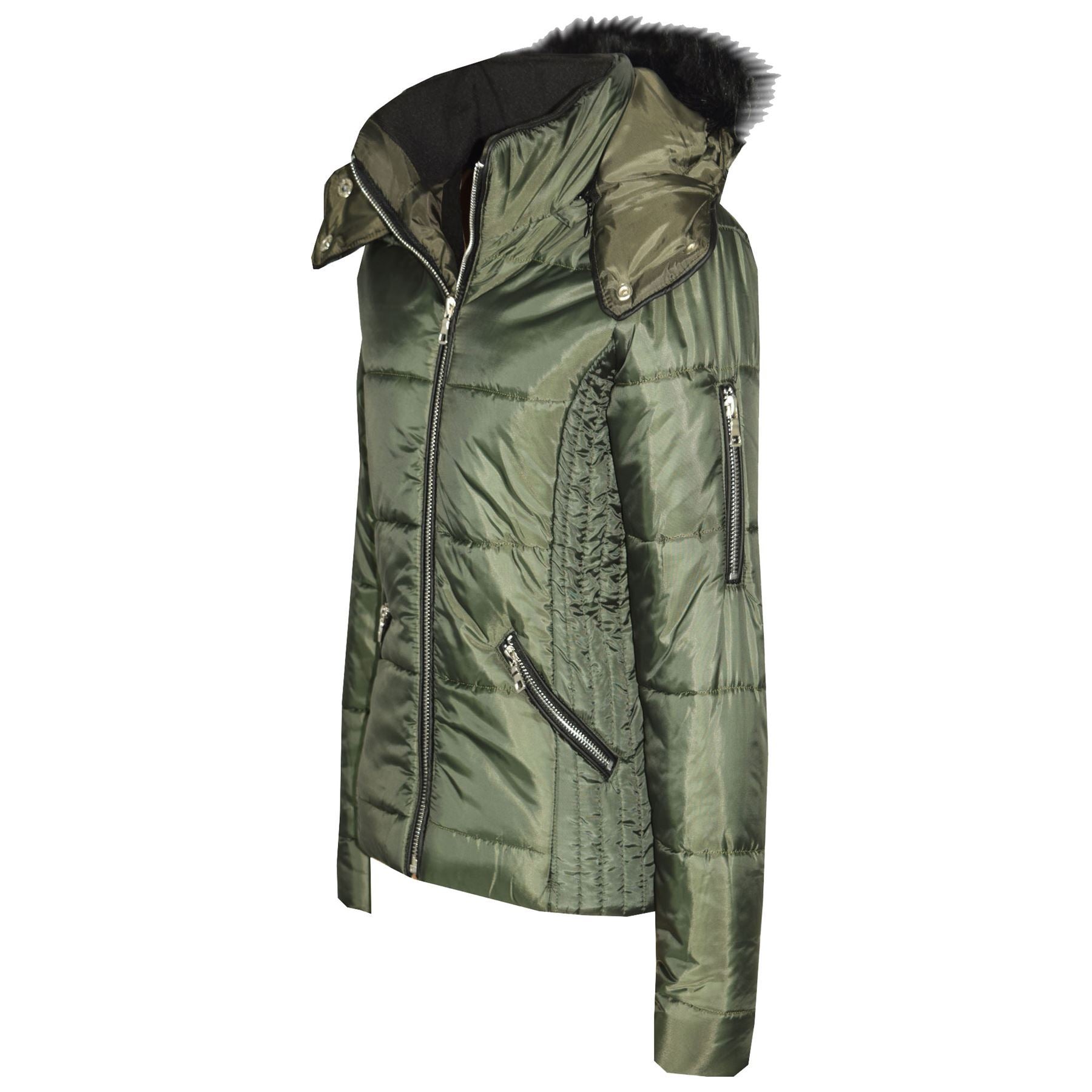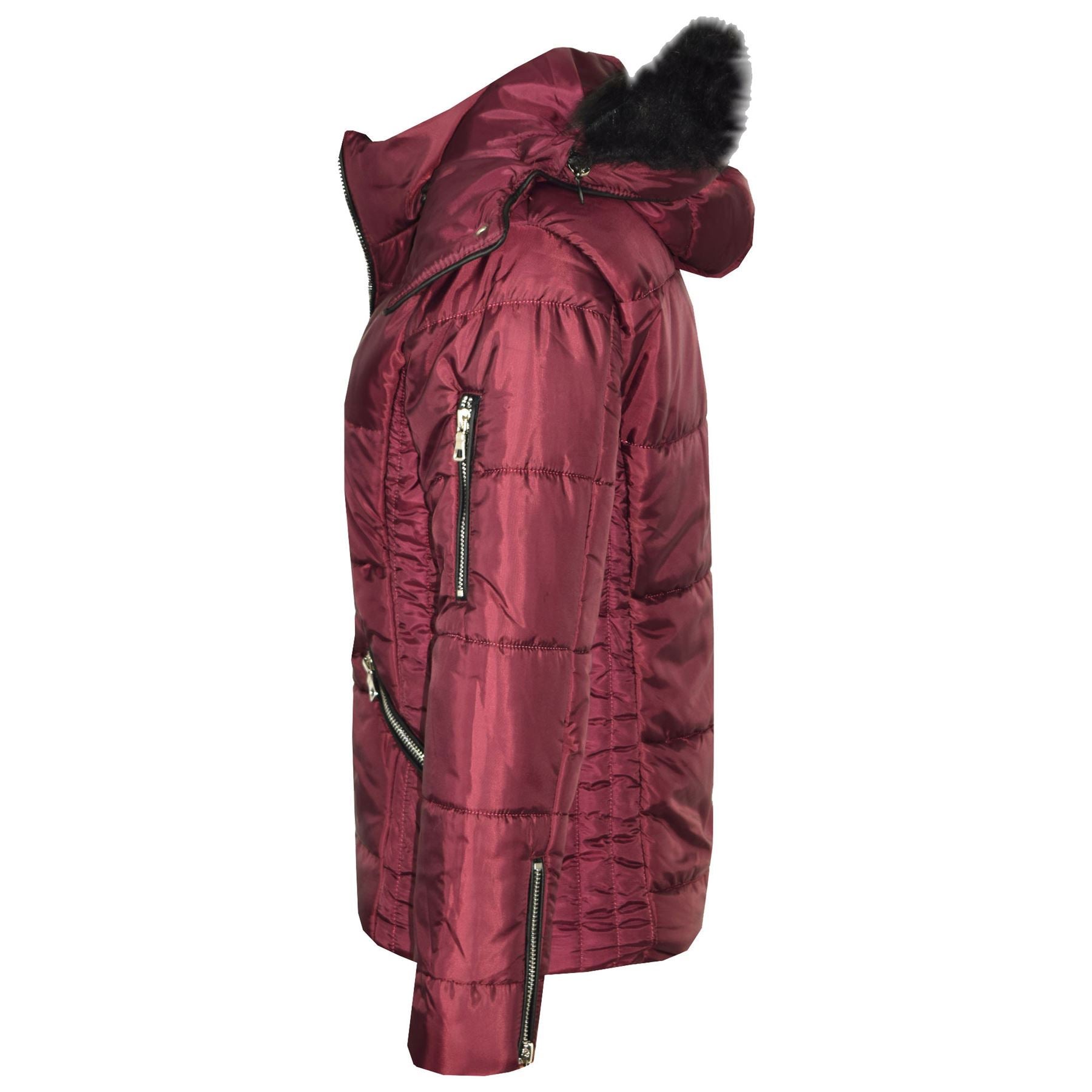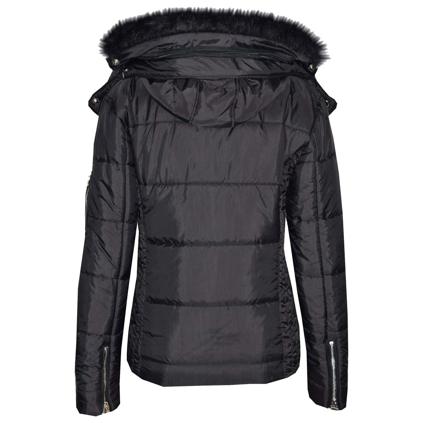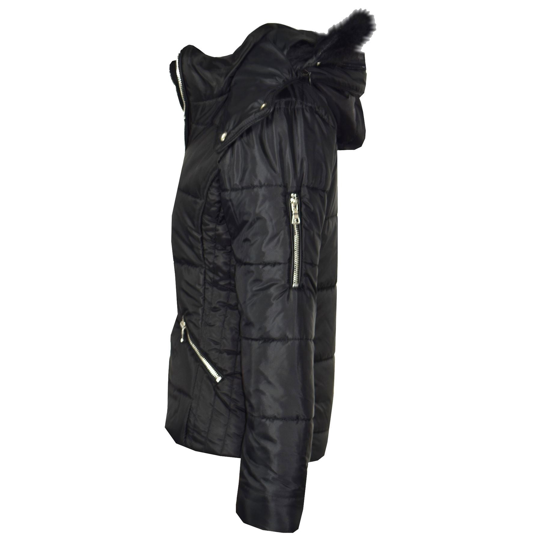 Girls Puffer Jacket Quilted Winter Coat Faux Fur Hood Warm Padded Zipped Coat