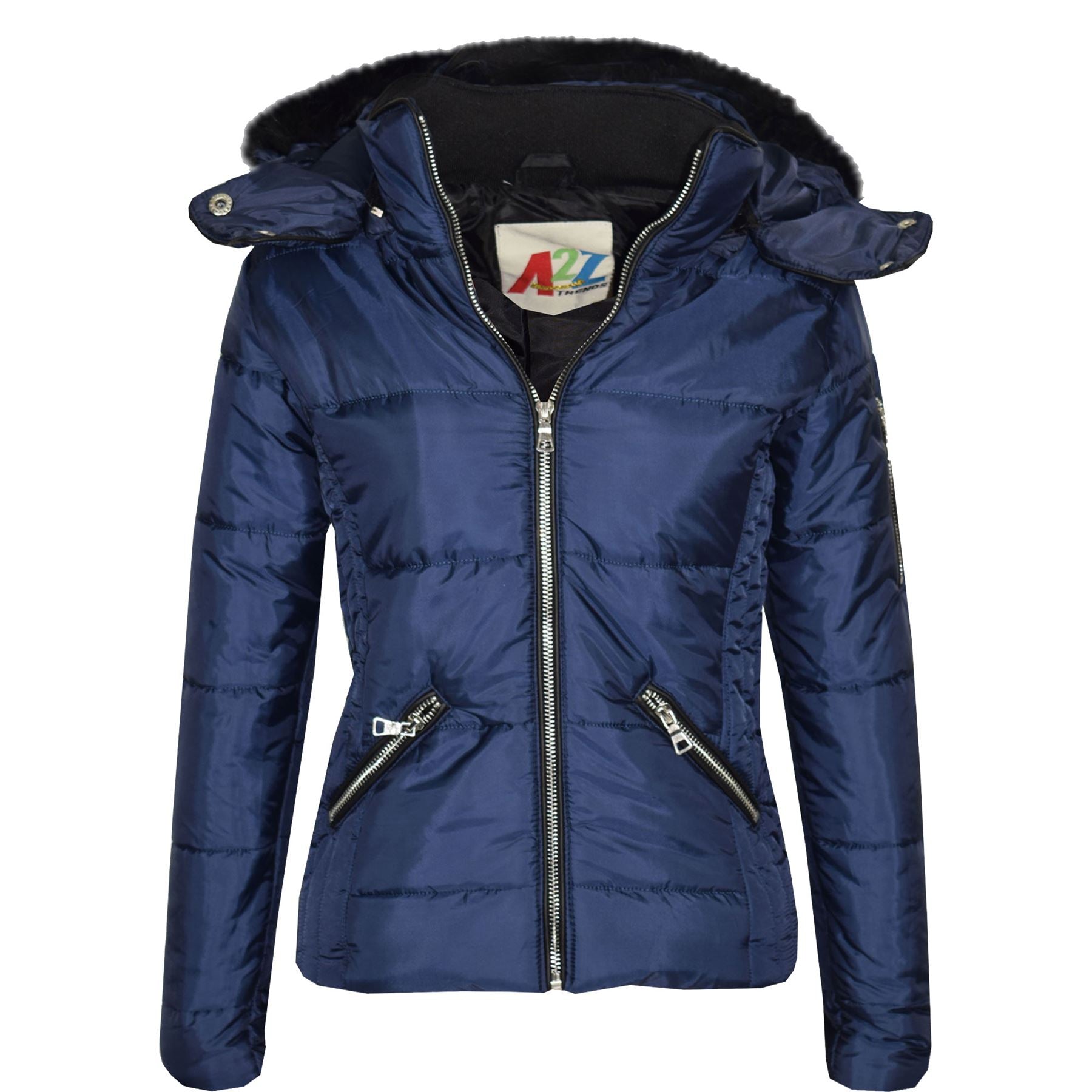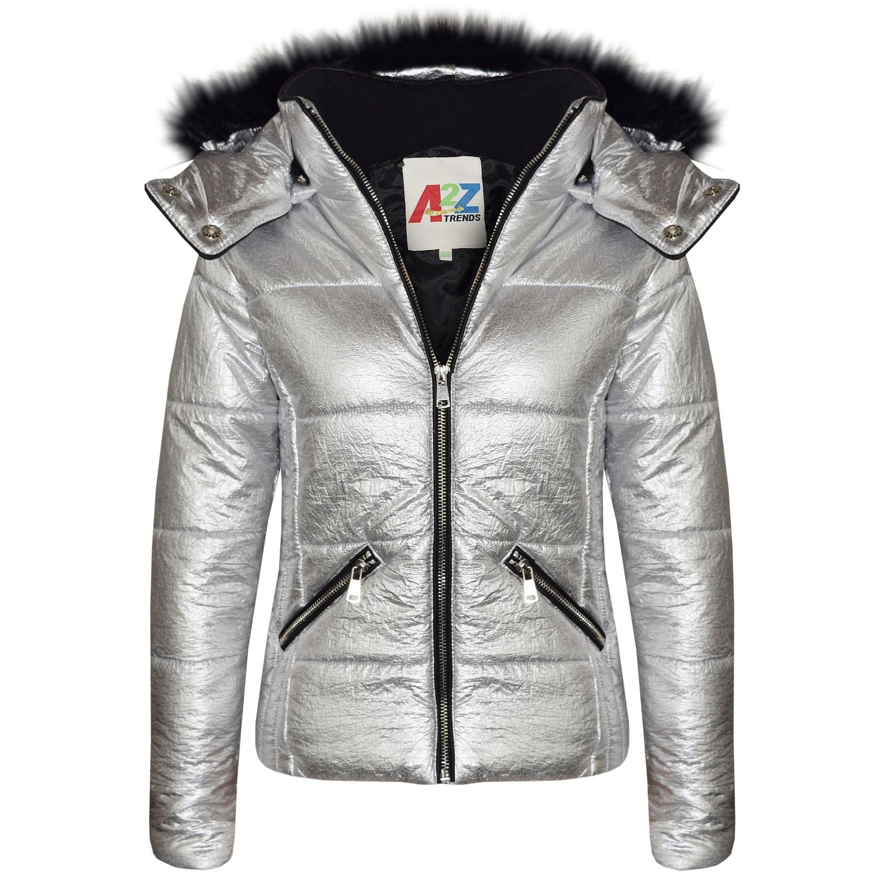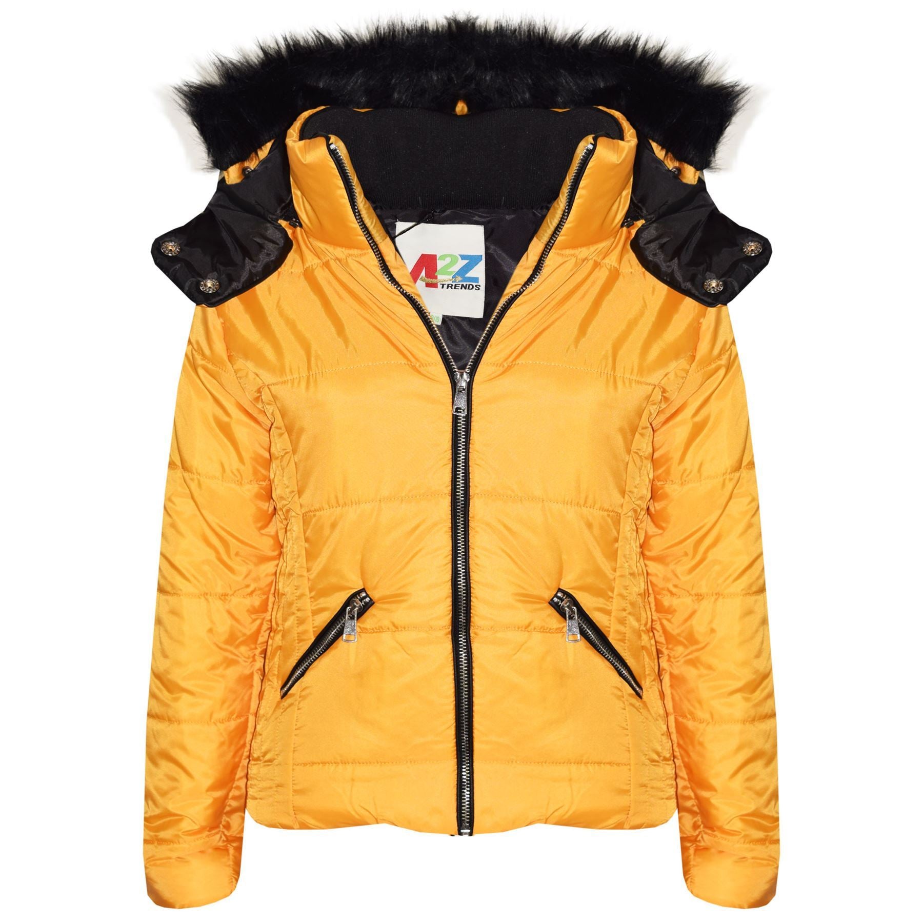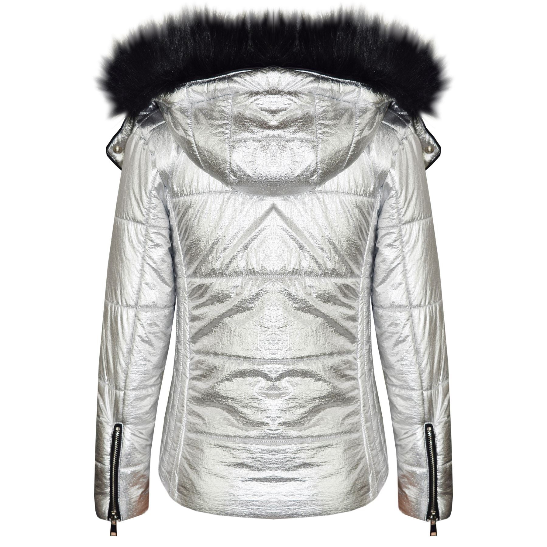 Girls Puffer Jacket Quilted Winter Coat Faux Fur Hood Warm Padded Zipped Coat