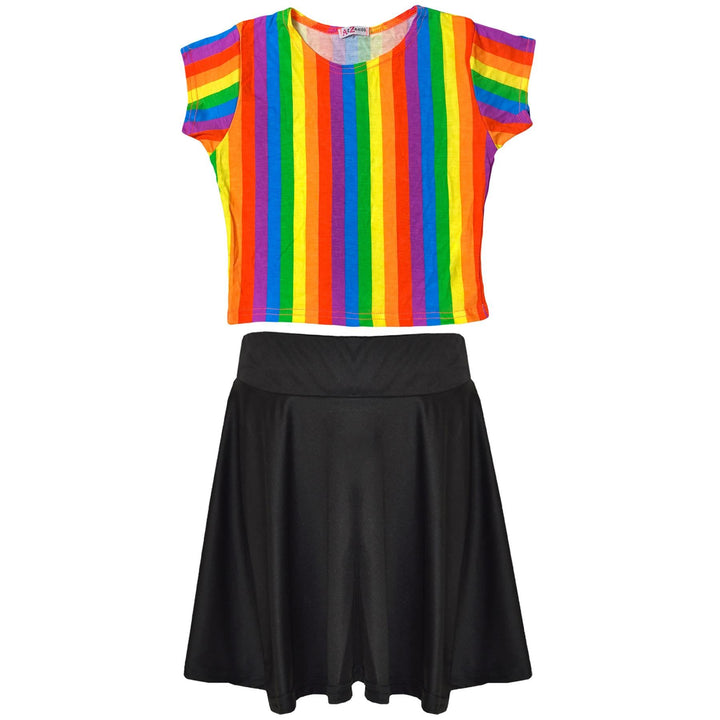 Girls Rainbow Clothing Crop Tops Skirts Dresses Jumpsuits Leggings Party Wear