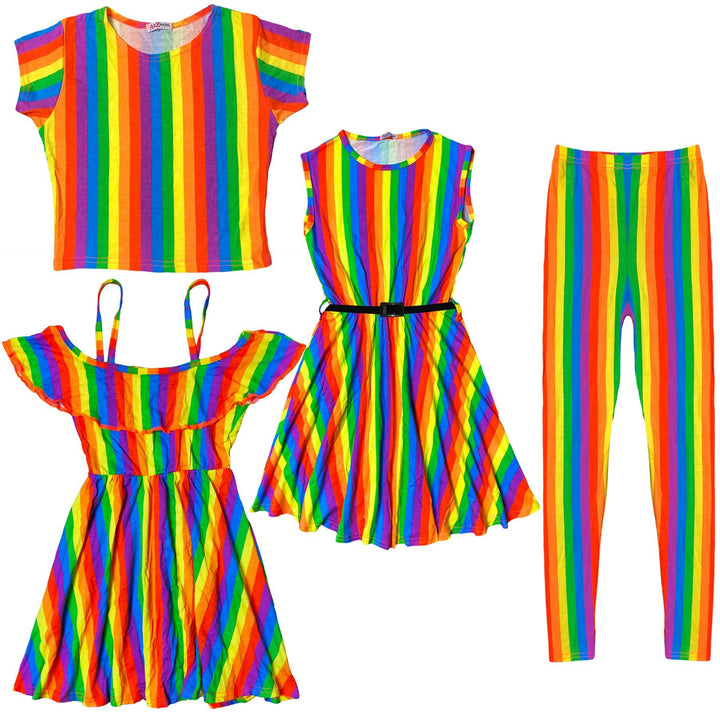 Rainbow Skater Dress., Rainbow Crop Top., Rainbow Skater Skirt., Rainbow Off Shoulder Dress., Rainbow Crop & Skirt Set., Rainbow Jumpsuit., Rainbow Legging., Rainbow Jumpsuit |