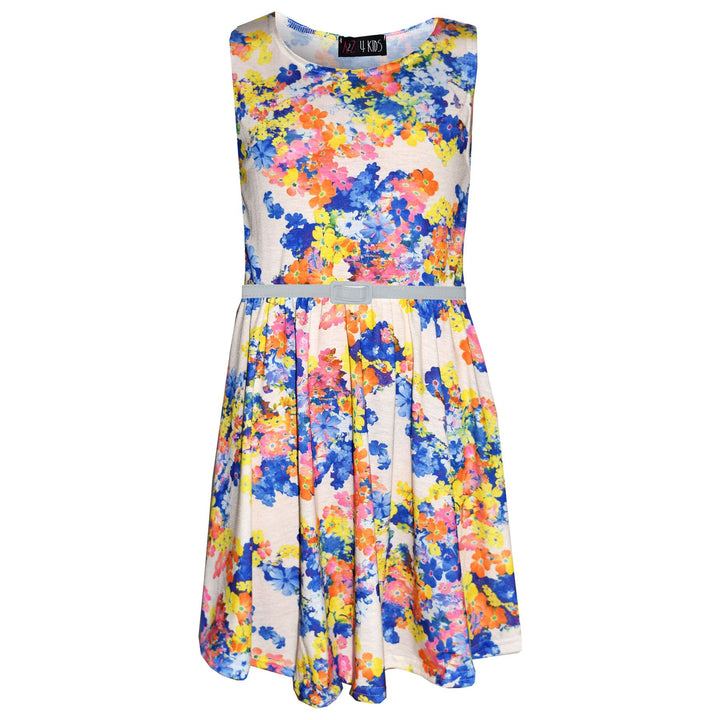 Girls Skater Dress Kids Floral Print Summer Party Fashion Dresses Age 7-13 Year