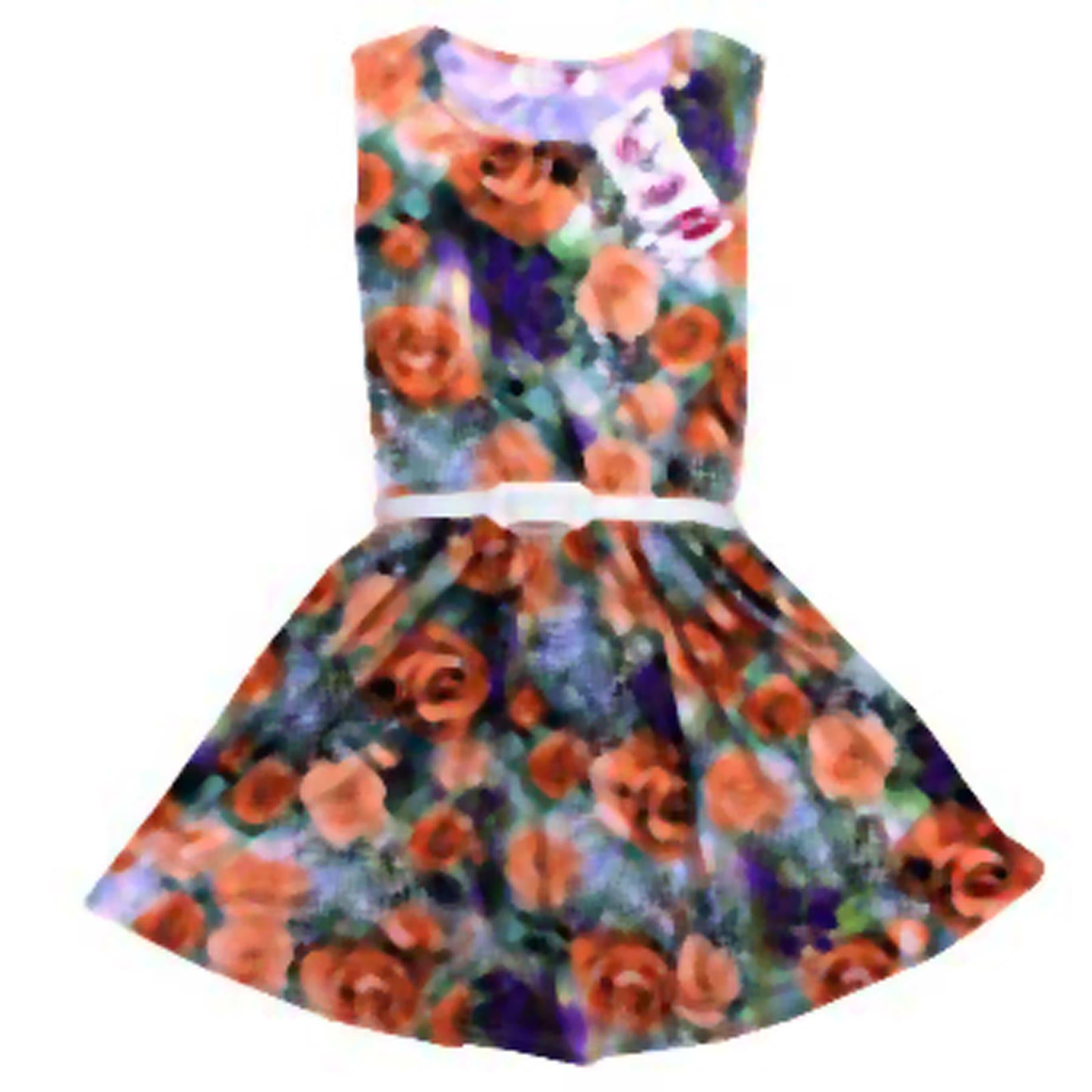 Girls Skater Dress Kids Floral Roses Print Summer Party Dance Dresses 7-13 Years