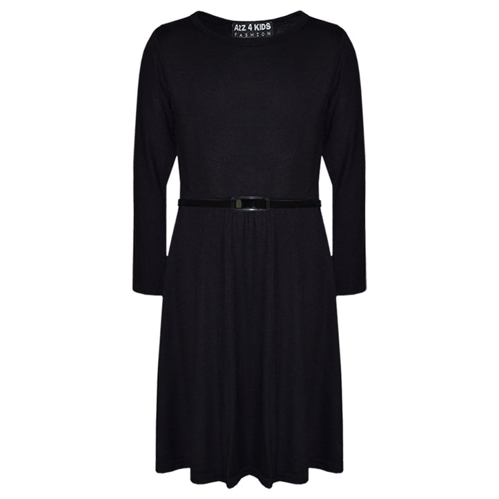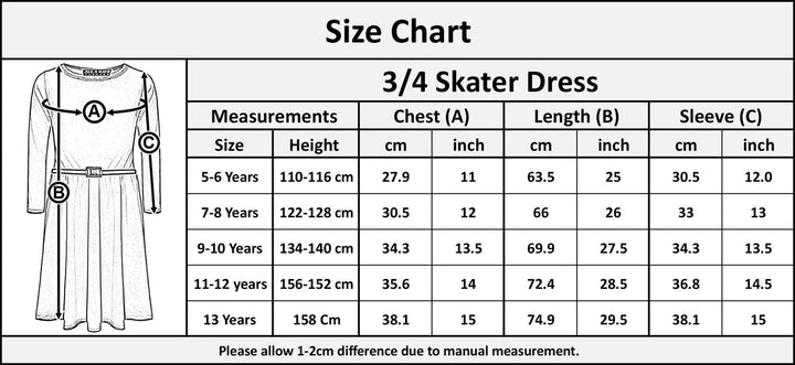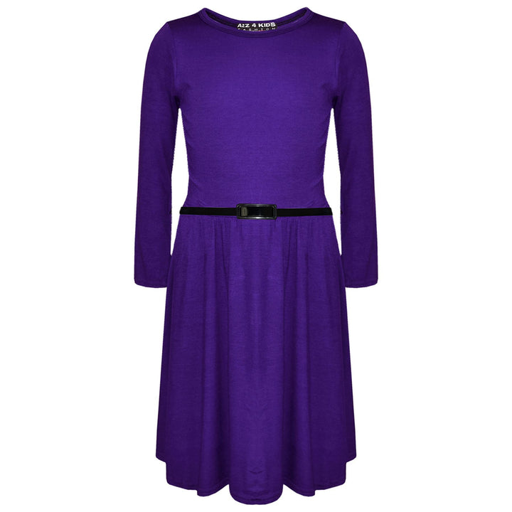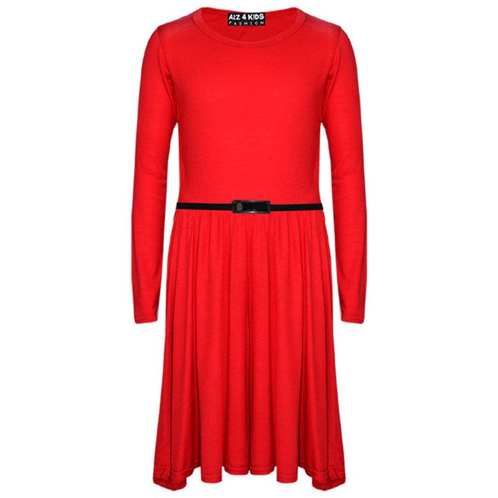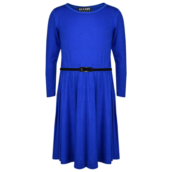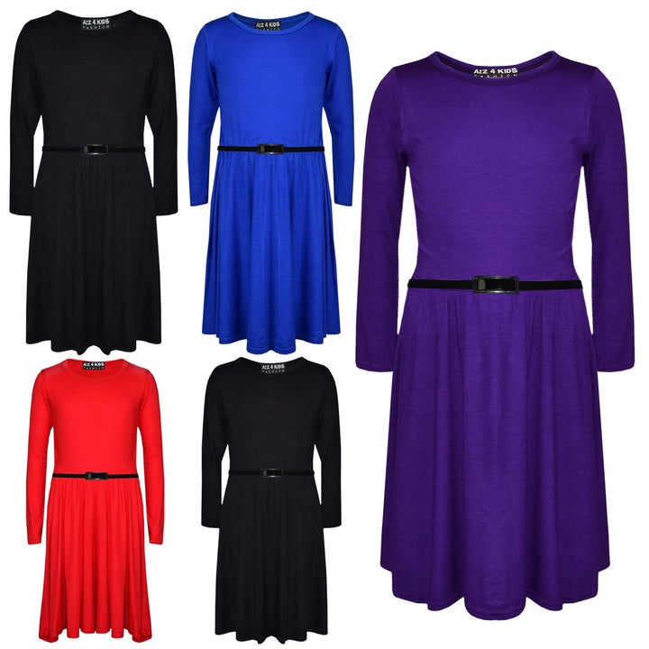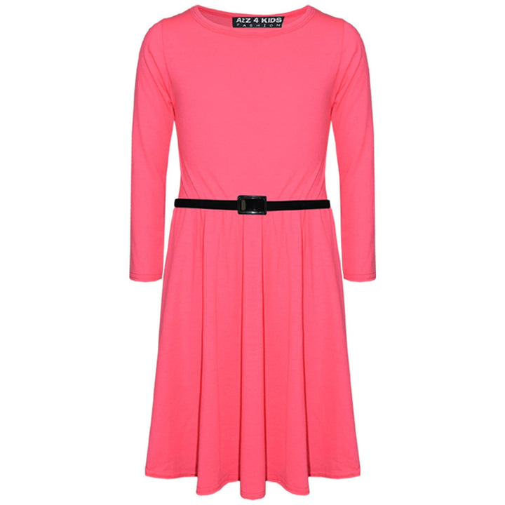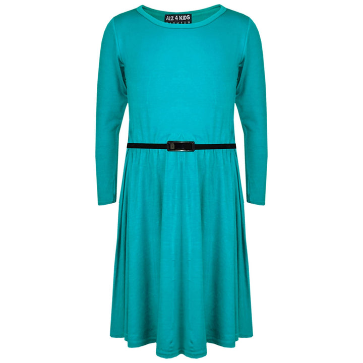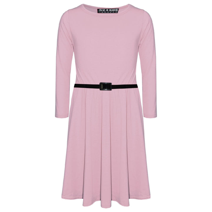 Girls Skater Dress Kids Party Fashion Dresses With Free Belt 3/4 Sleeves 7-13 Yr
