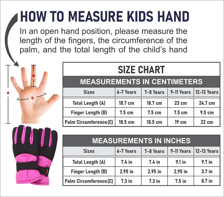 Girls Ski Snowboarding Gloves Kids Windproof Winter Warm Active Mittens 6-13 Yrs