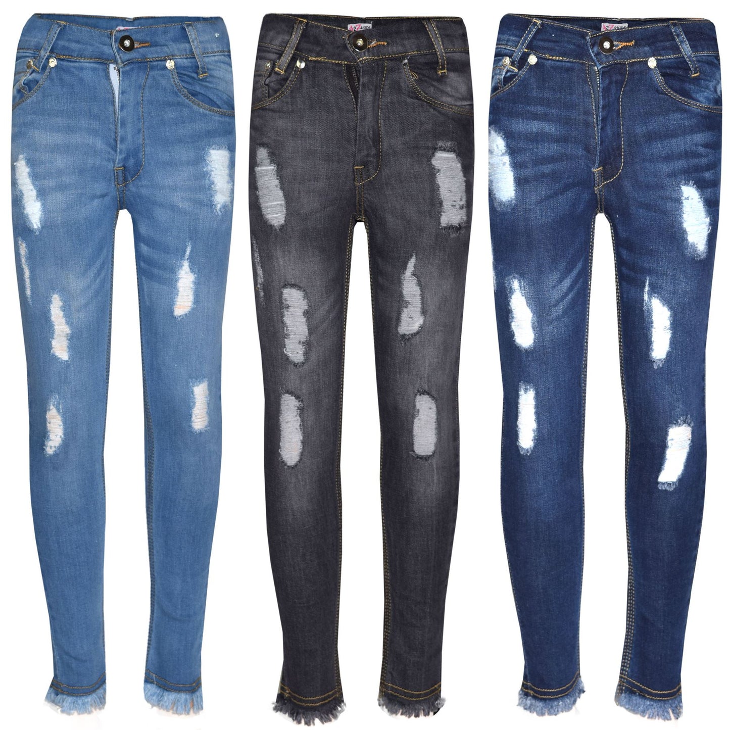 Girls Skinny Jeans Kids Stretchy Denim Ripped Rough Pants Trousers Jeggings 5-13