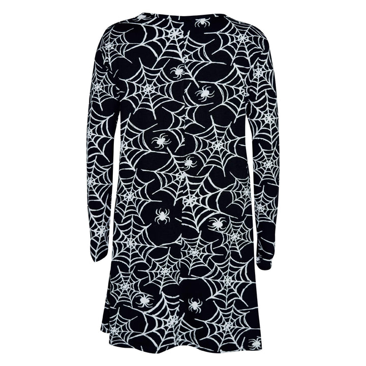 What a great spooky number for Halloween! We bring you this timeless spider web design in the form of swing dress. Great to wear around the home to get yourself into the Halloween spirit, or for trick or treating or a Halloween fancy dress party.