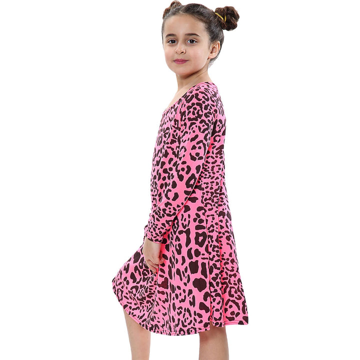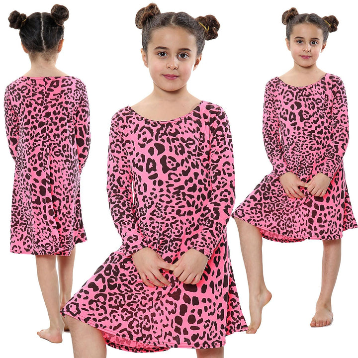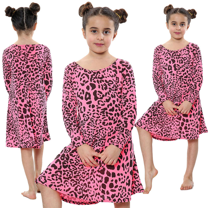Girls Swing Dress Leopard Top Summer Trendy Top Skater Dresses 5-13 Years