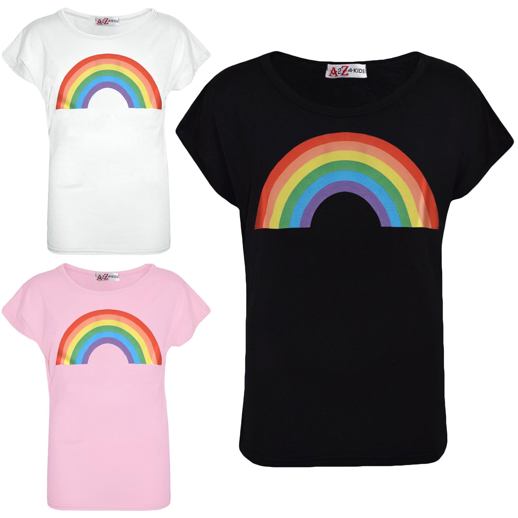 Girls T Shirt Kids Rainbow Print Stylish Round Neck T Shirt Tank Top & Tees 5-13