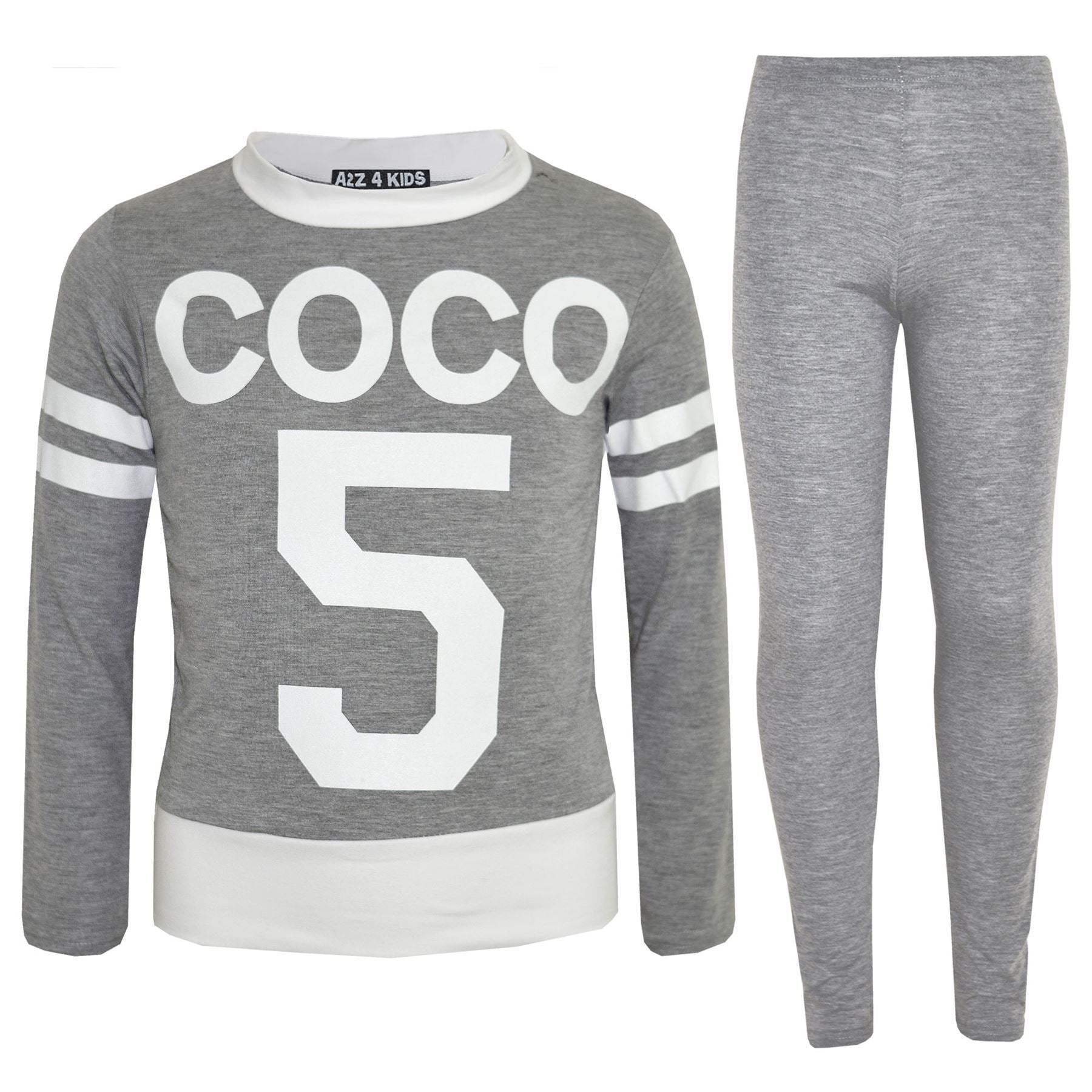 Girls Top Kids COCO 5 Print Trendy Crop Top & Fashion Legging Set Age 7-13 Years