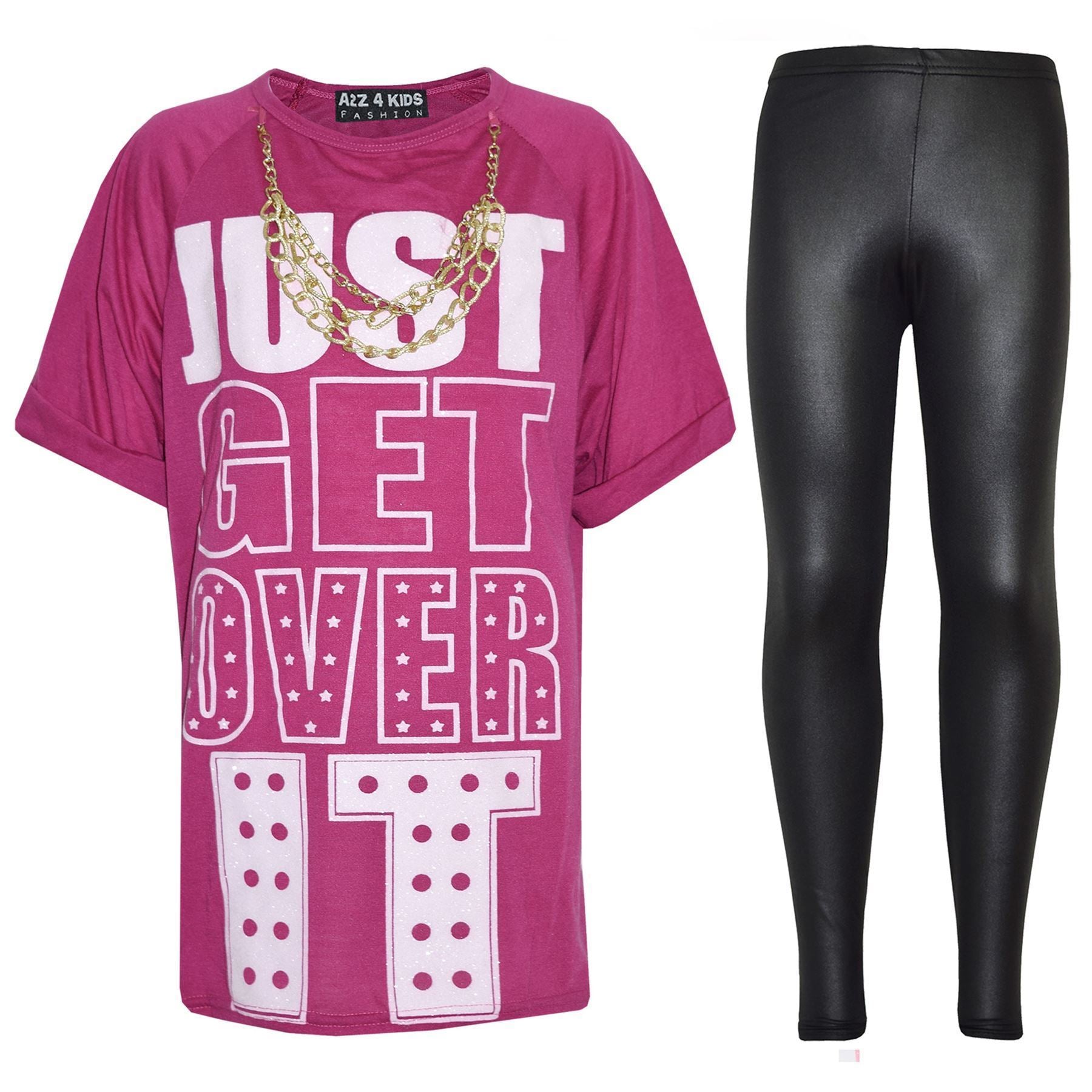 Girls Top Kids Designer's Just Get Over It T Shirt & Fashion Legging Set 7-13 Yr