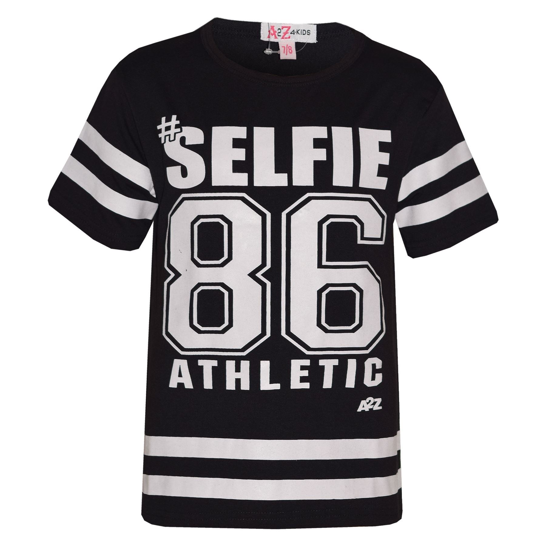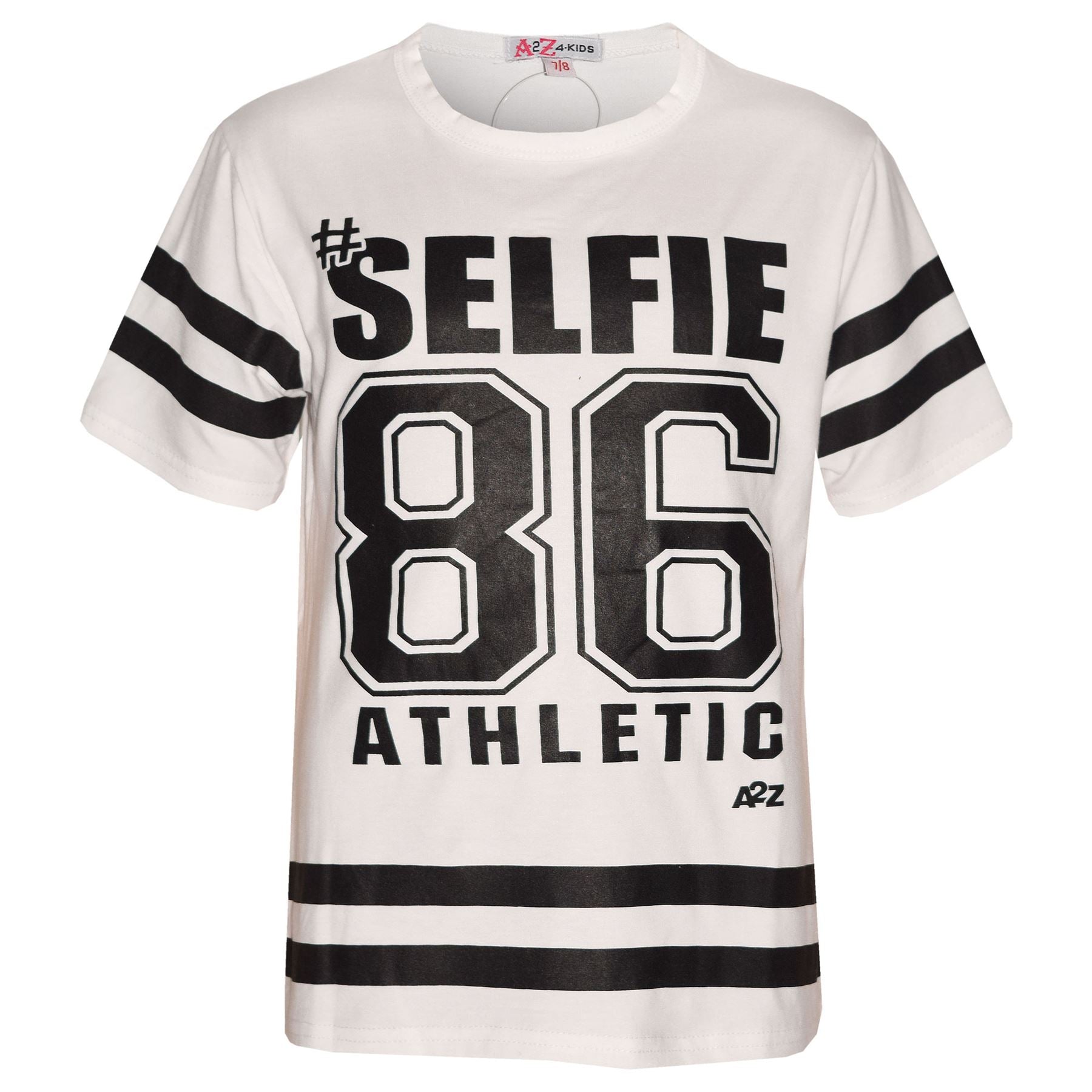Girls Top Kids Designer's #Selfie 86 Athletic Print Fashion T Shirt Top 7-13 Yr