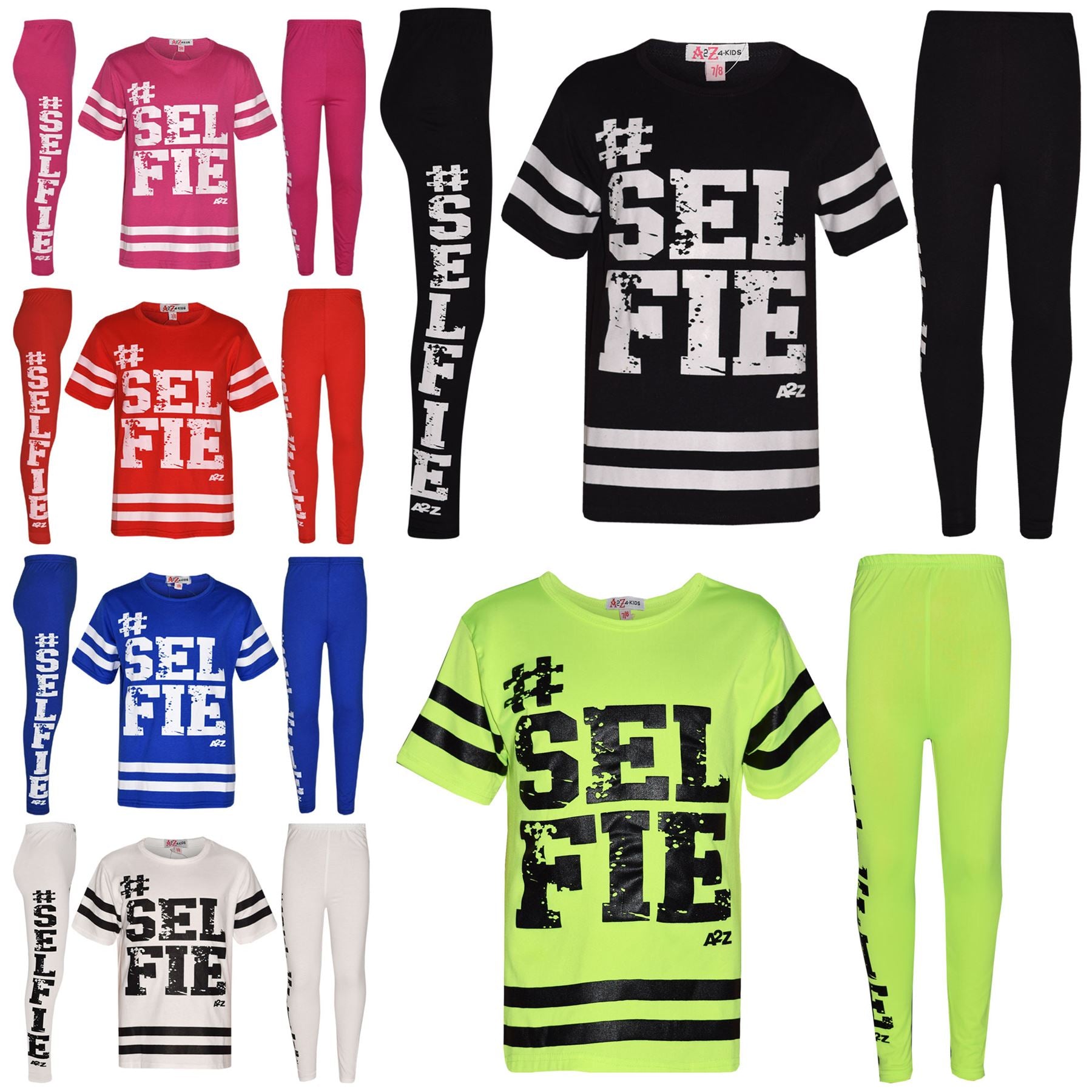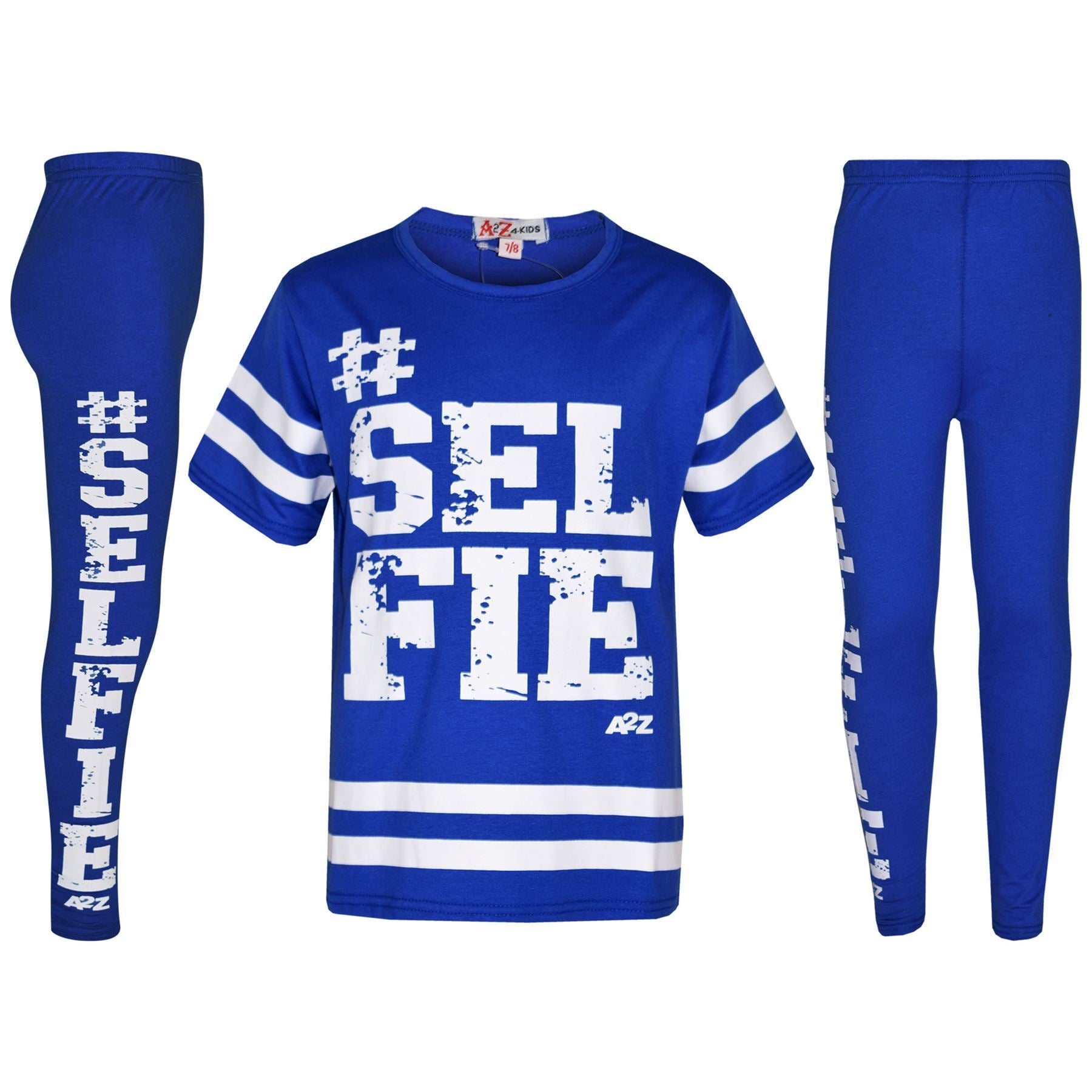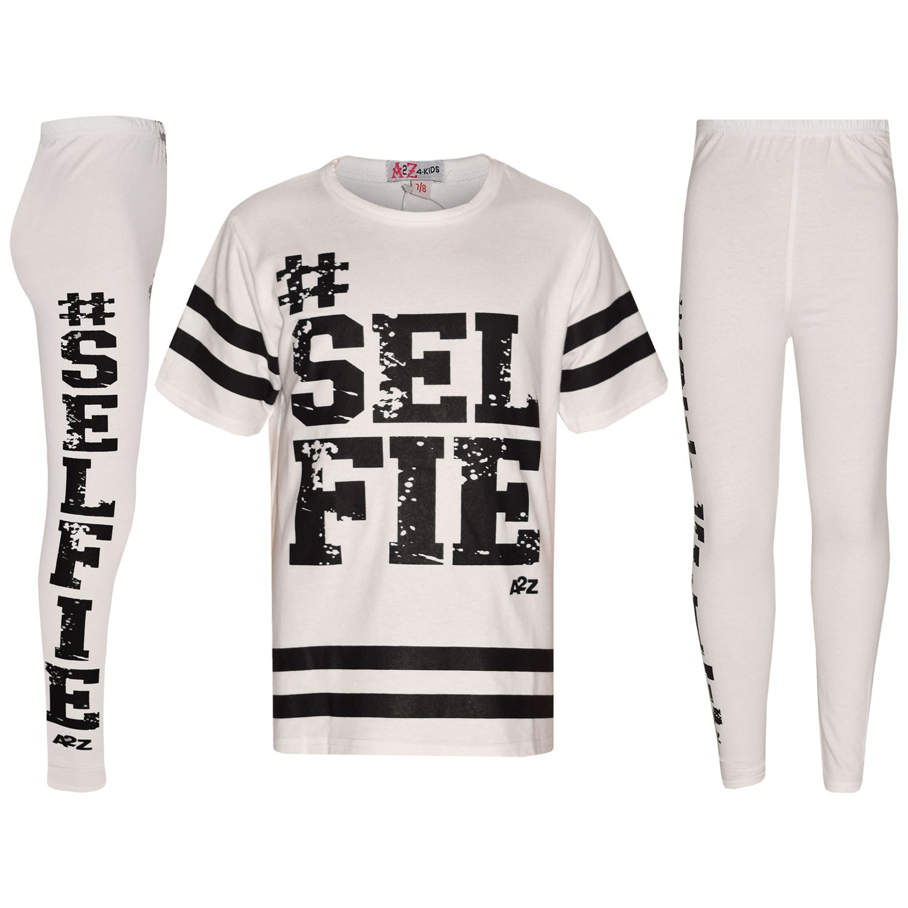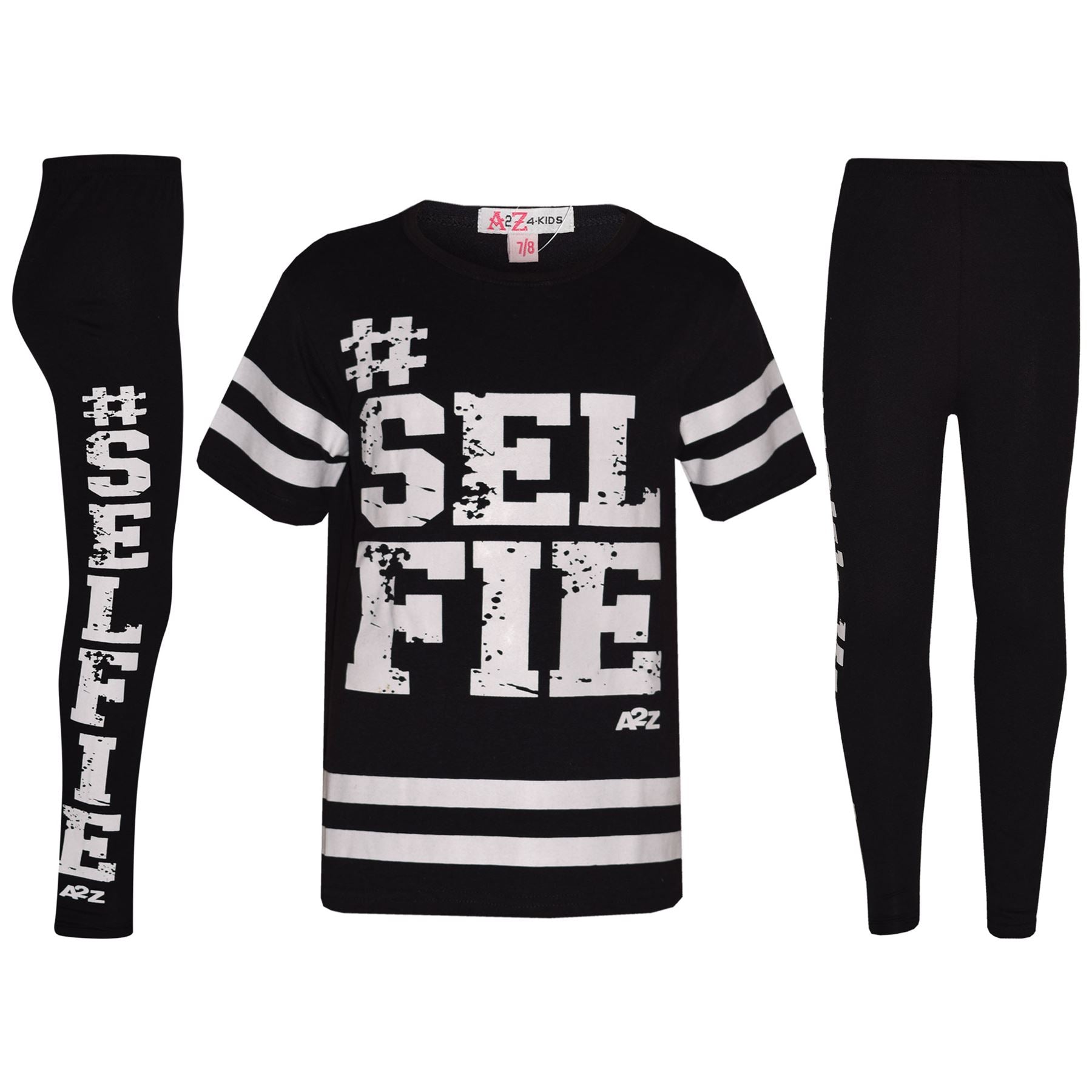 Girls Top Kids Designer's #Selfie Fashion T Shirt Top & Legging Set 7-13 Years