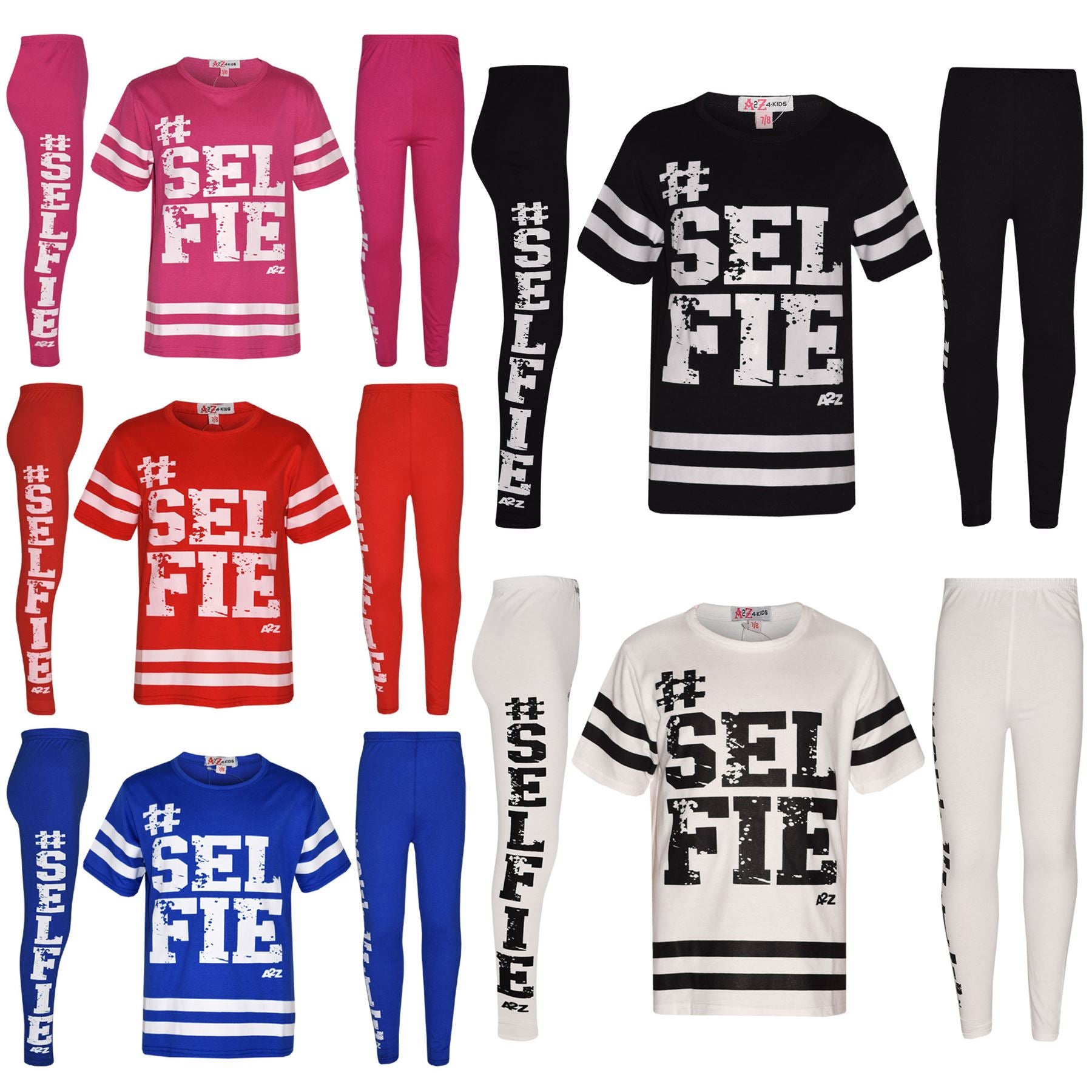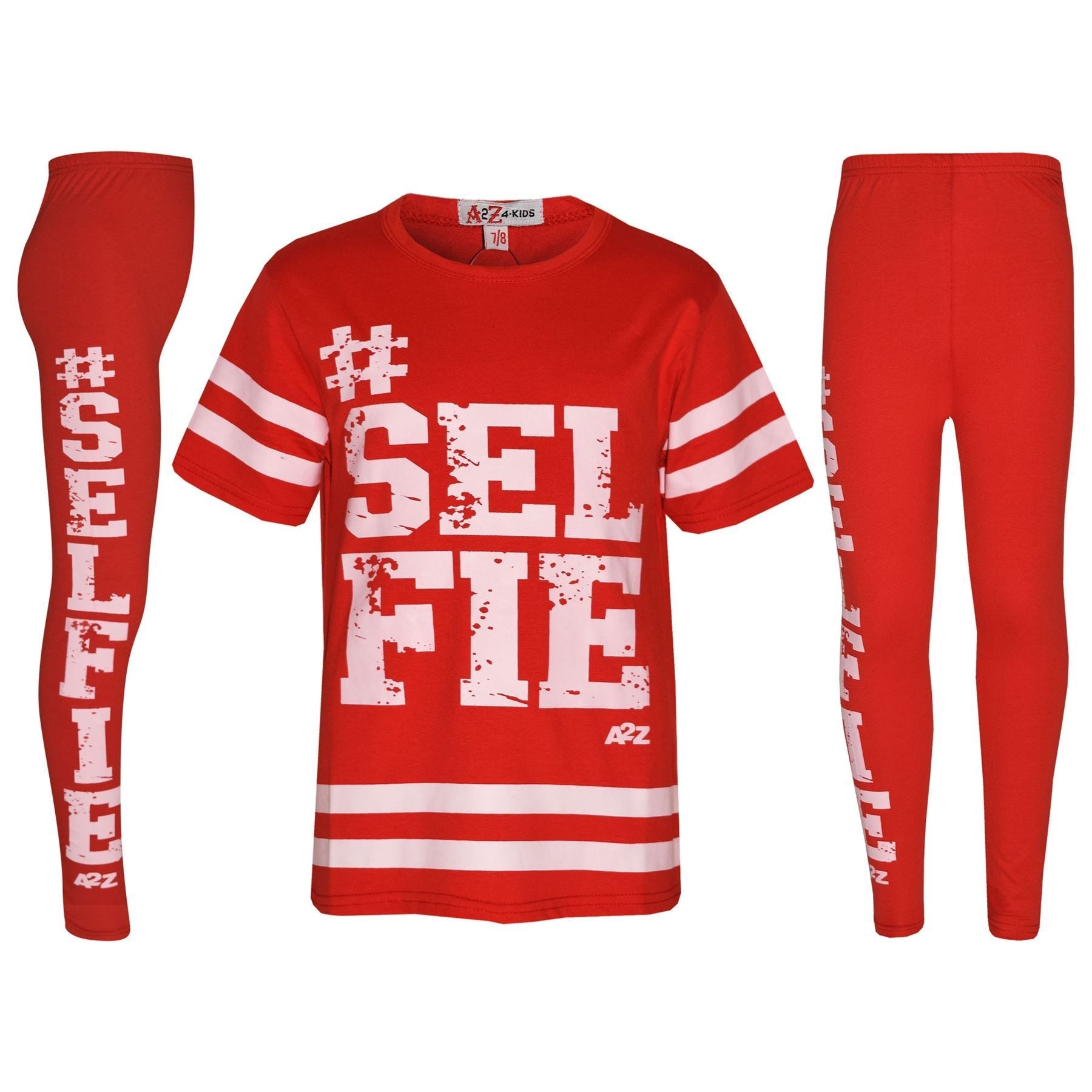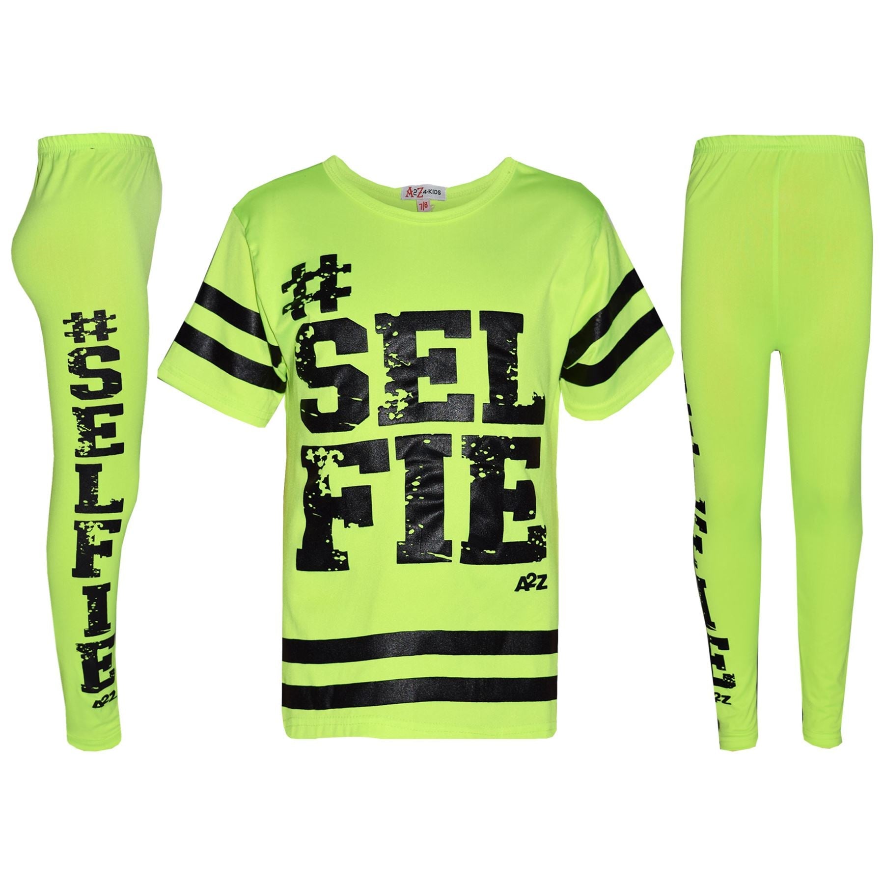 Girls Top Kids Designer's #Selfie Fashion T Shirt Top & Legging Set 7-13 Years