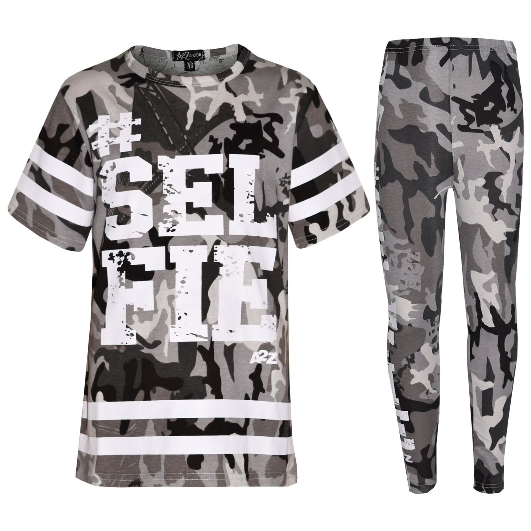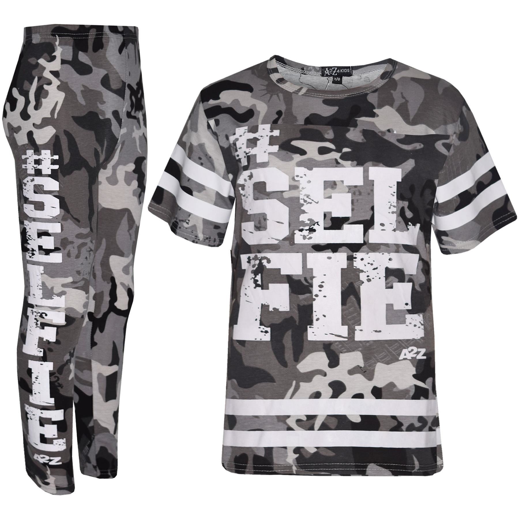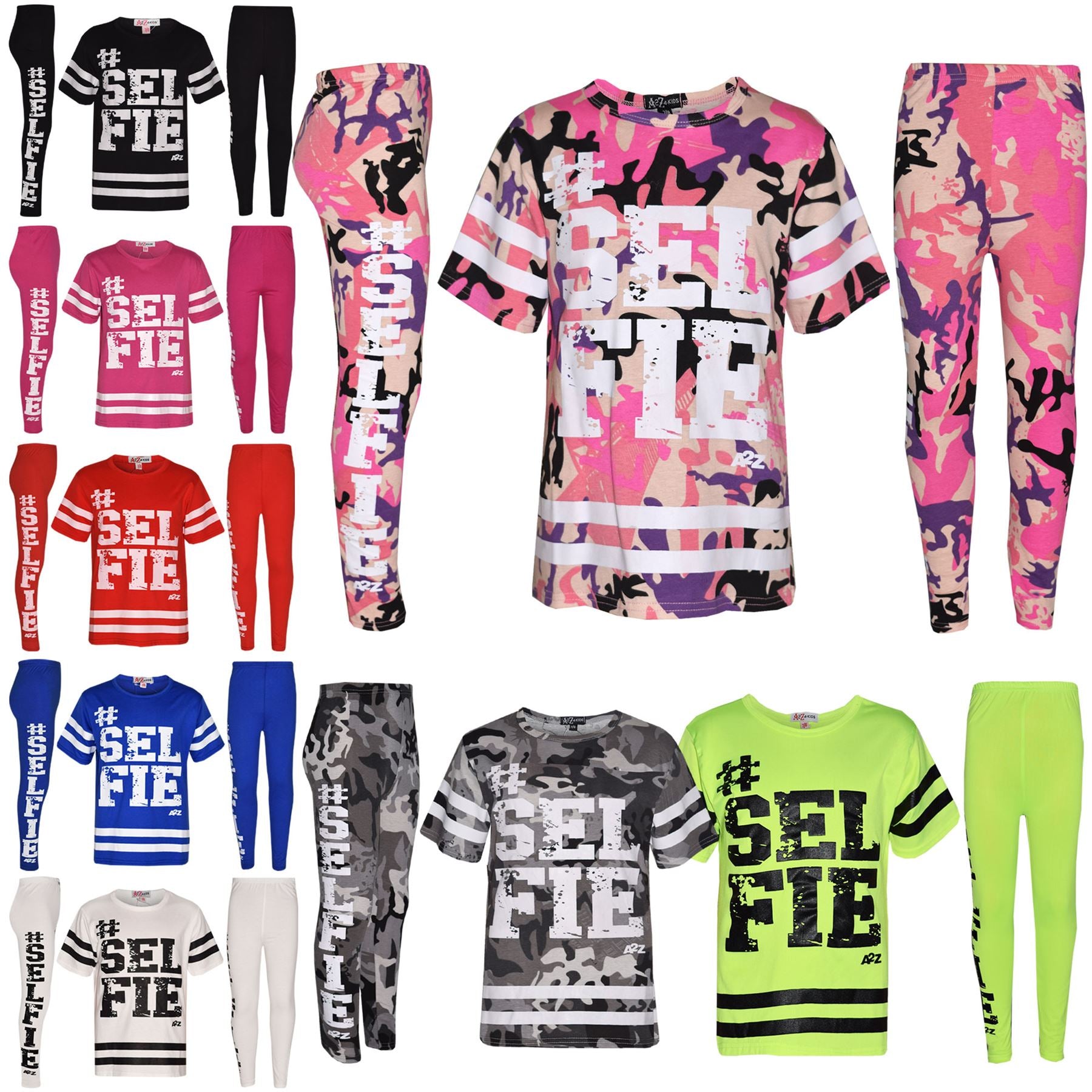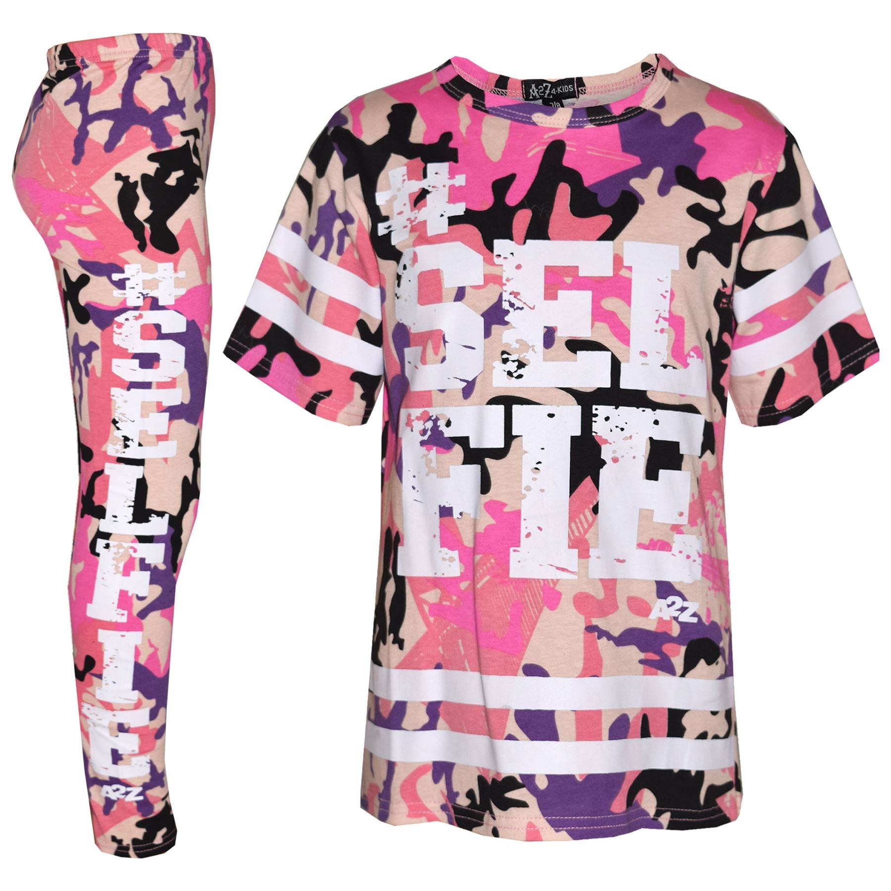 Girls Top Kids Designer's #Selfie Fashion T Shirt Top & Legging Set 7-13 Years