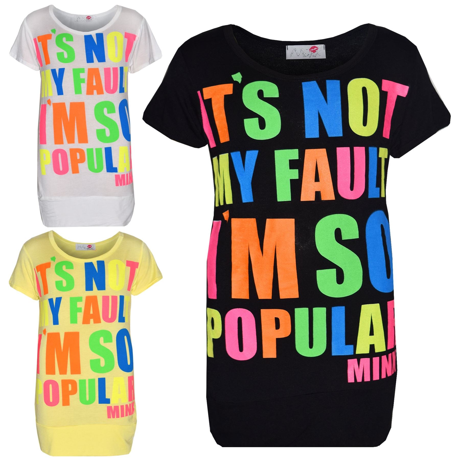 Girls Top Kids It's Not My Fault I Am So Popular Print T Shirt Tops 7-13 Years