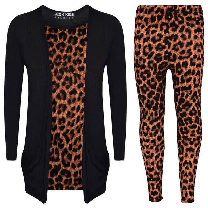Girls Top Kids Leopard Print Stylish Cardigan & Fashion Legging Set 7-13 Years