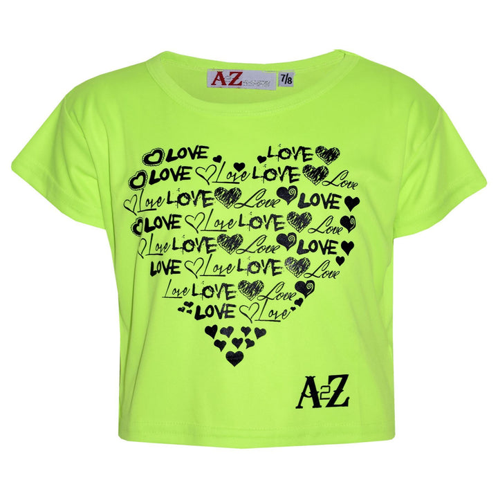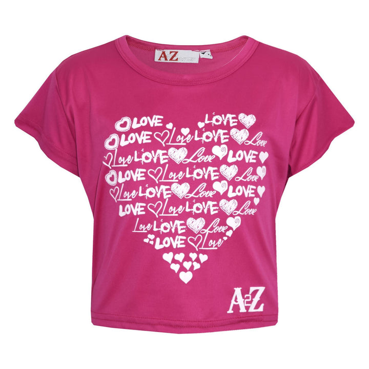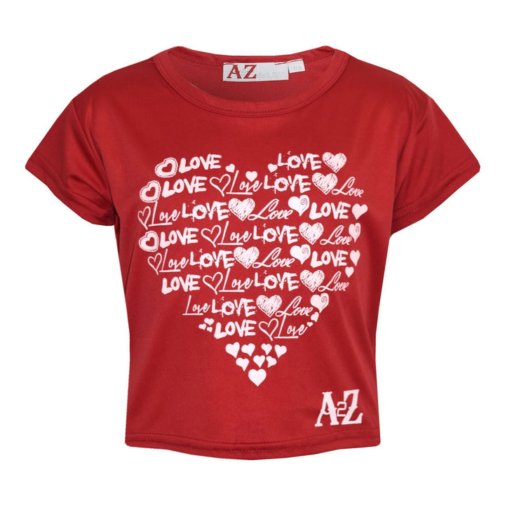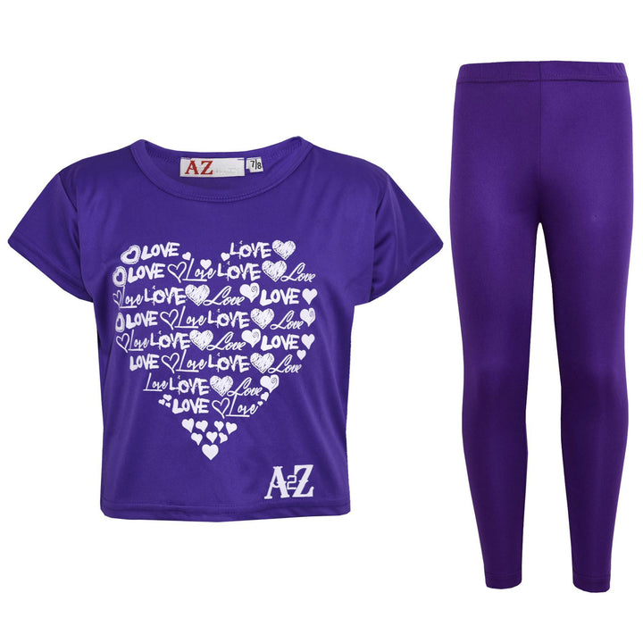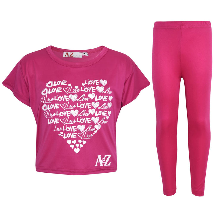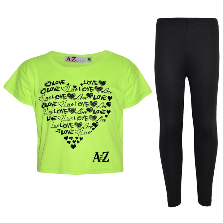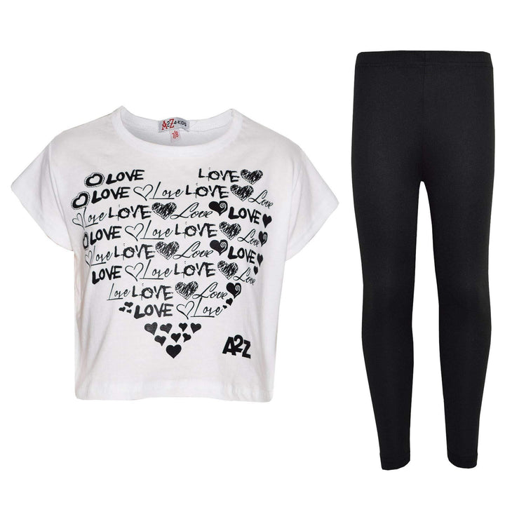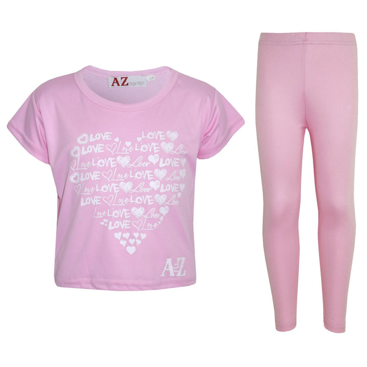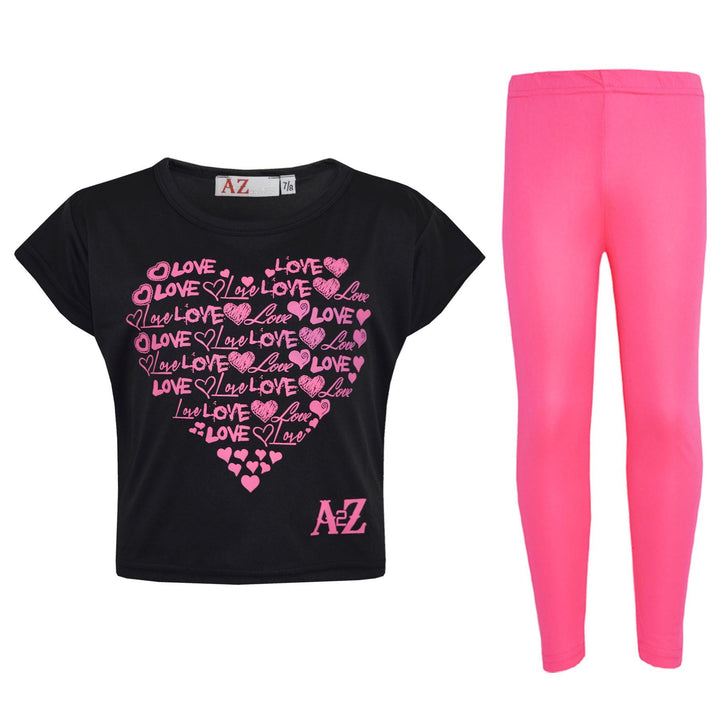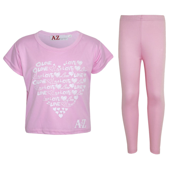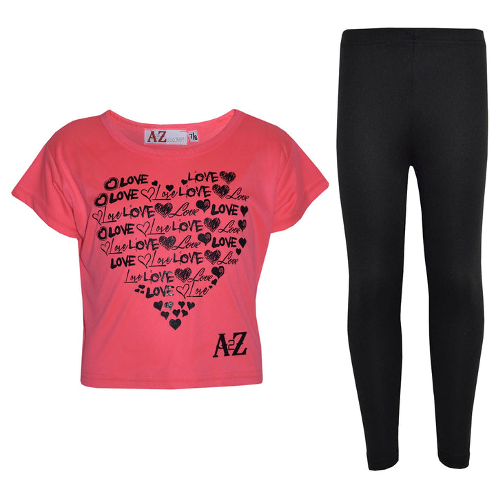 Girls Top Kids Love Print Stylish Crop Top & Fashion Legging Set Age 7-13 Years