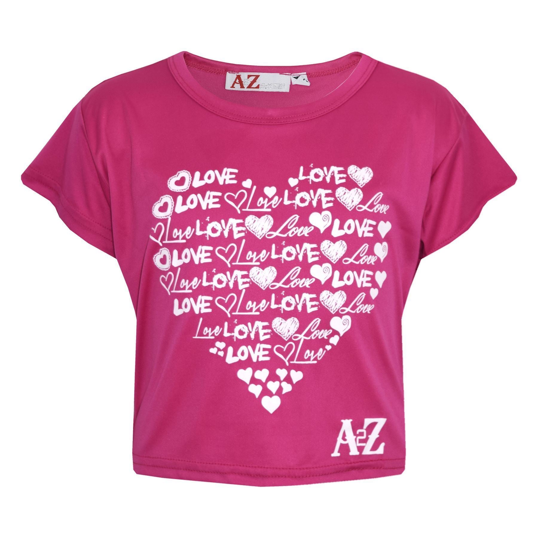 Girls Top Kids Love Print Stylish Fahsion Trendy T Shirt Crop Top Age 5-13 Years