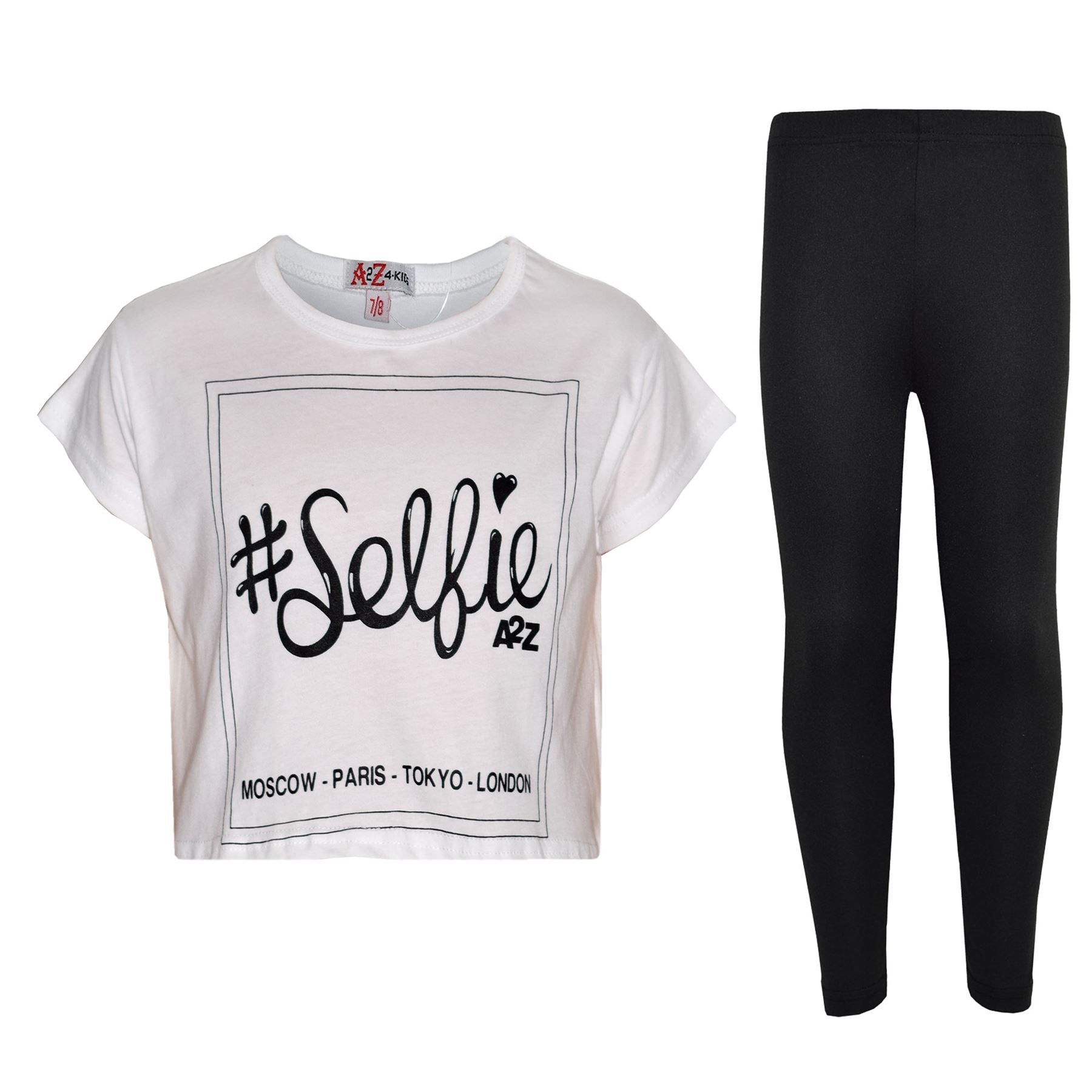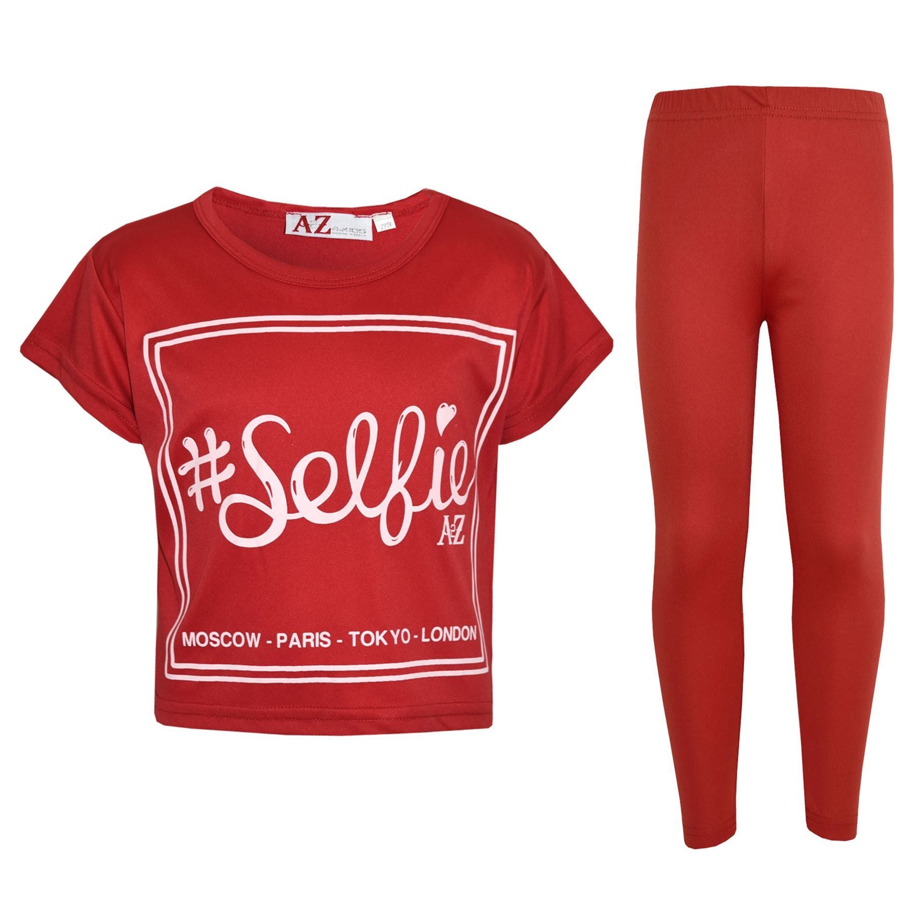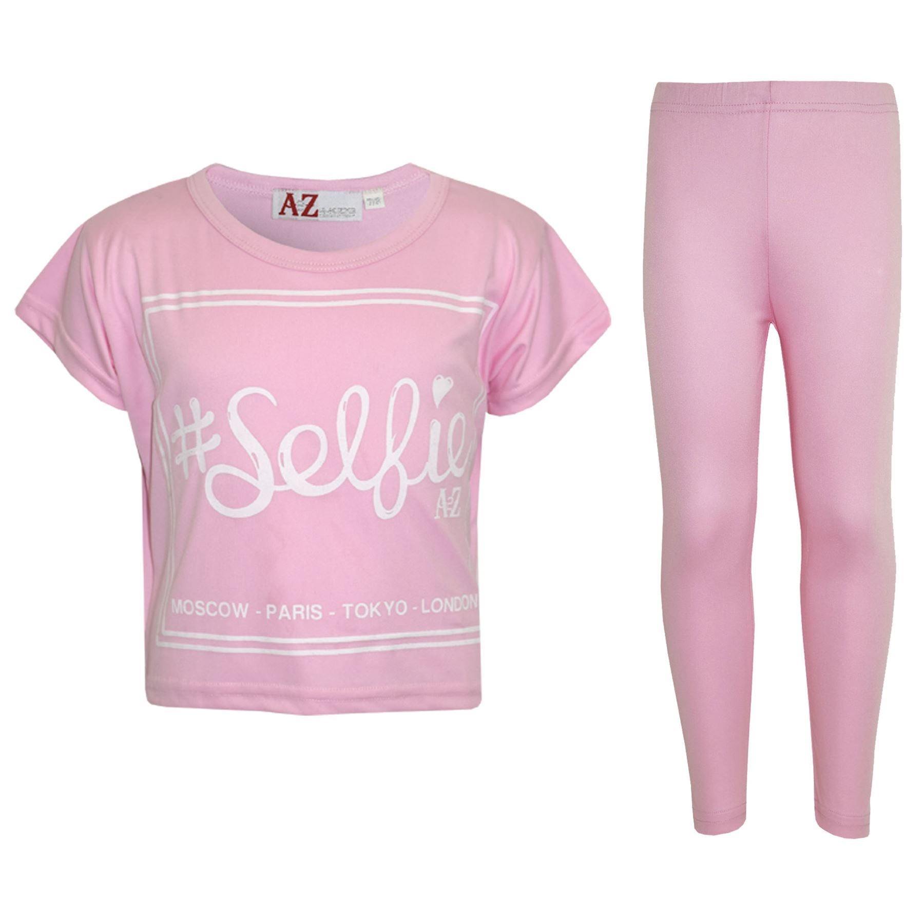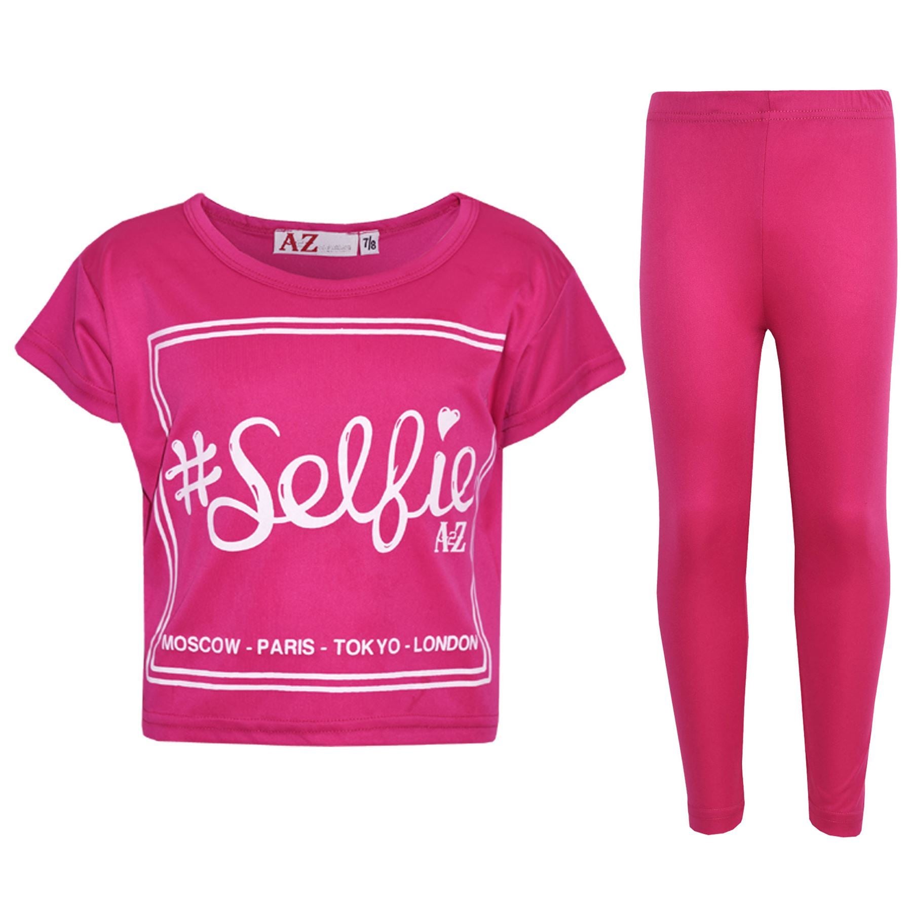Girls Top Kids #Selfie Print Stylish Crop Top & Fashion Legging Set 7-13
