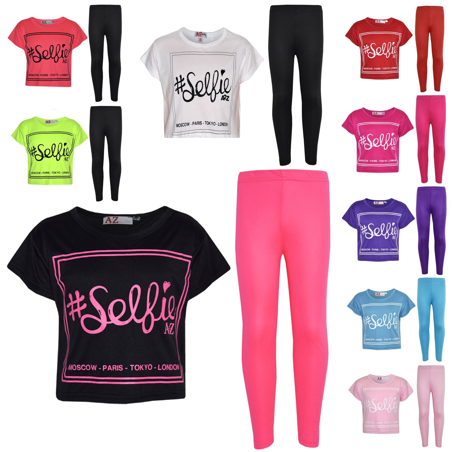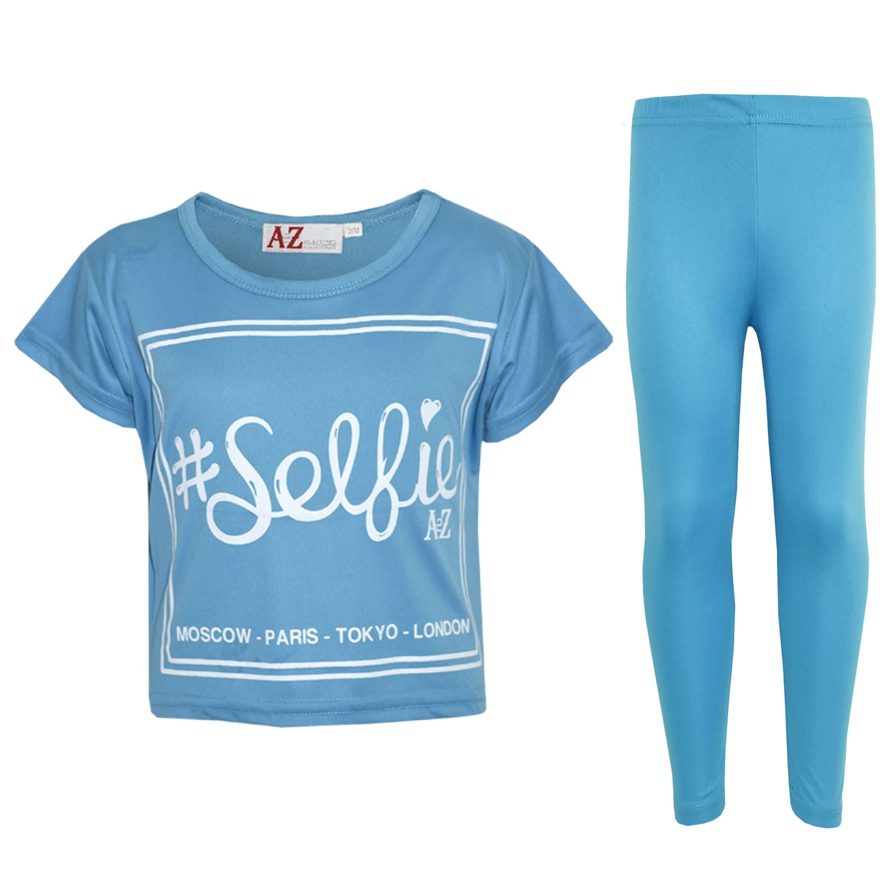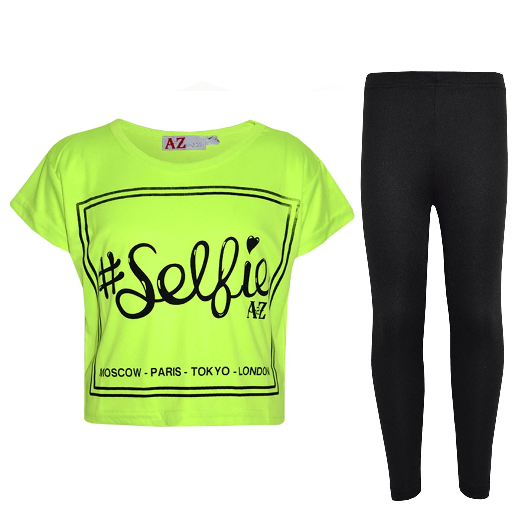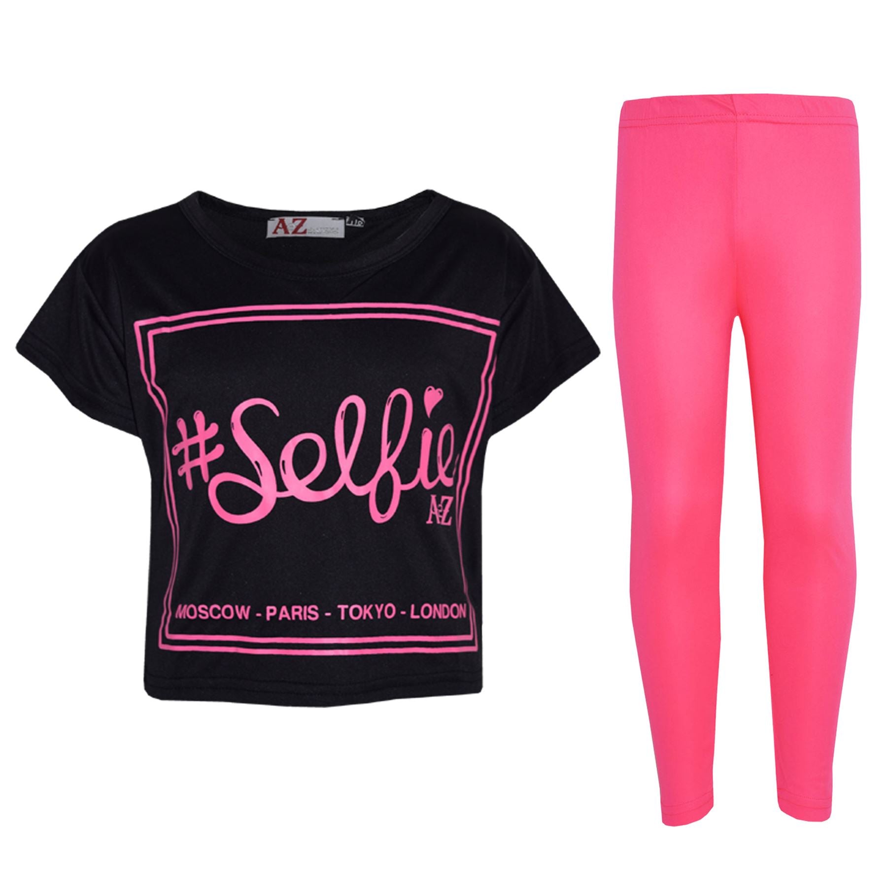 Girls Top Kids #Selfie Print Stylish Crop Top & Fashion Legging Set 7-13