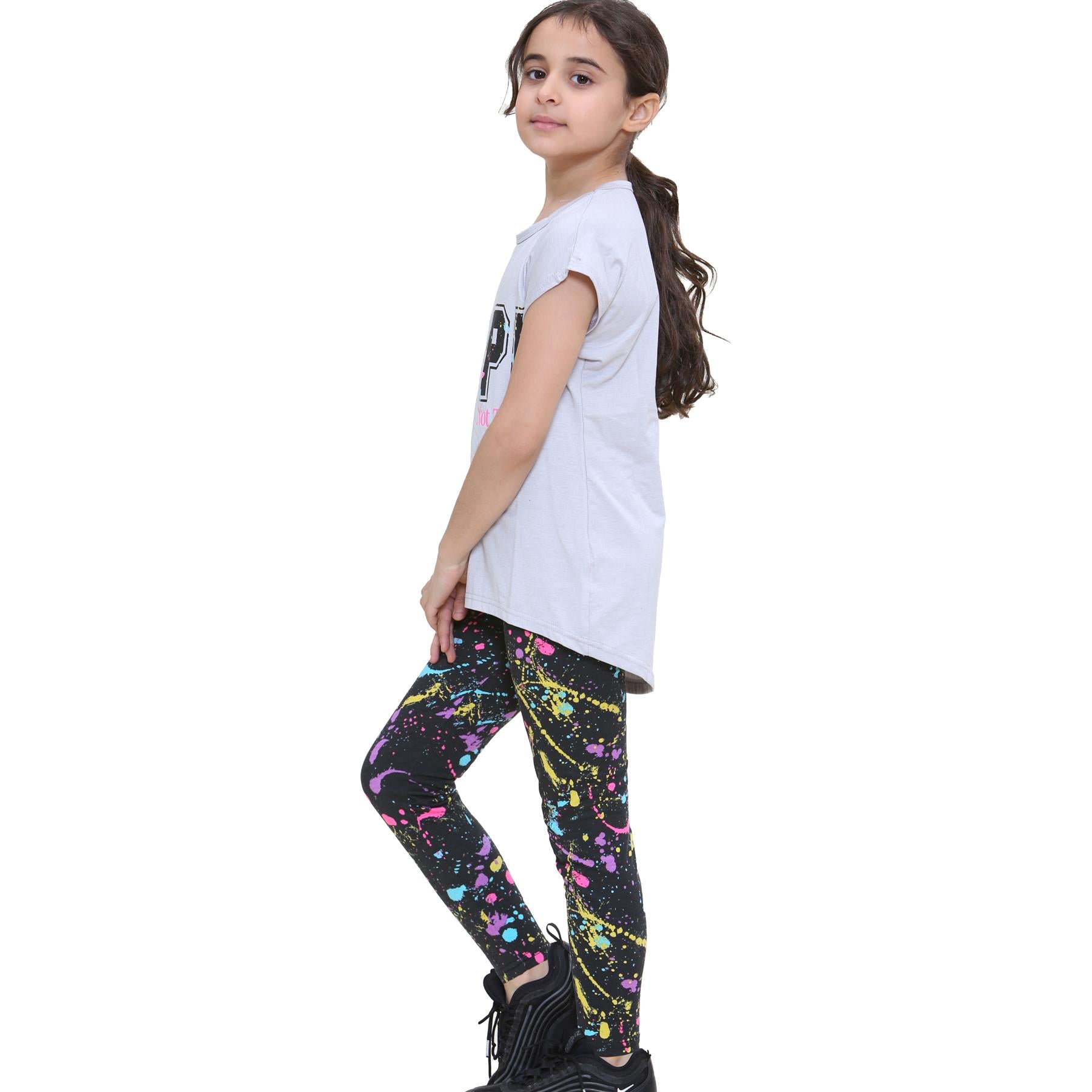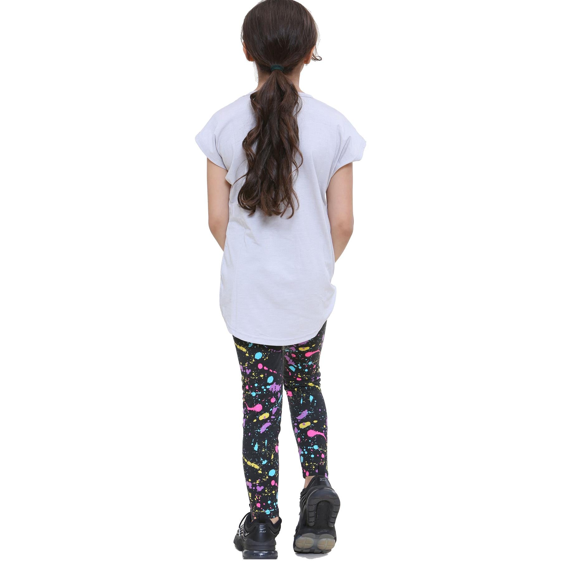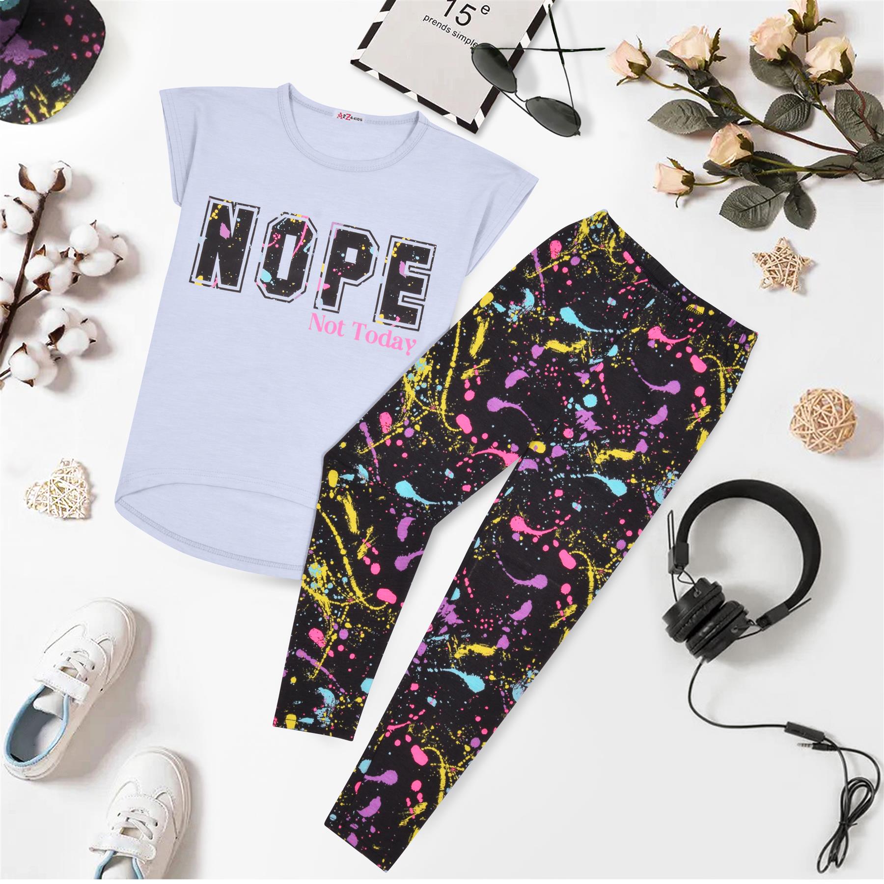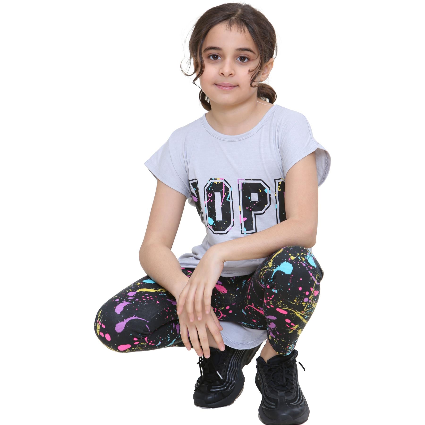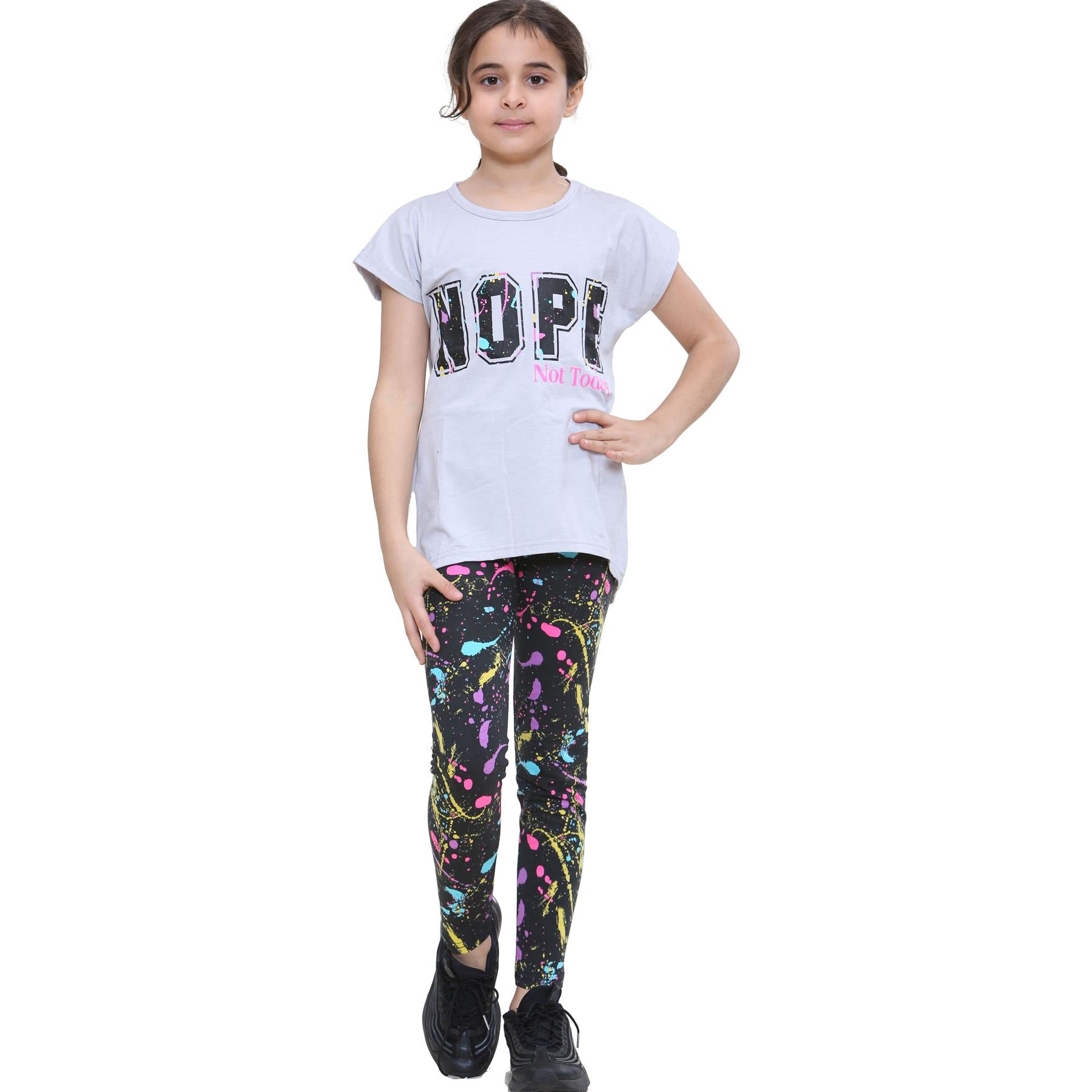 Girls Top Kids Short sleeves Nope Print Splash Tank Top T Shirt & Legging Set