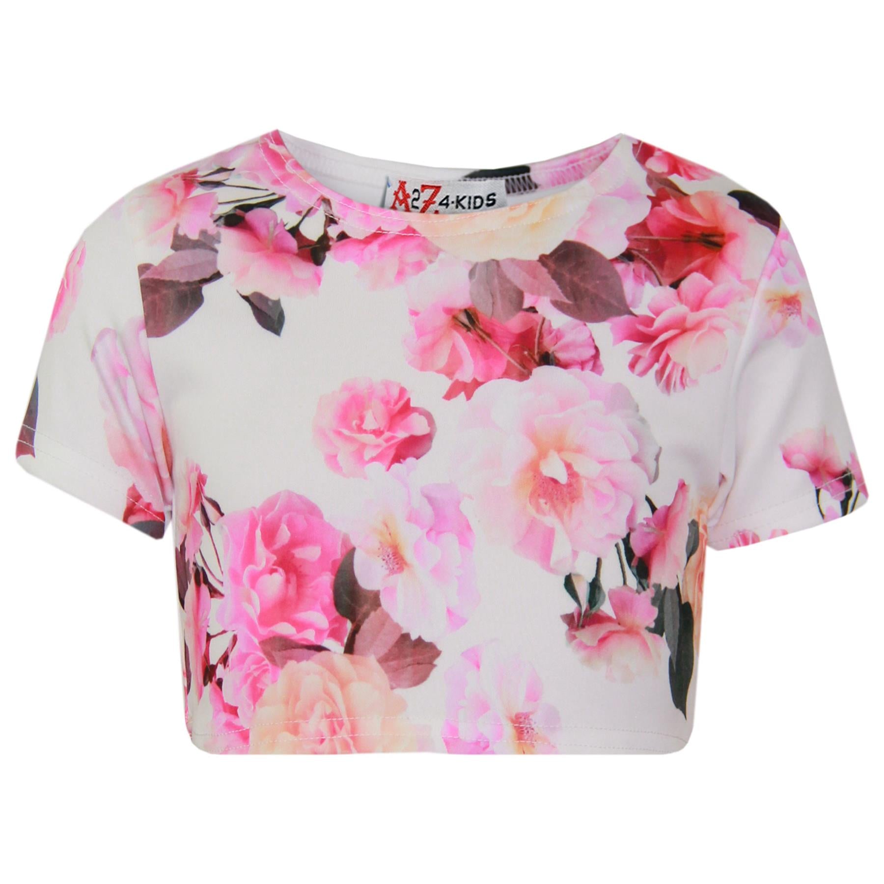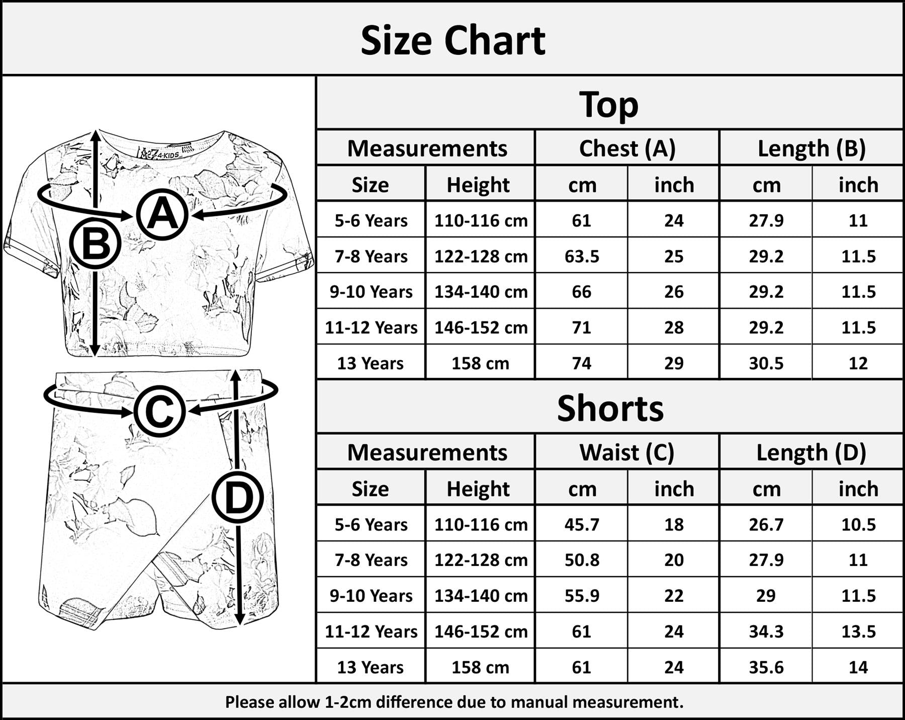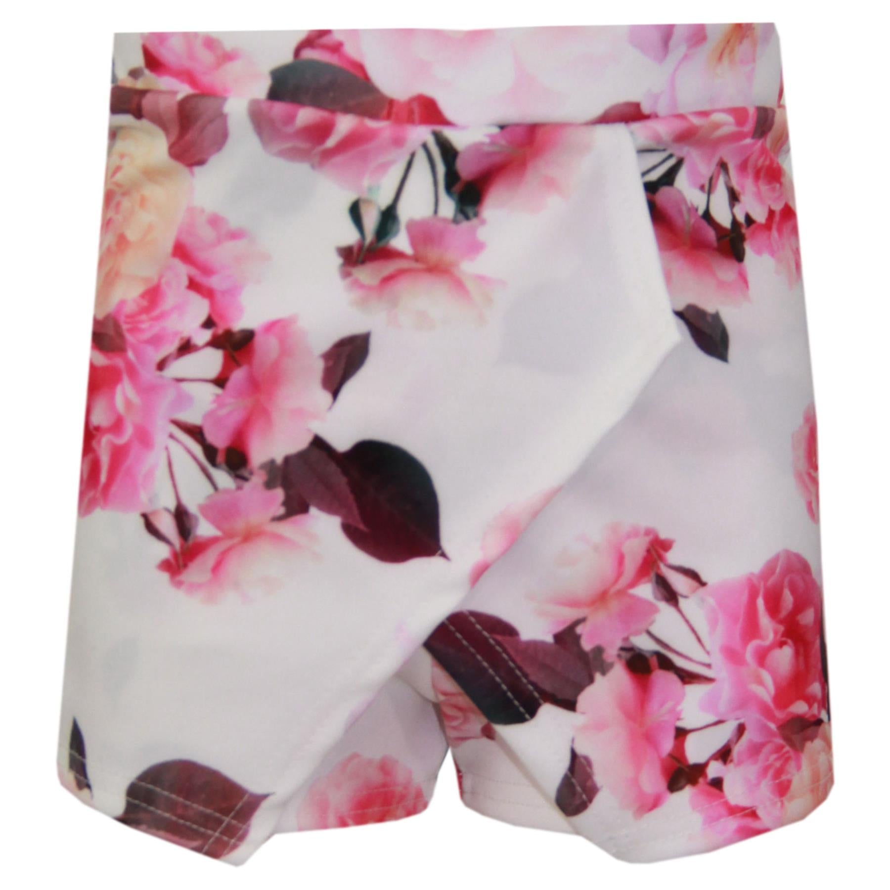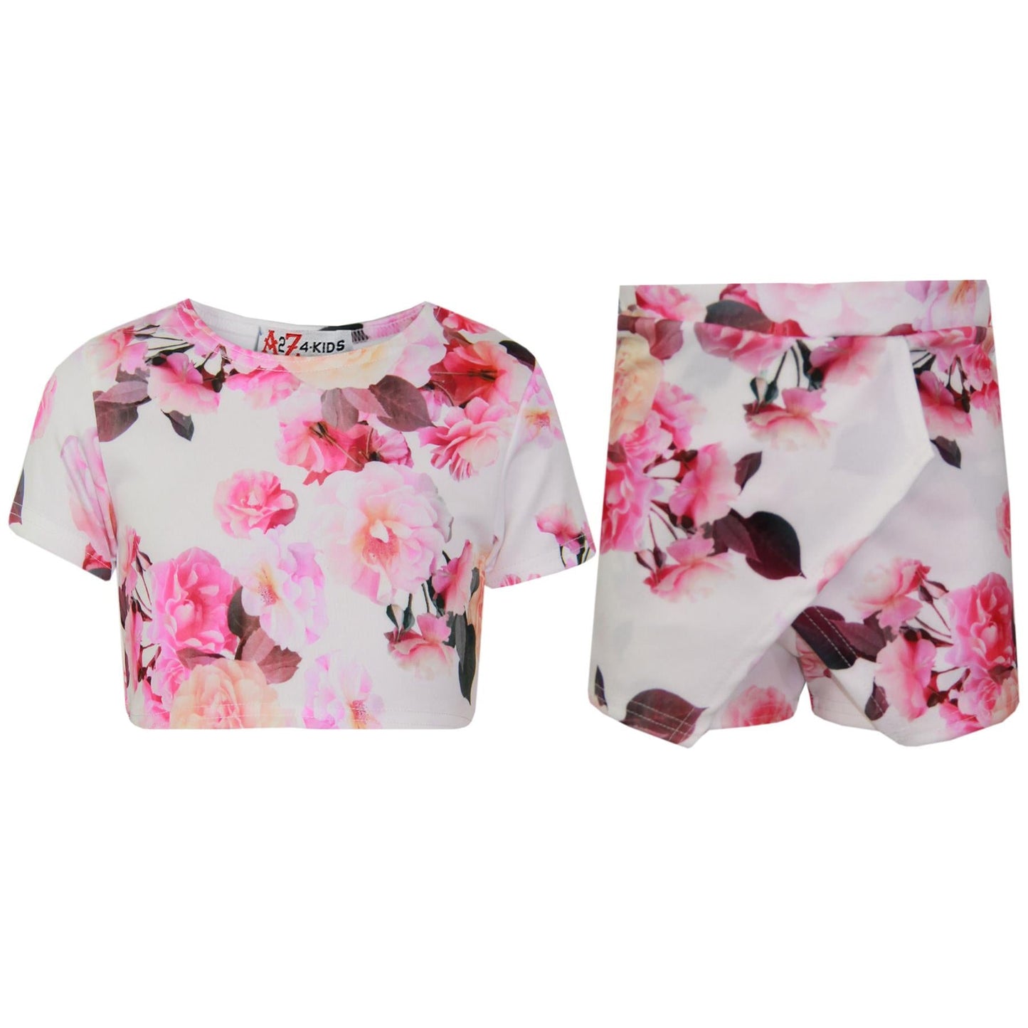 Girls Tops Flowers Print Crop Top & Skort Skirt Shorts 2 Piece Summer Outfit Set