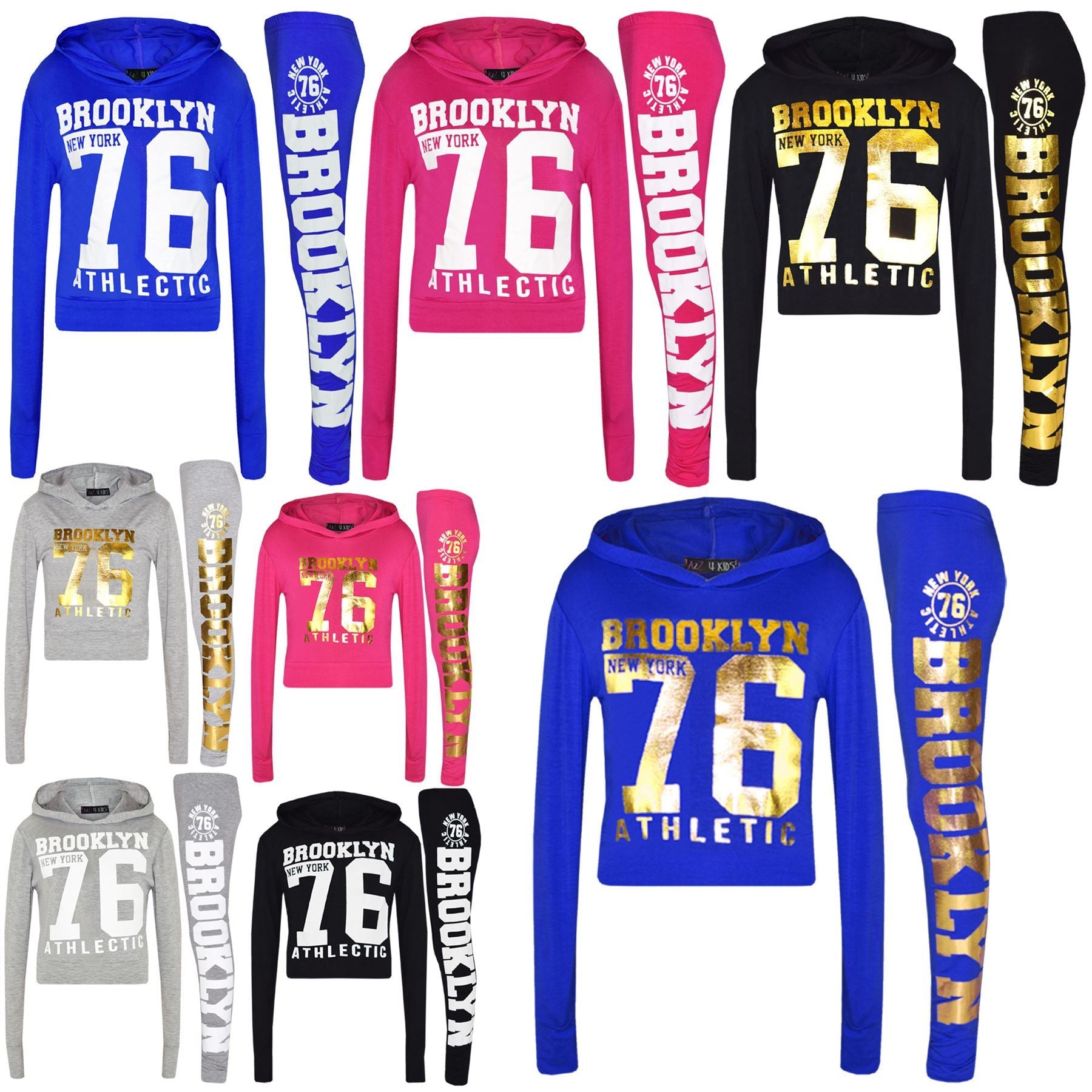 Girls Tops Kids Brooklyn 76 Hooded Crop Top & Legging Lounge Wear Set 7-13 Years