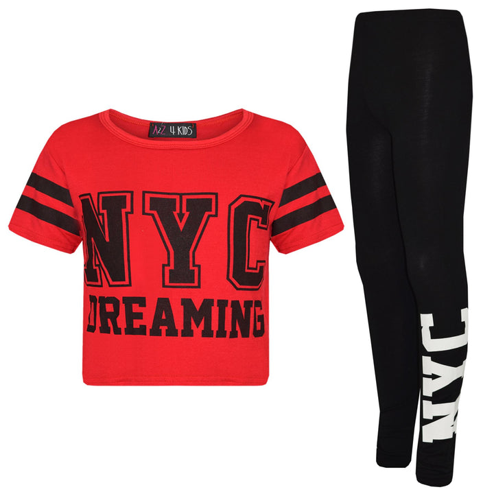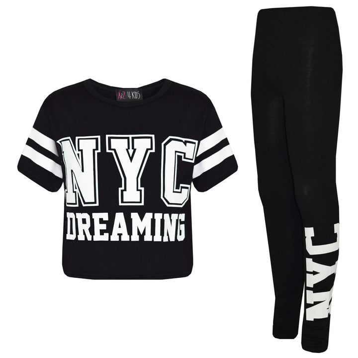 Girls Tops Kids Designer NYC Dreaming Trendy Crop & Fashion Legging Set 7-13 Yrs
