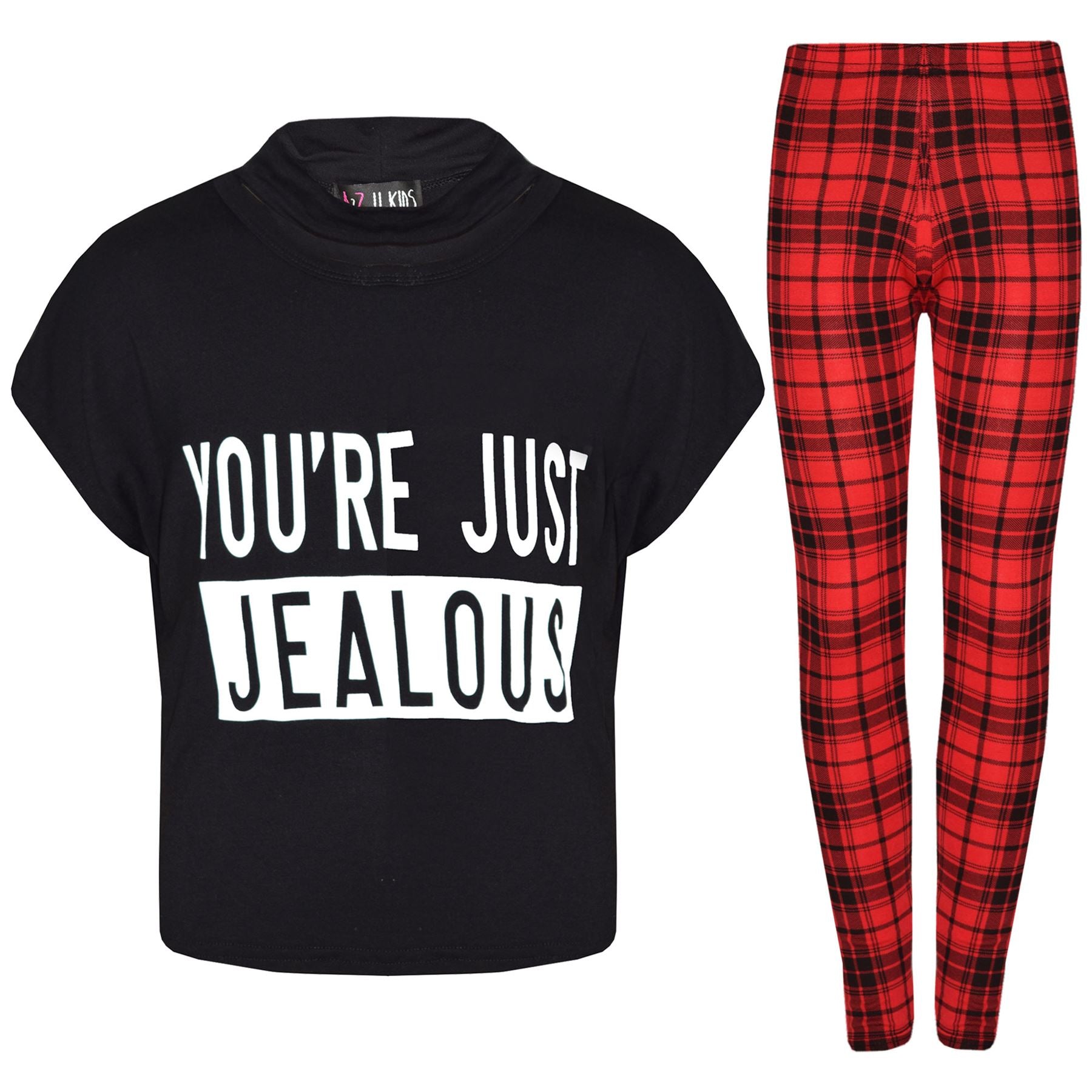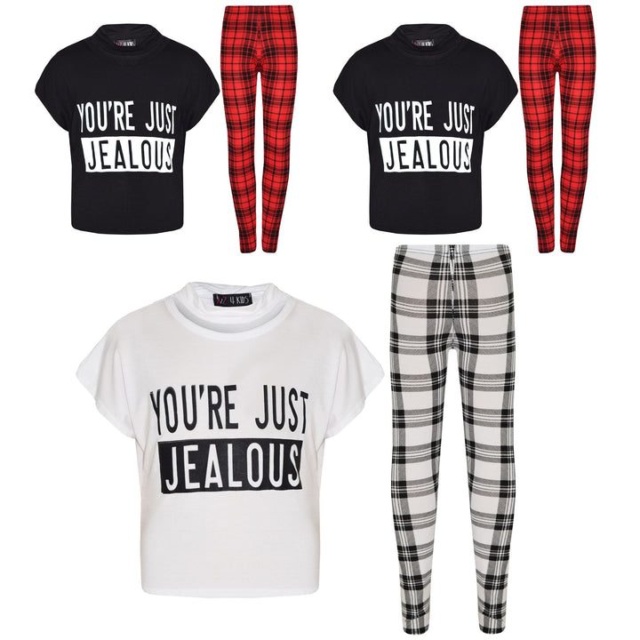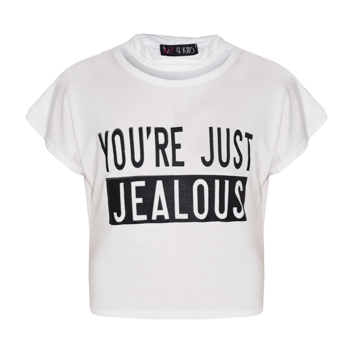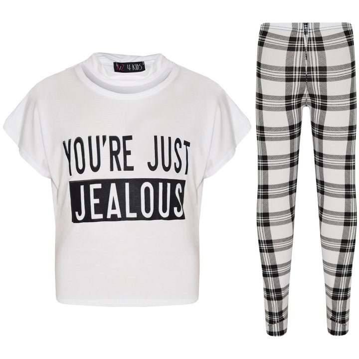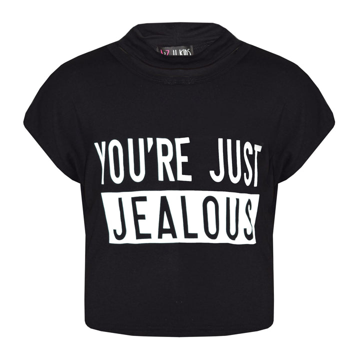 Girls Tops Kids Designer You 're Just Jealous Print Crop Top & Legging Set 7-13Y