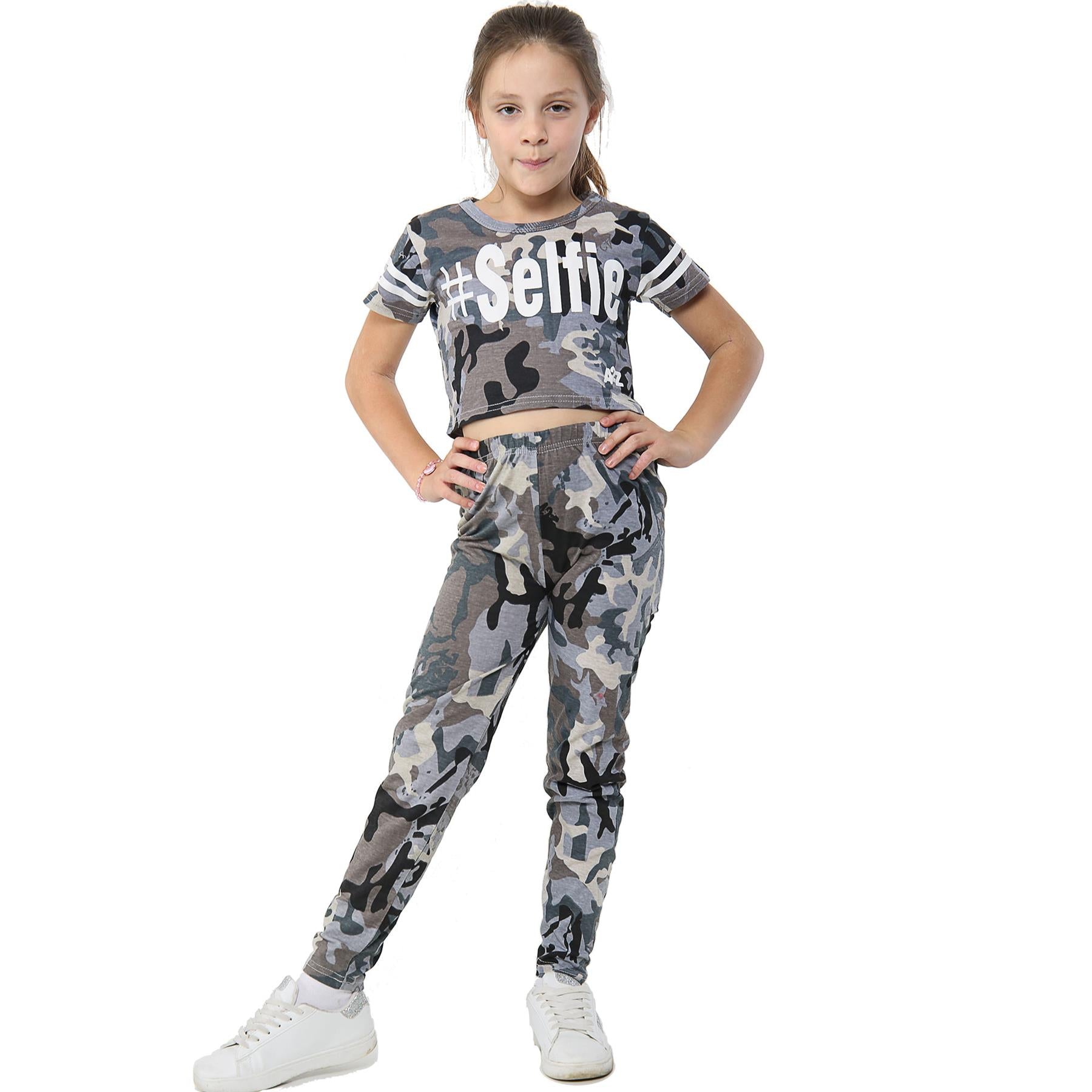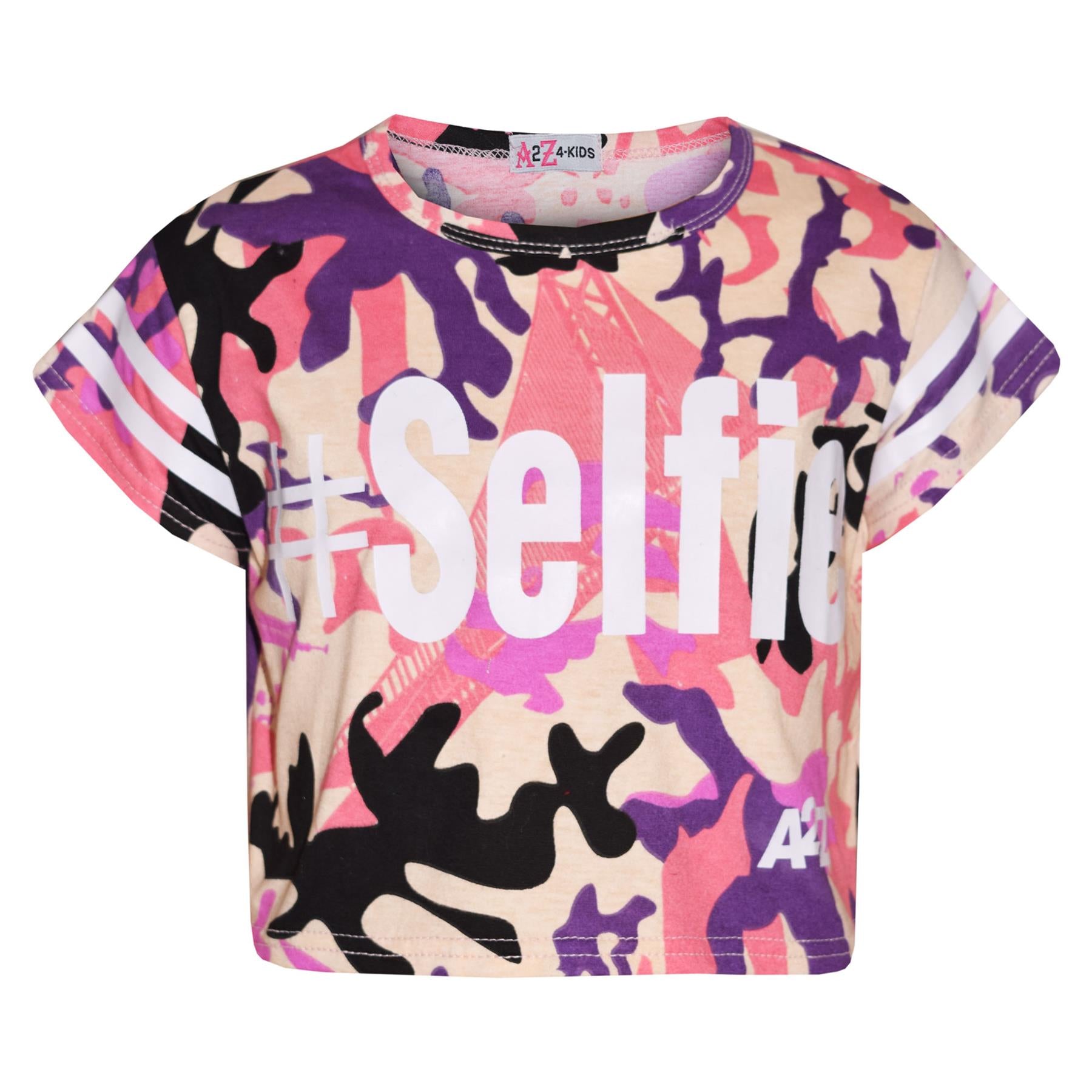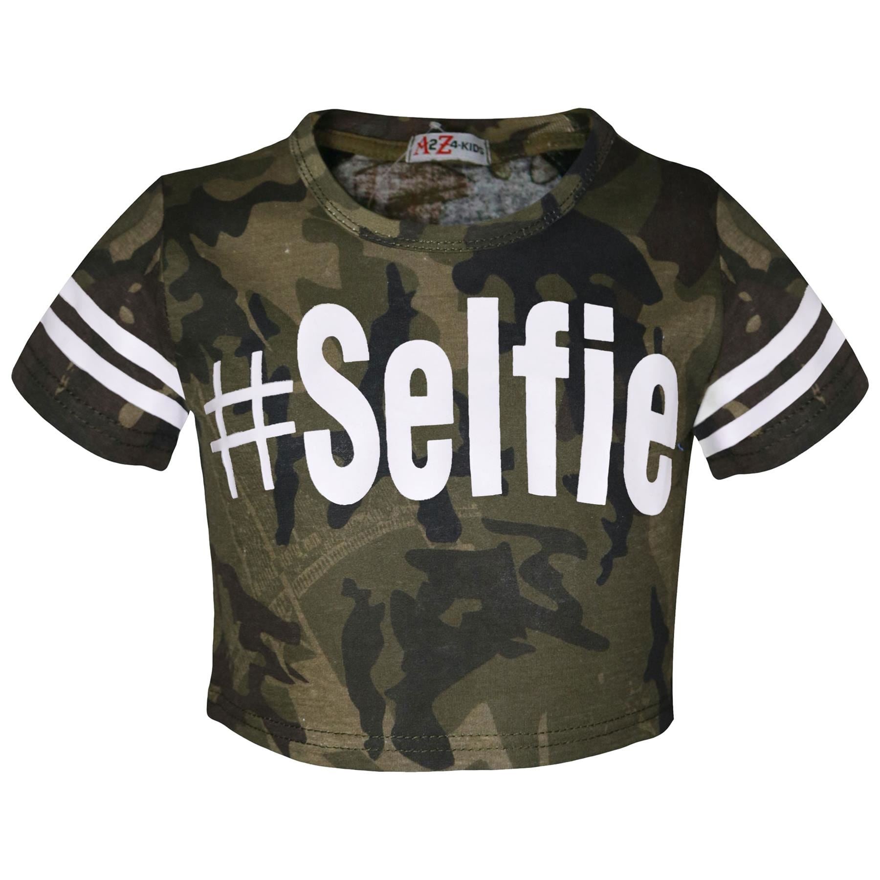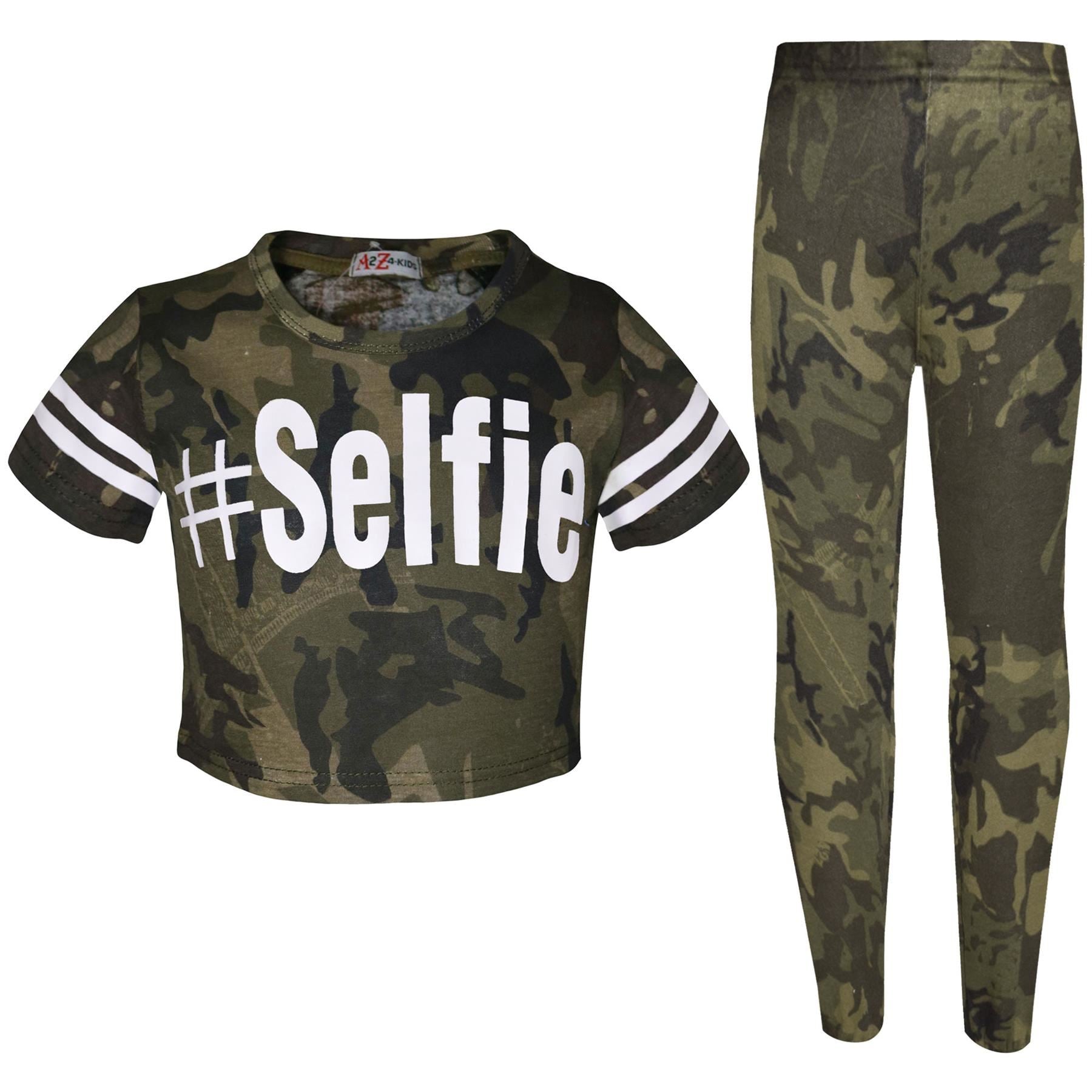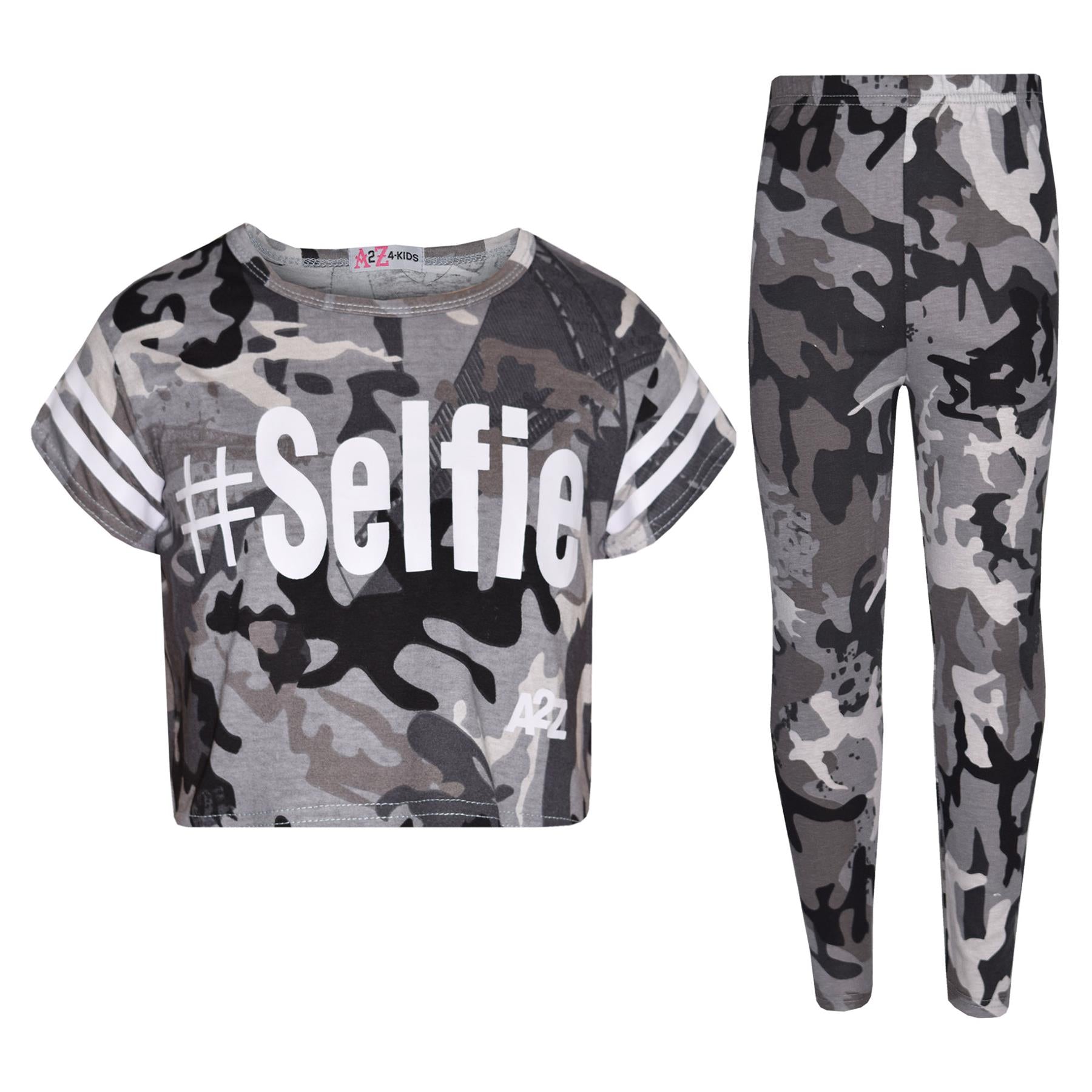 Girls Tops Kids Designer's #Selfie Camouflage Print Crop Top Legging Set 5-13 Yr