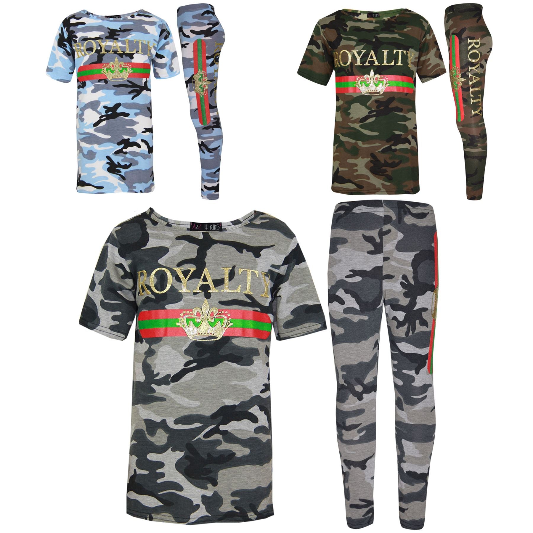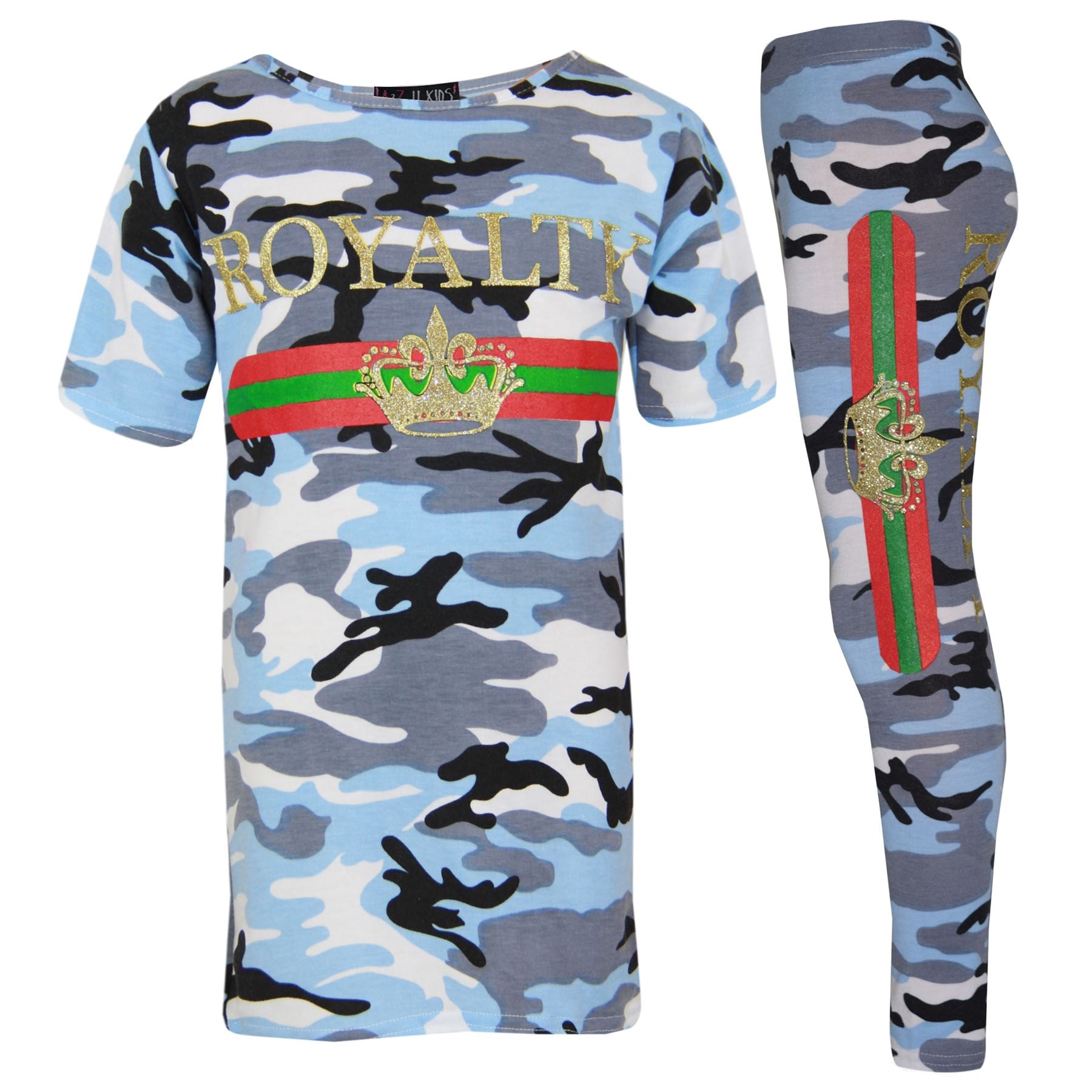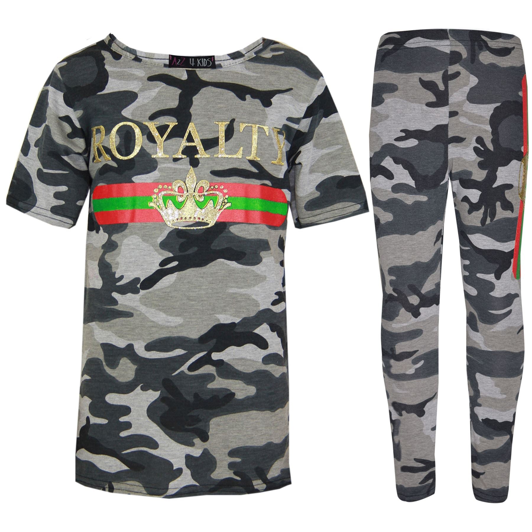 Girls Tops Kids Royalty Camouflage T Shirt Top & Legging Loungewear Set 7-13 Yr