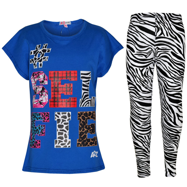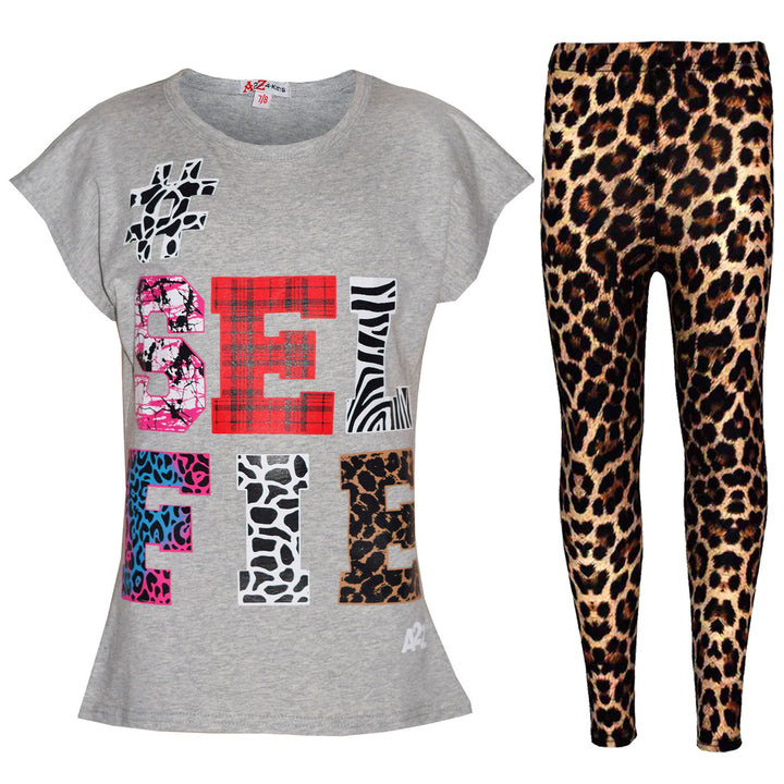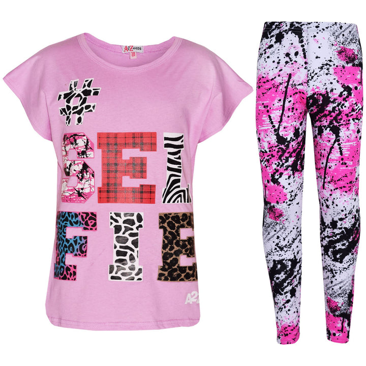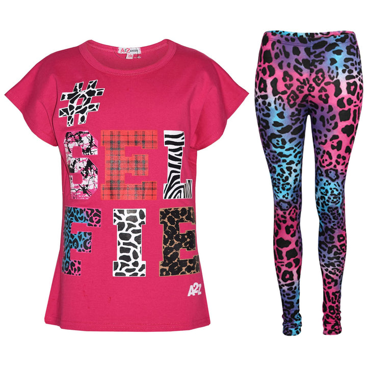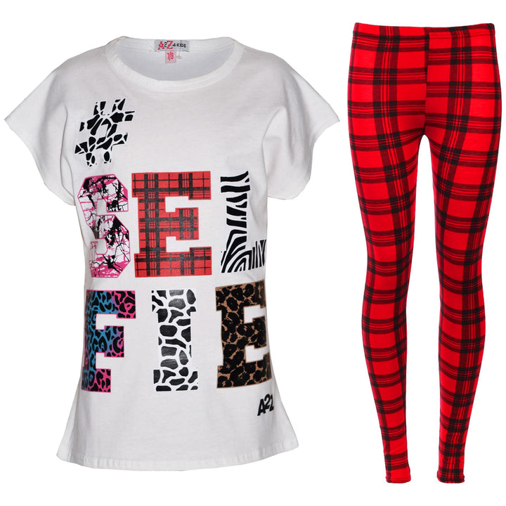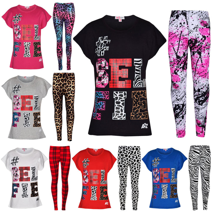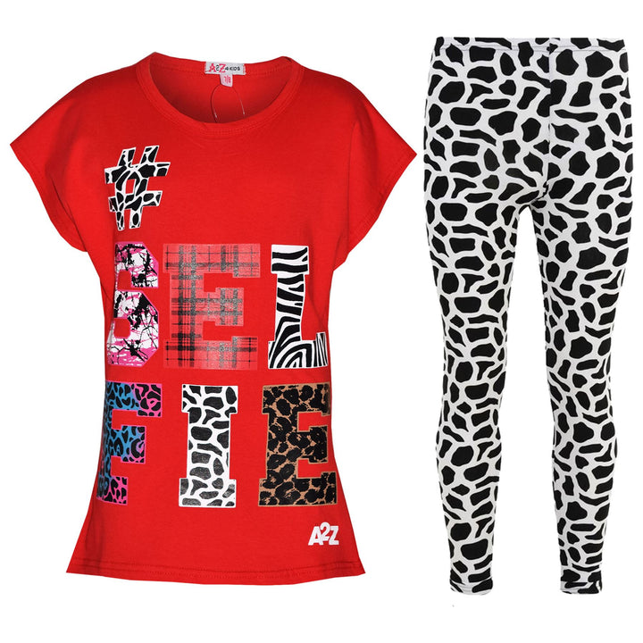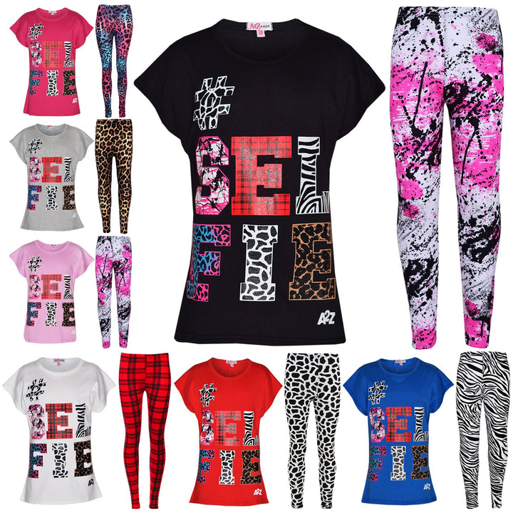 Girls Tops Kids Selfie Print Trendy T Shirt Top & Fashion Legging Set 7-13 Years