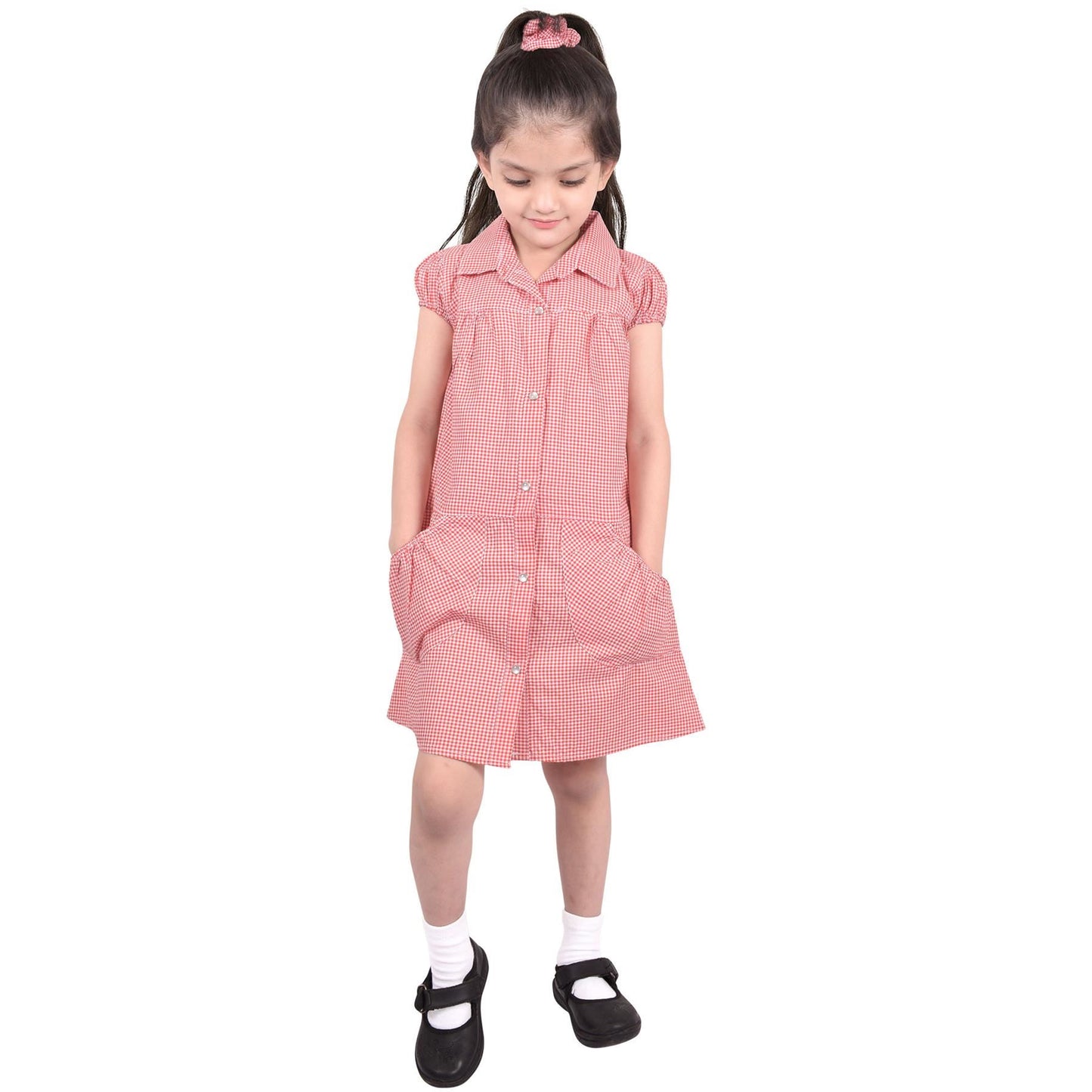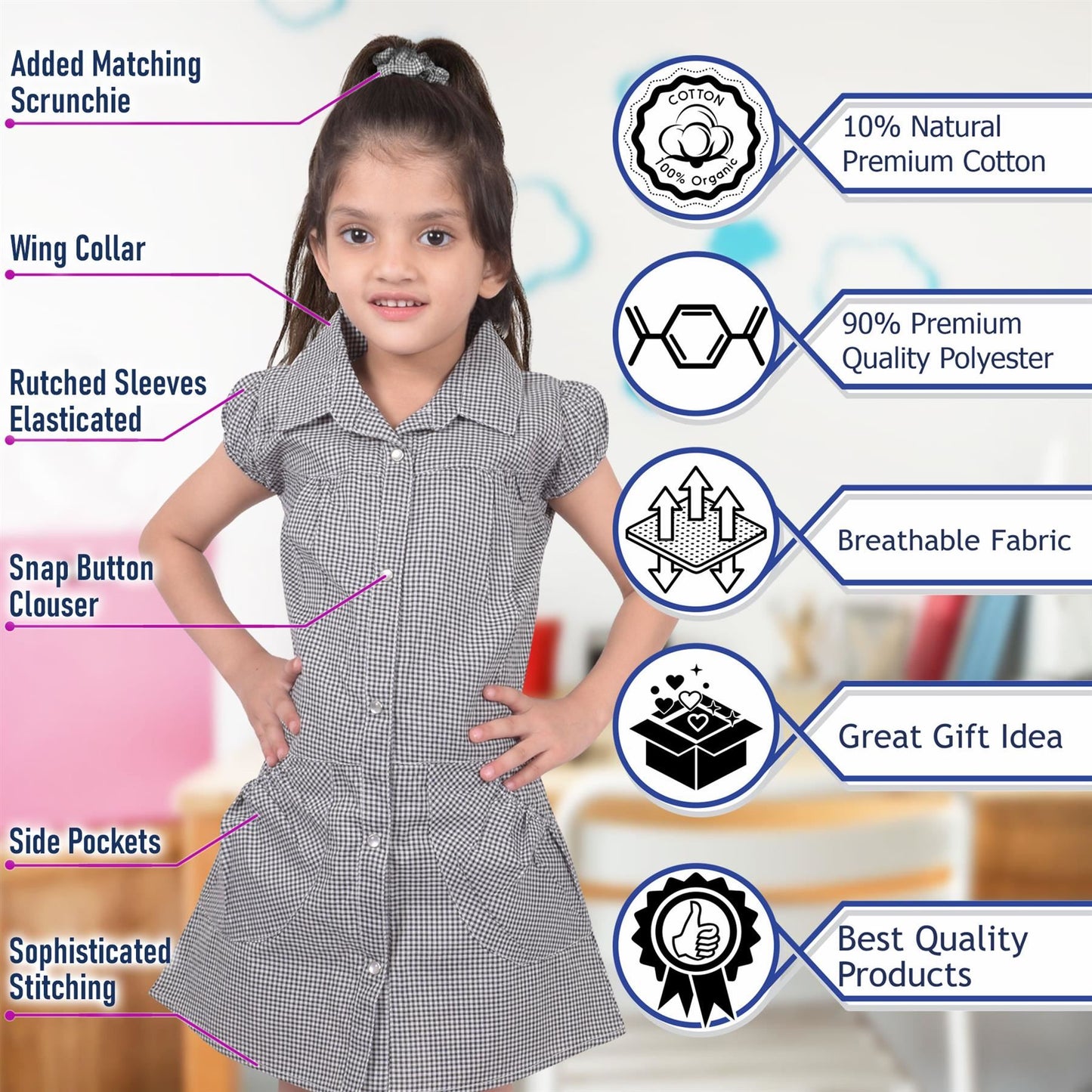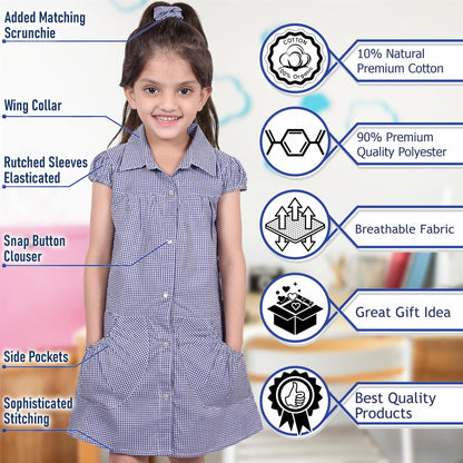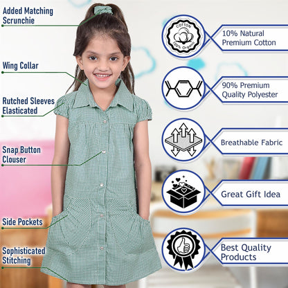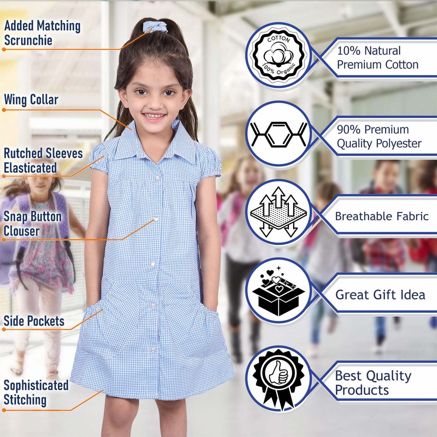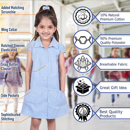 Girls Uniform School Dress Gingham Check Printed Dress With Matching Scrunchies