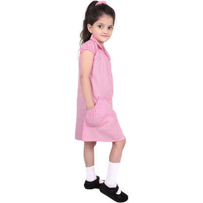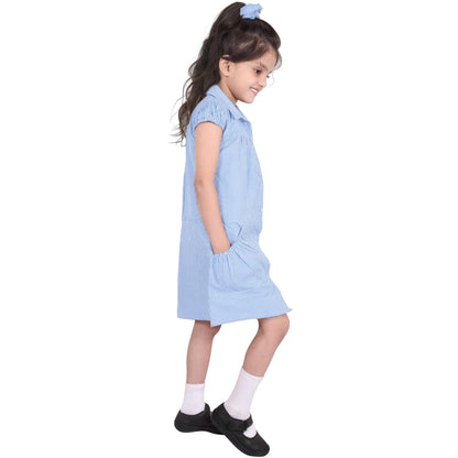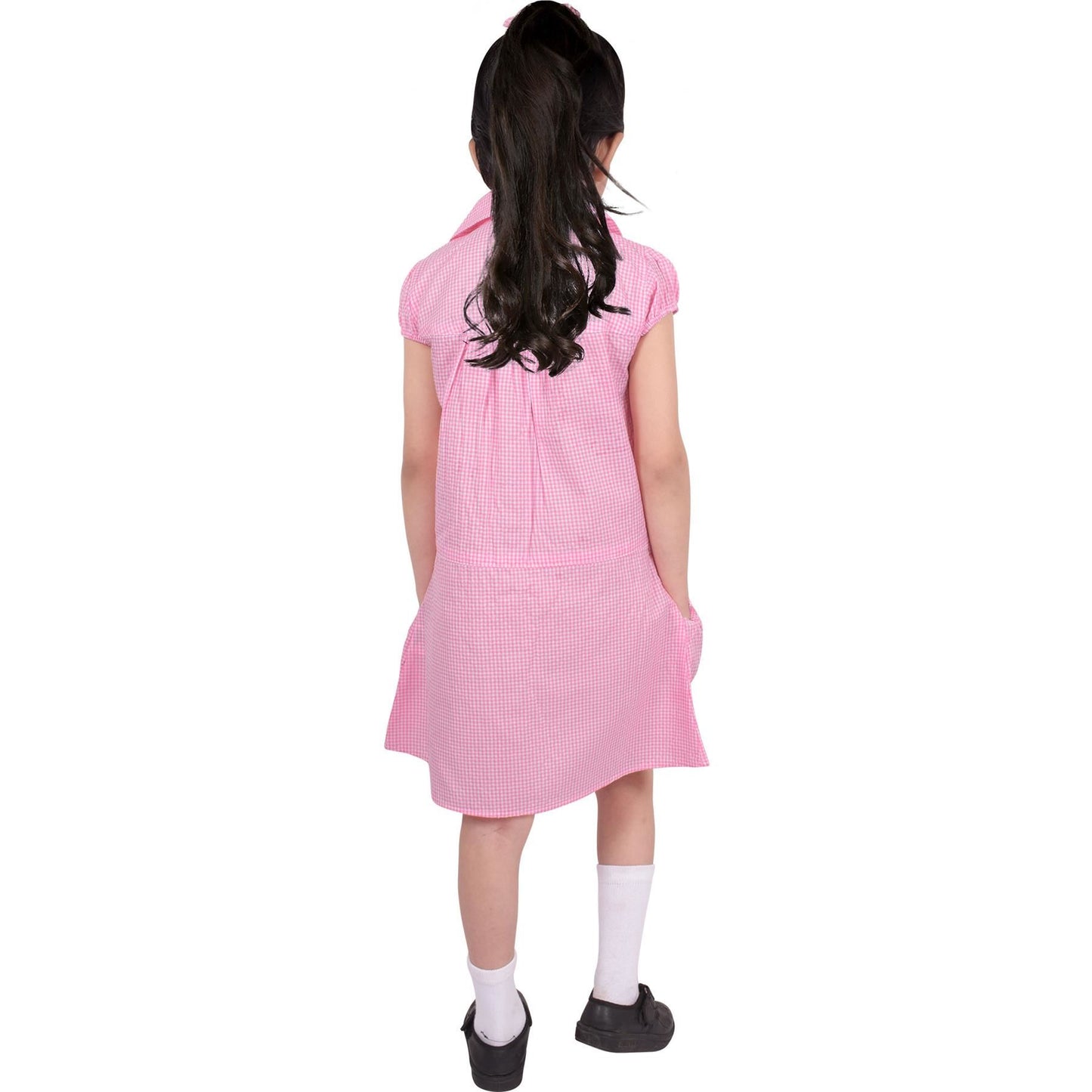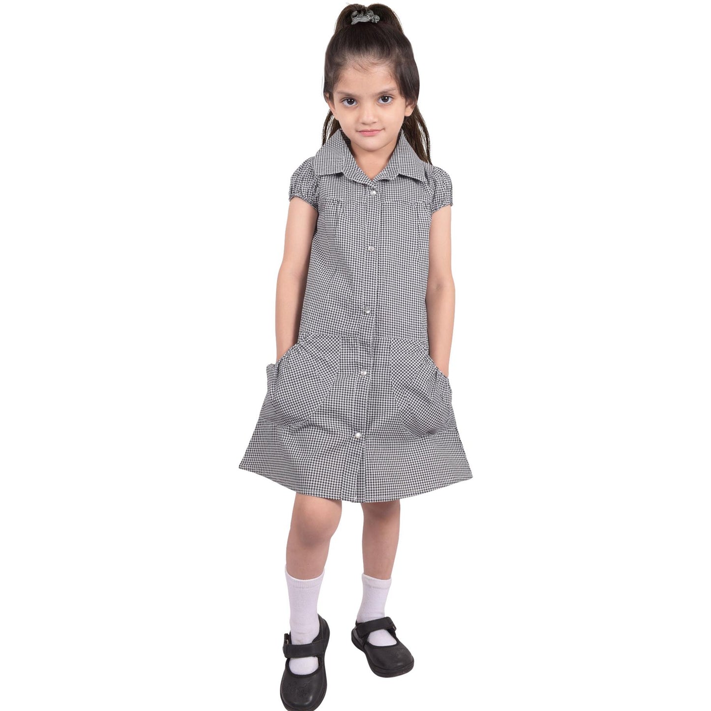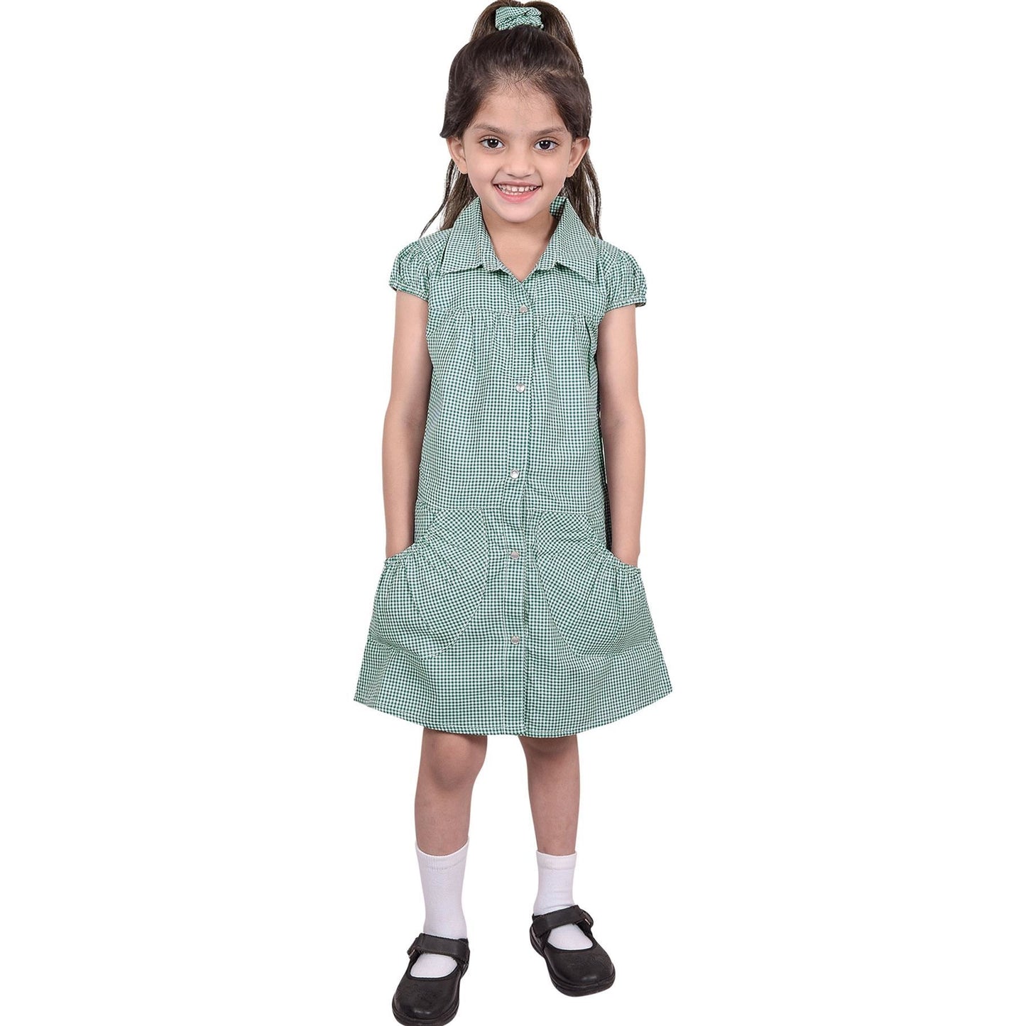 Girls Uniform School Dress Gingham Check Printed Dress With Matching Scrunchies