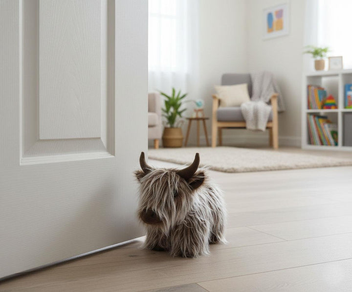 Bring warmth and personality to your home with this adorable Highland Cow door stopper. Featuring long shaggy faux fur, soft horns and realistic detailing, it adds a playful decorative touch to any room while keeping doors securely in place. A delightful animal-themed accessory for all interior styles. - HEAVY 1.5KG WEIGHT FOR SECURE HOLD: