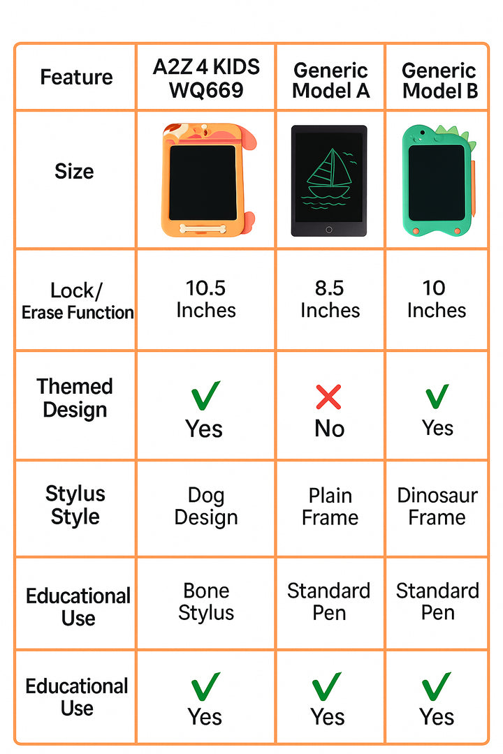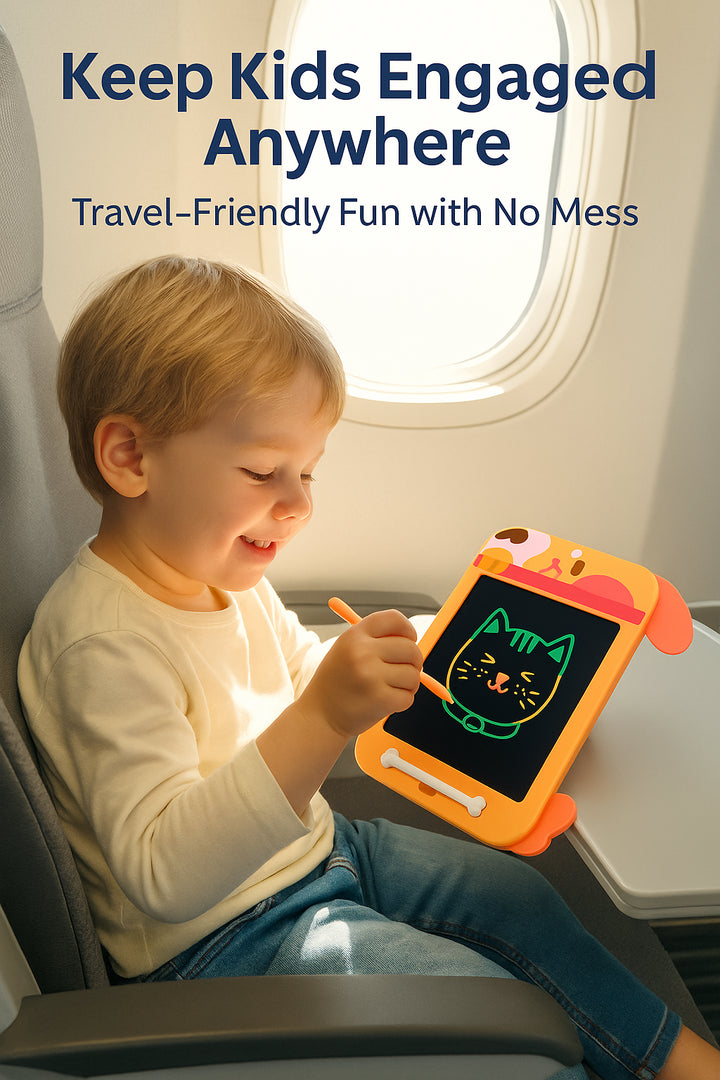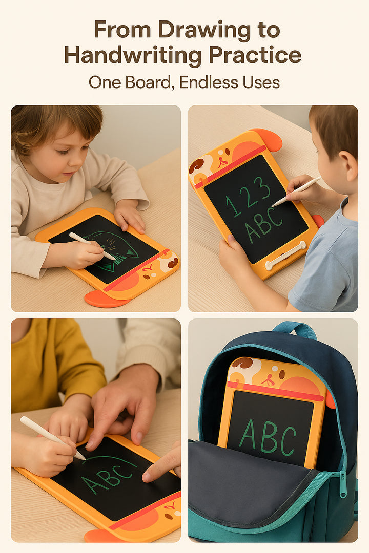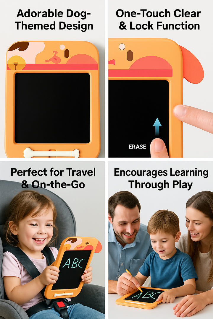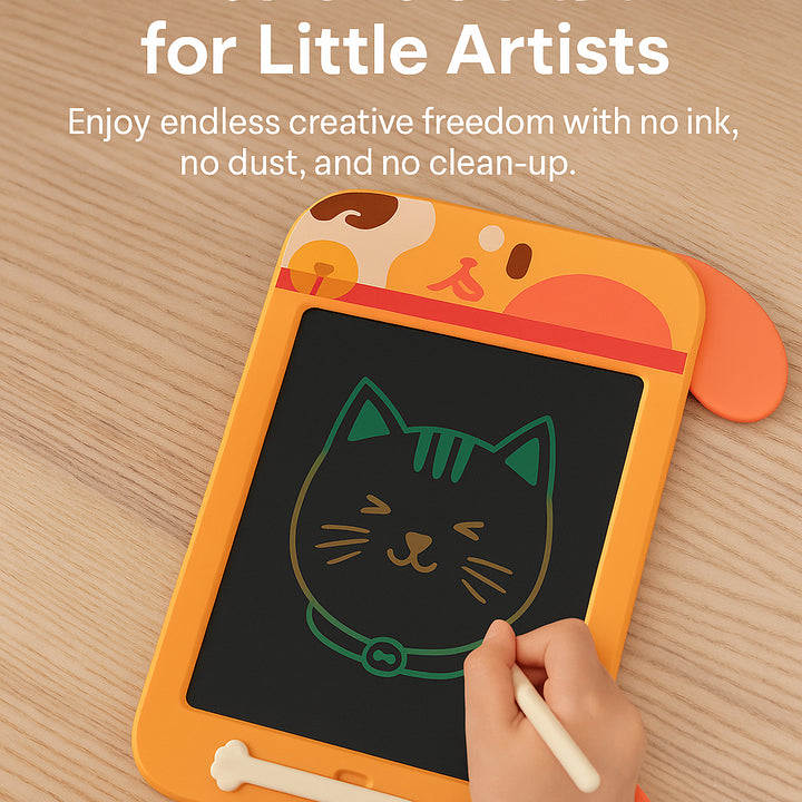 Delight young artists with this adorable dog-themed LCD writing tablet featuring floppy ear accents and a stylus shaped like a dog bone making creative play engaging and mess-free every time.